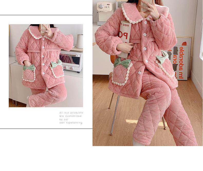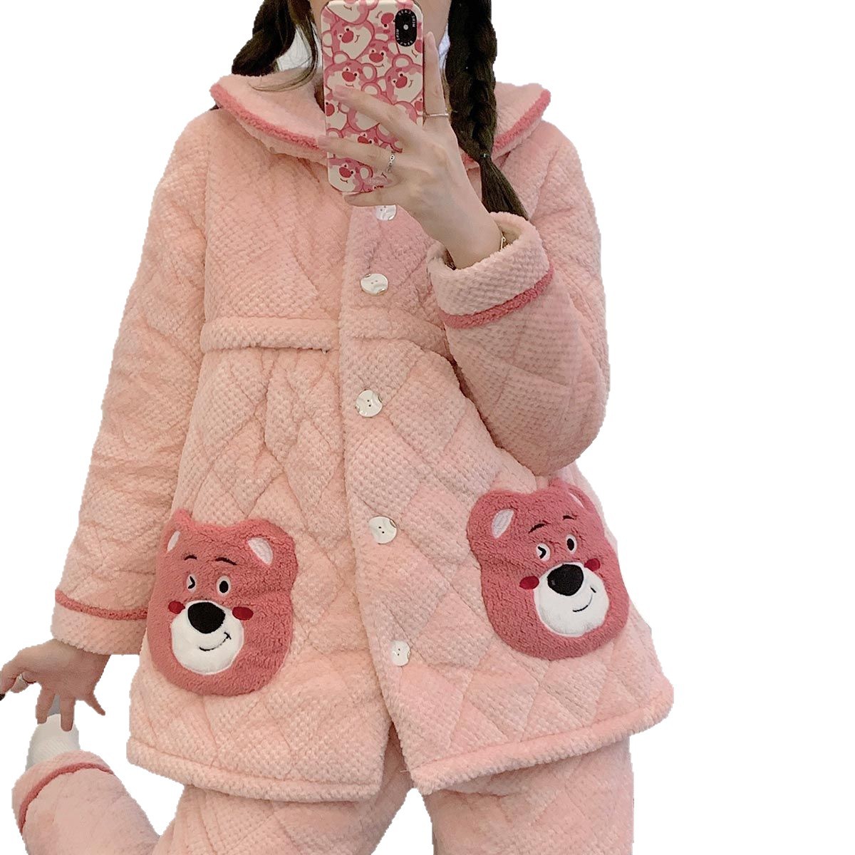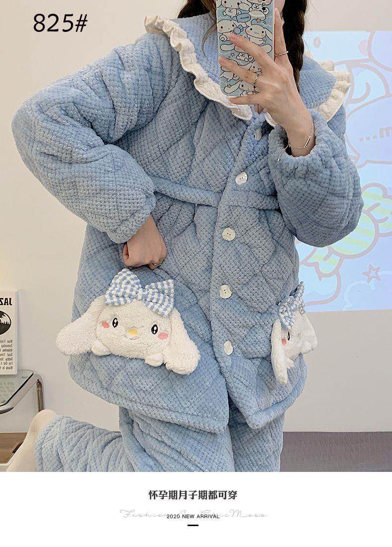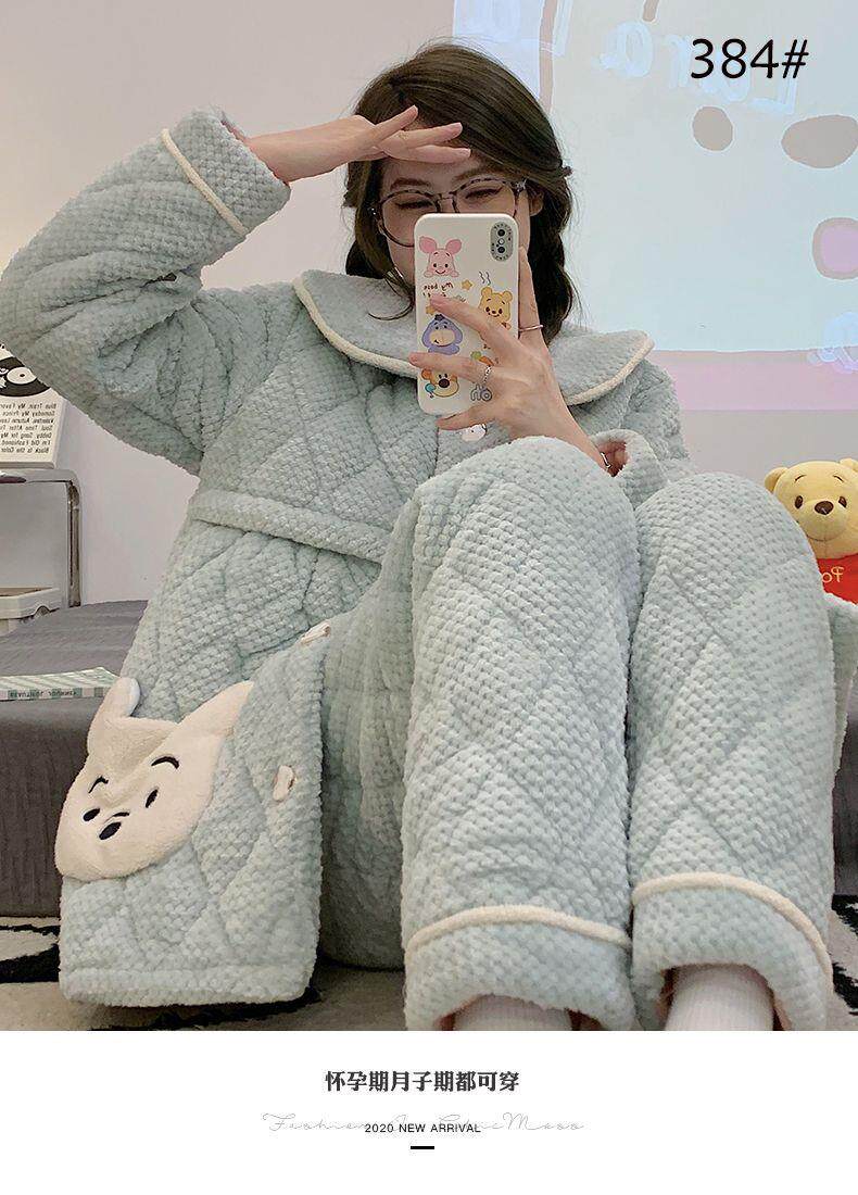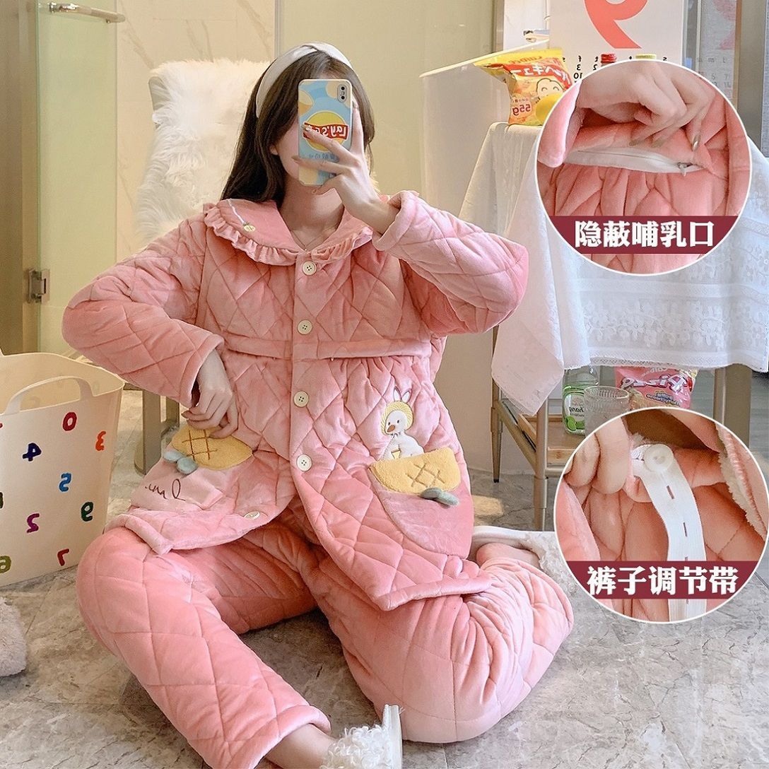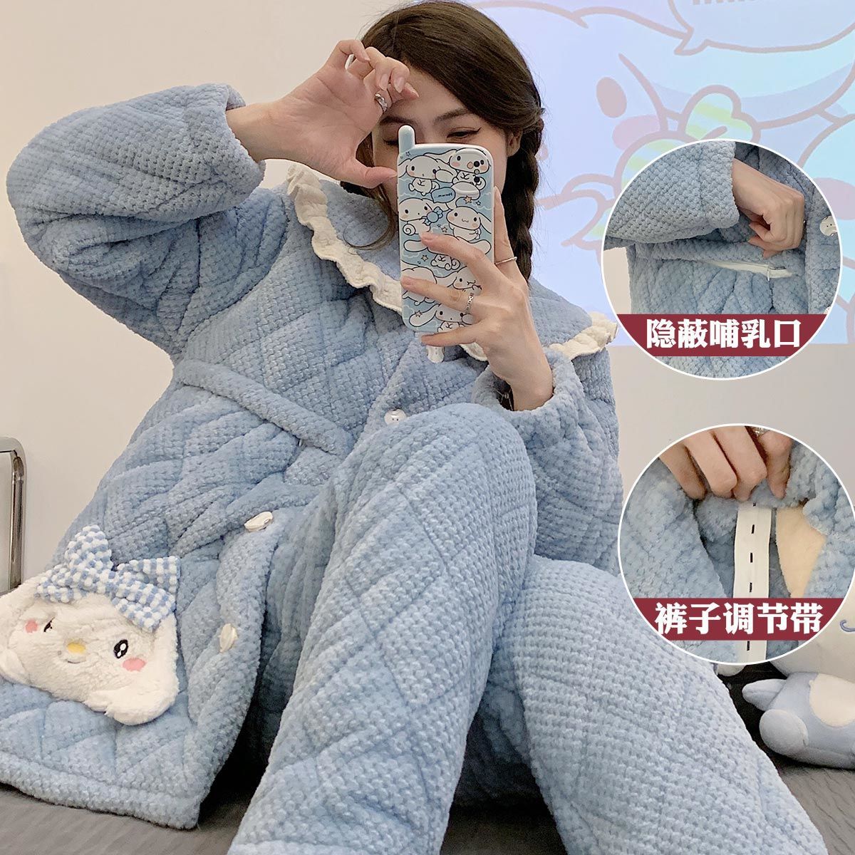 跨境孕妇睡衣秋冬季加厚加绒珊瑚绒月子服产后喂奶哺乳期衣服三层