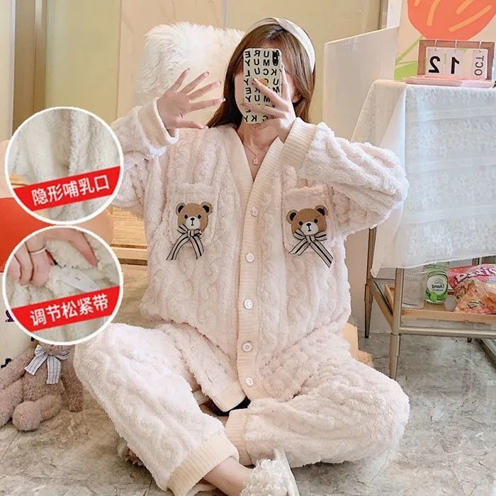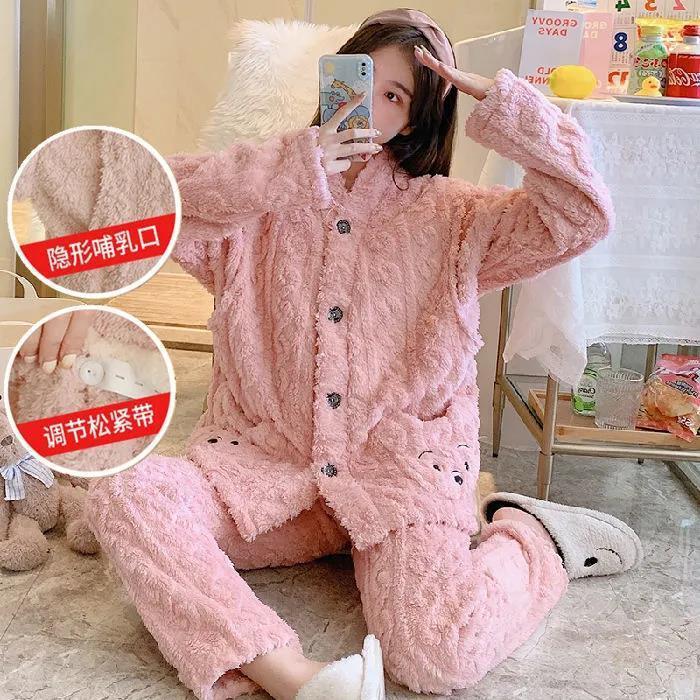 珊瑚绒月子服冬季产后12月份11哺乳孕妇睡衣秋冬款加厚加绒怀孕期