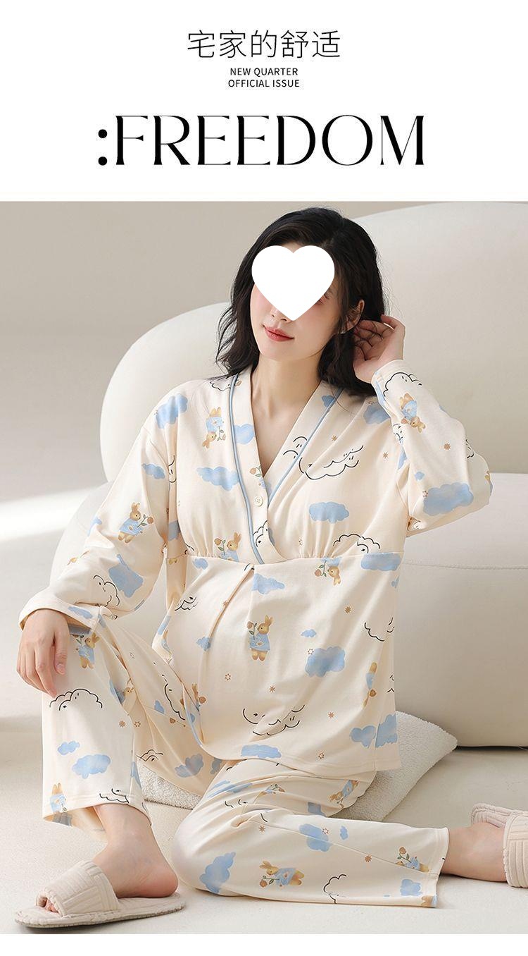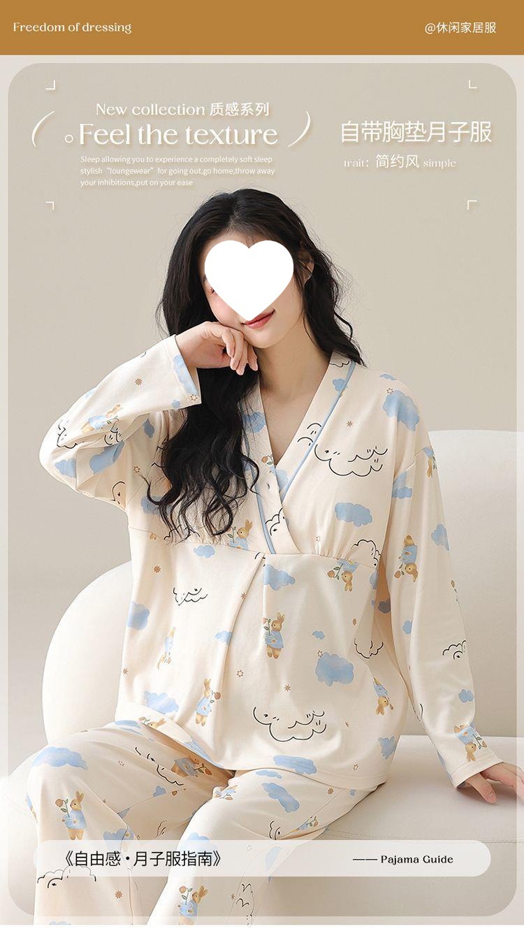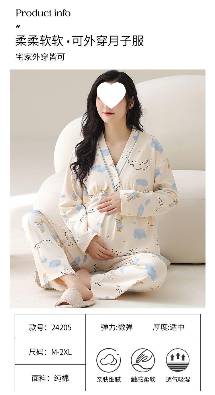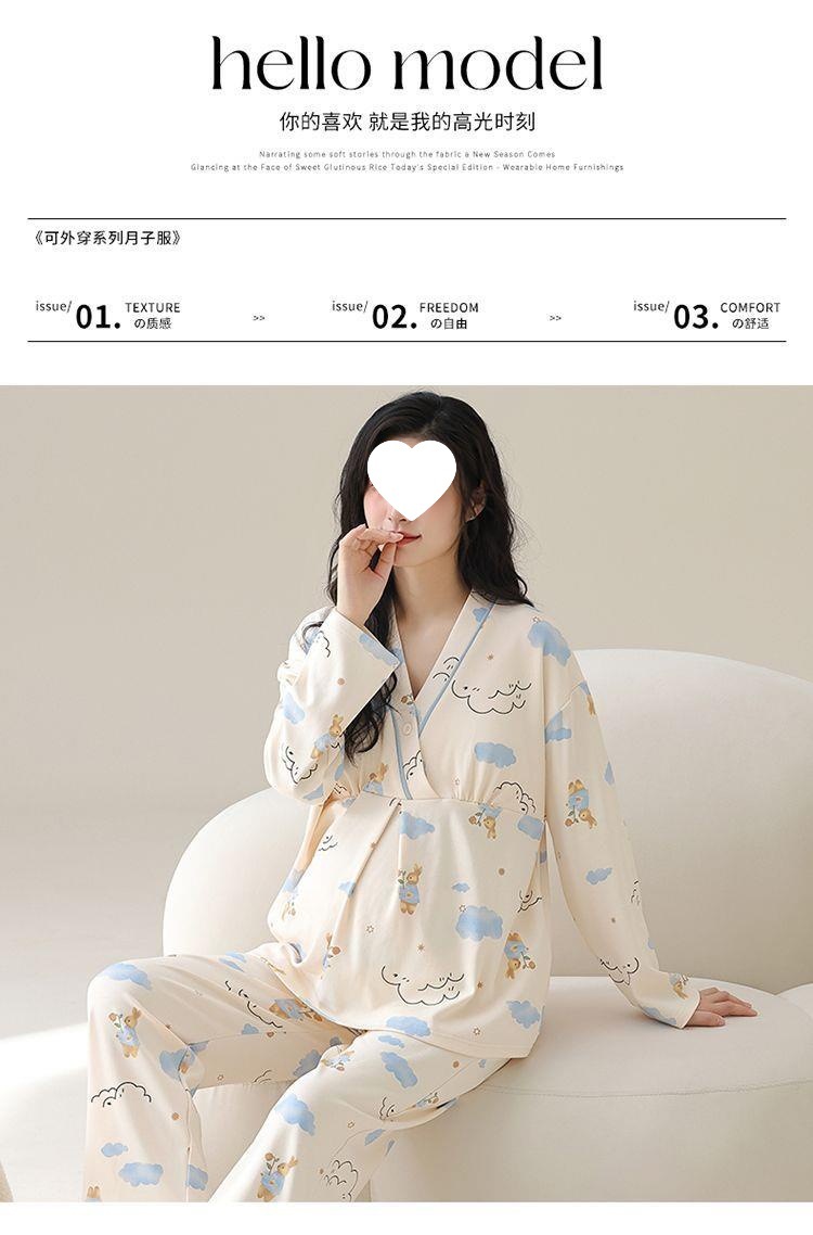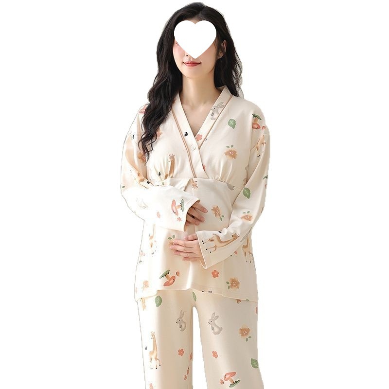 100棉质月子服睡衣女春秋带胸垫孕妇产后套装哺乳期坐月子家居服