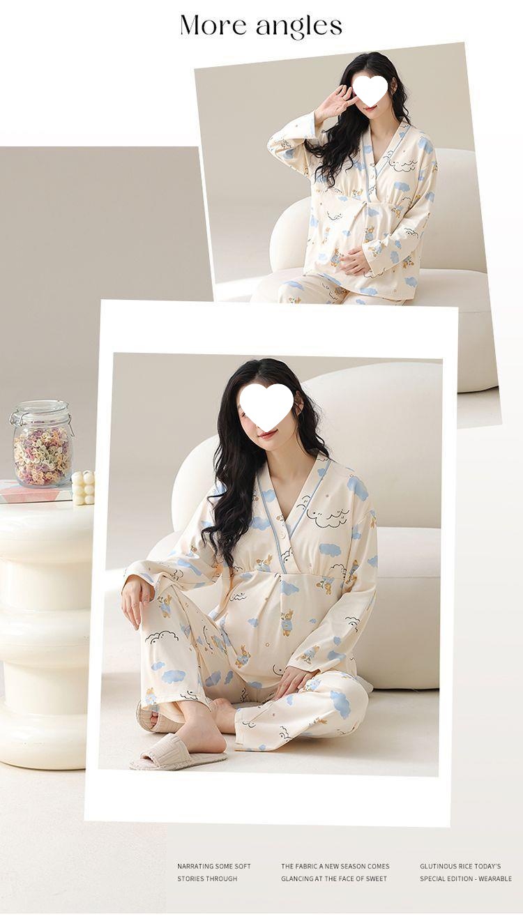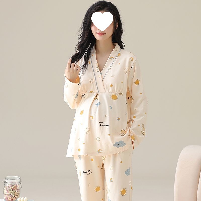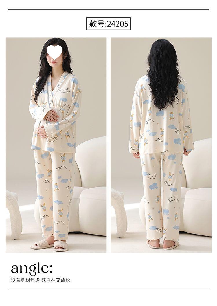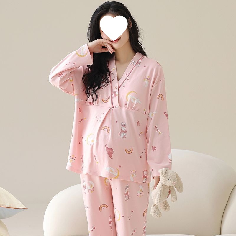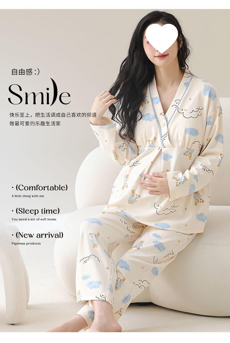 100棉质月子服睡衣女春秋带胸垫孕妇产后套装哺乳期坐月子家居服
