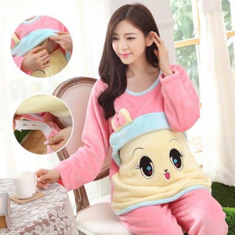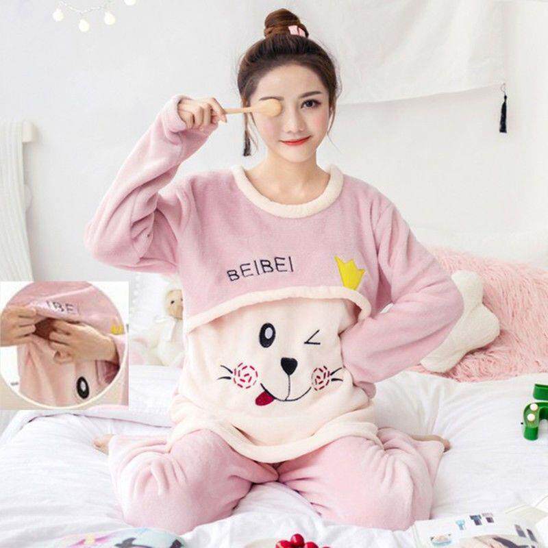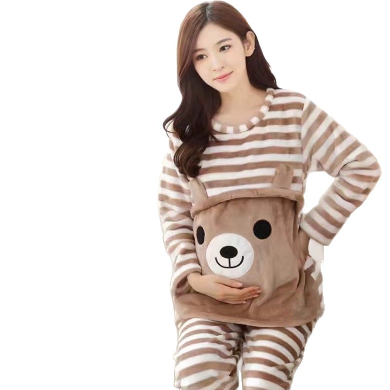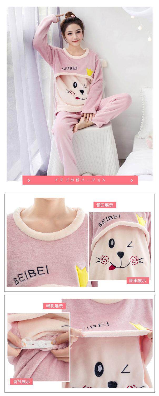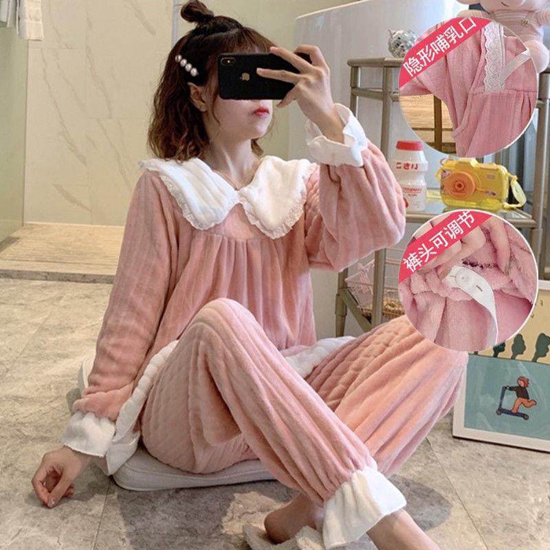 孕妇睡衣女秋冬季法兰绒加厚加绒产后月子服喂奶哺乳衣怀孕期套装