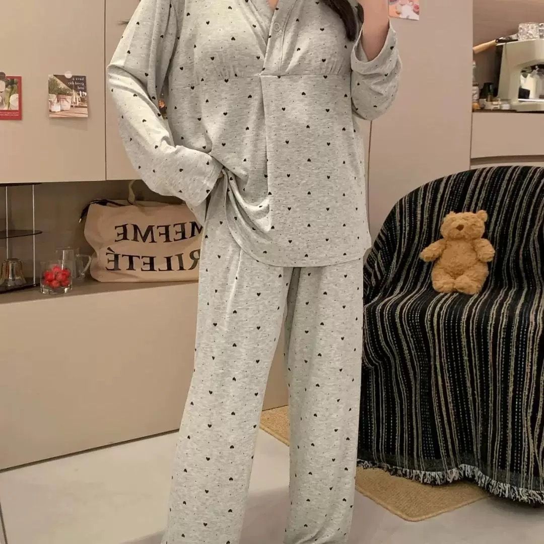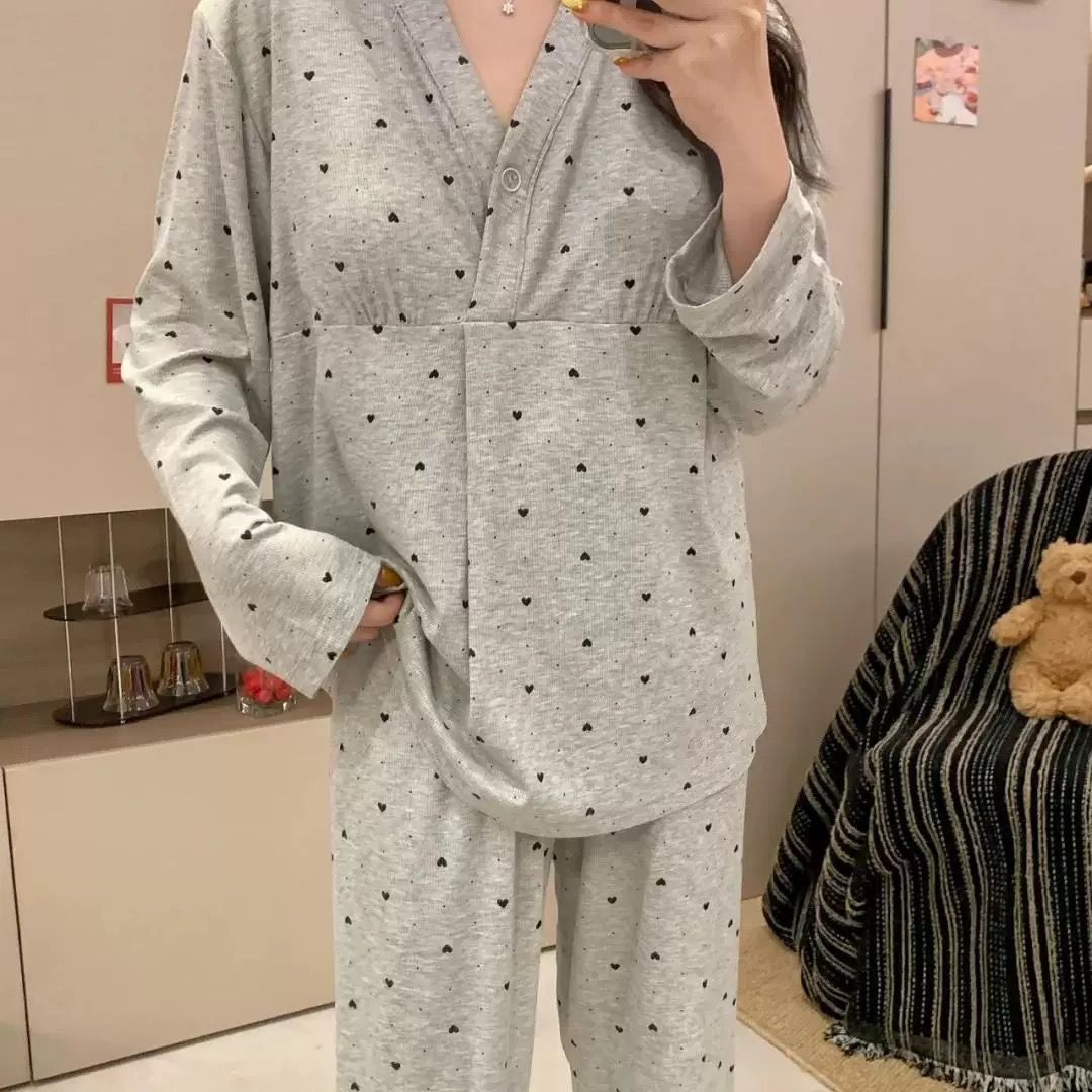 跨境2026新款月子服夏季薄款带胸垫防凸点长袖长裤产前产后哺乳家