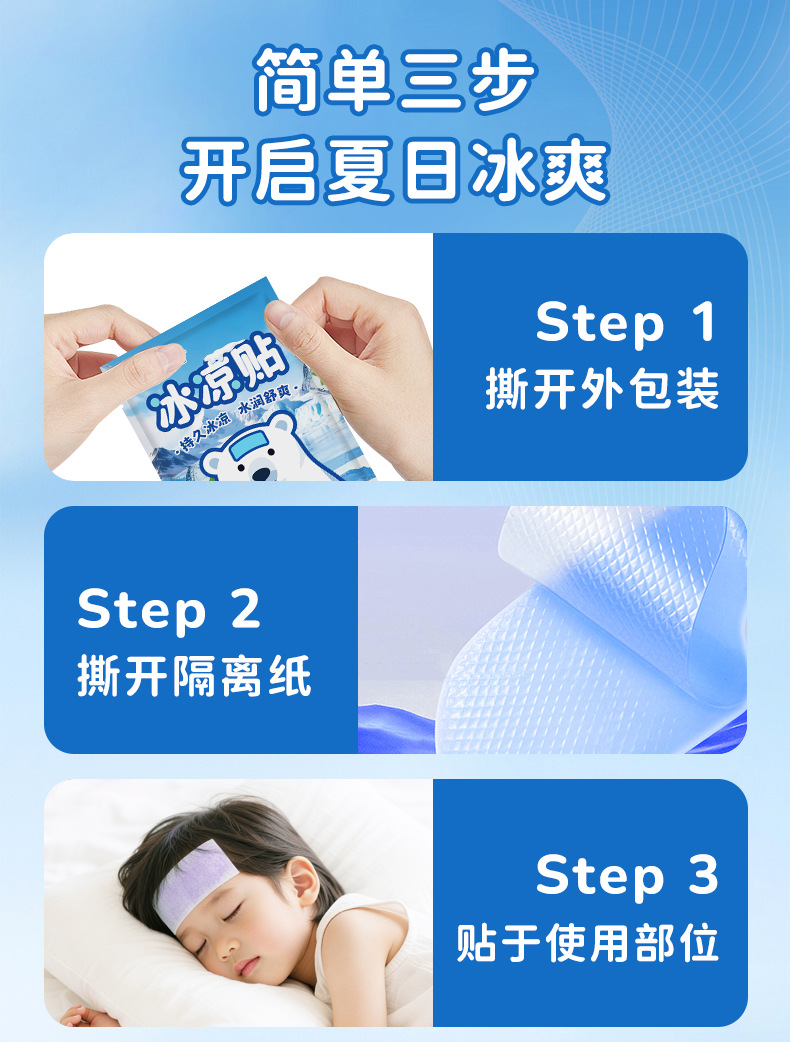 跨境定制冰凉贴物理降温降热冰贴防中暑提神学生散热贴成人手机贴