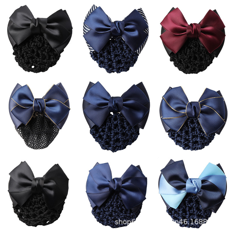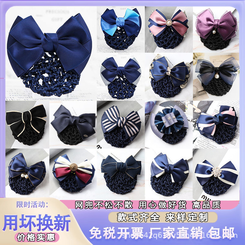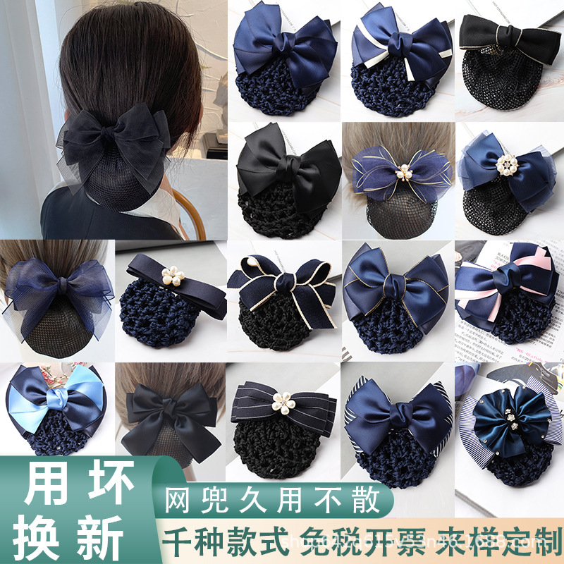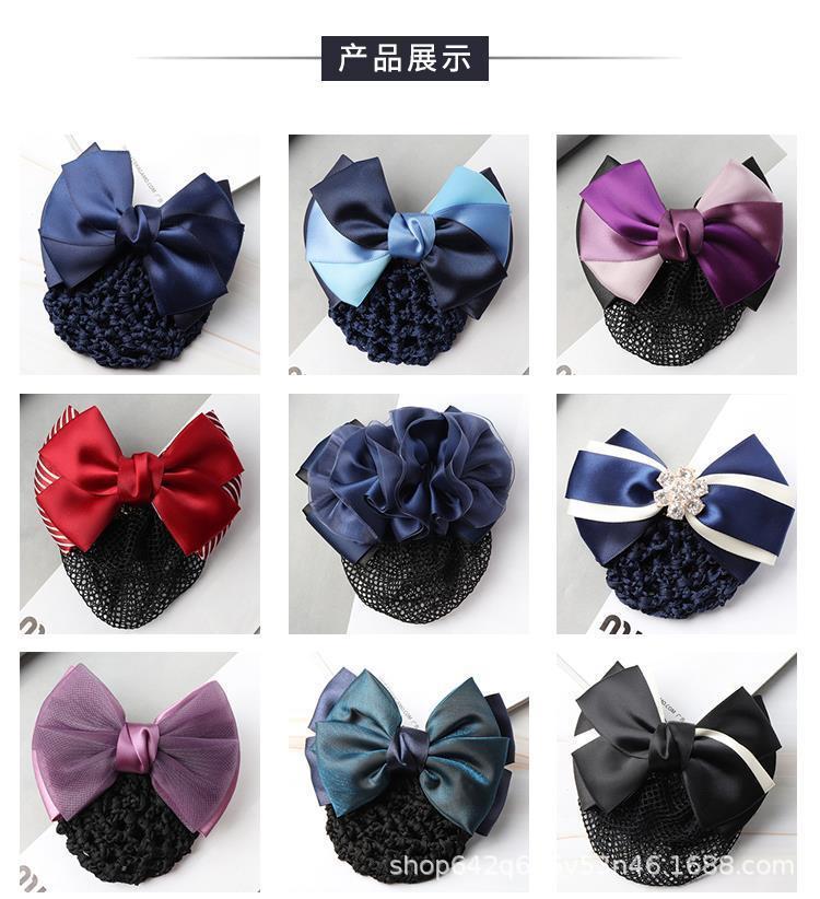 头花女职业护士空姐银行上班盘发饰品大人气质发网韩国蝴蝶结网兜