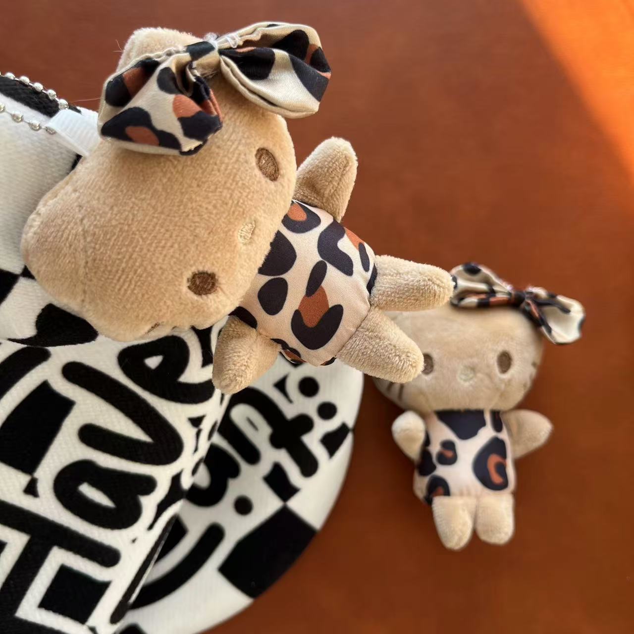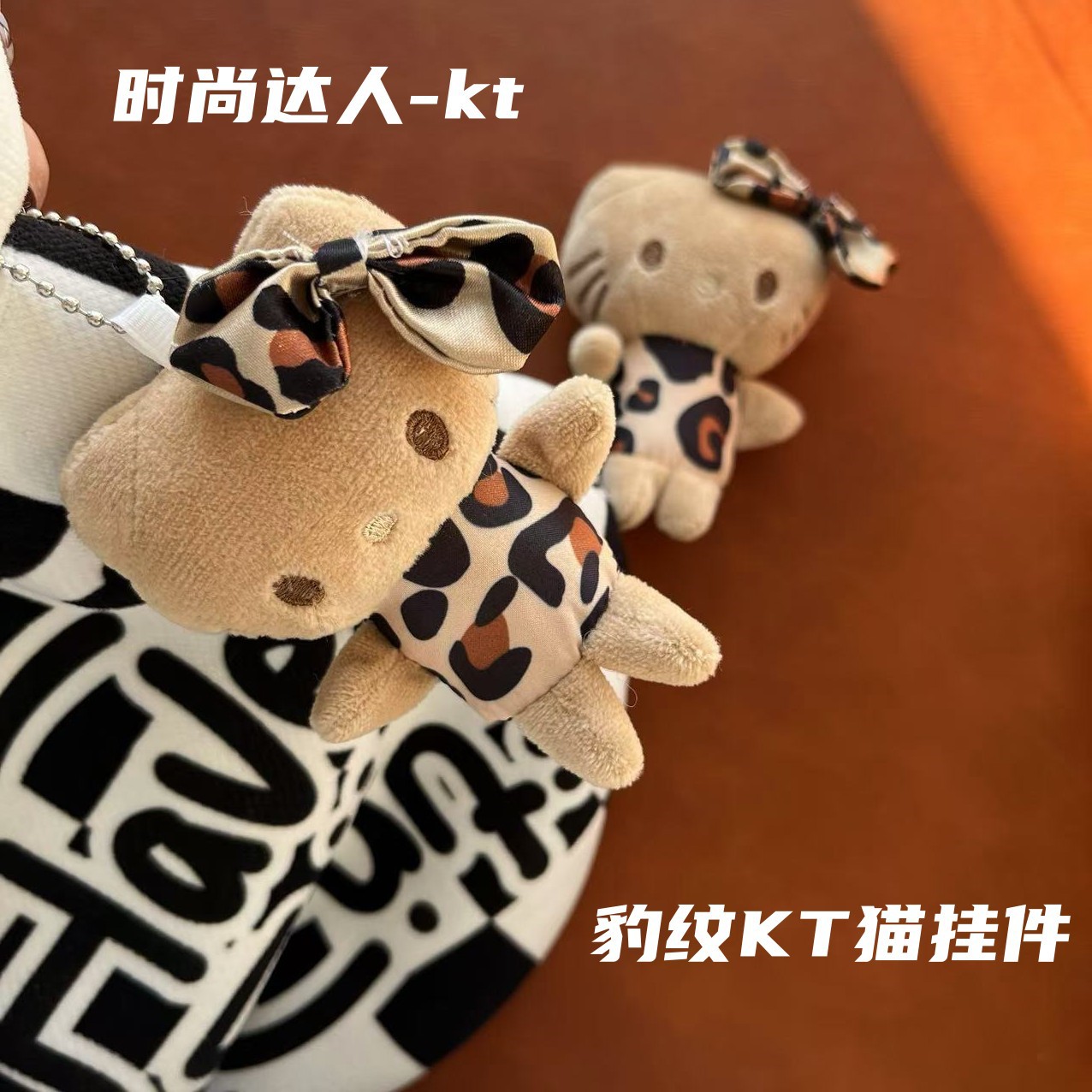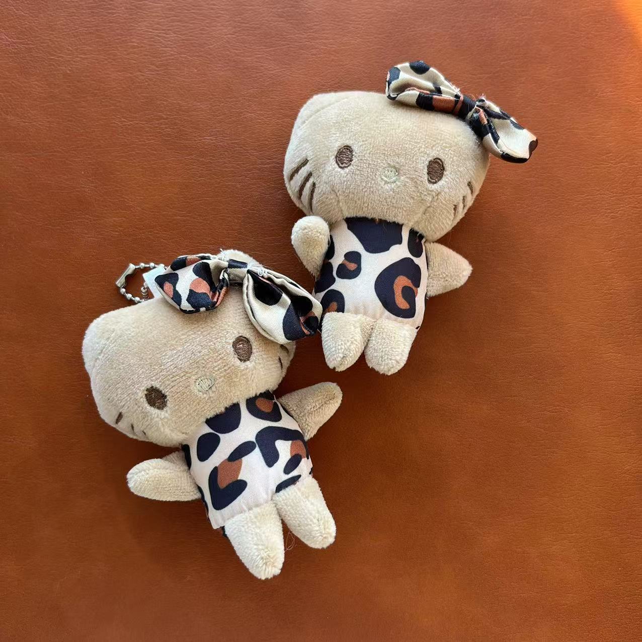 网红钥匙扣可爱萌豹纹KT猫挂件毛绒玩具公仔小猫咪包包挂饰布娃娃