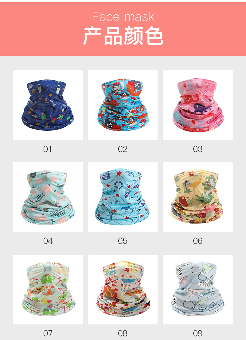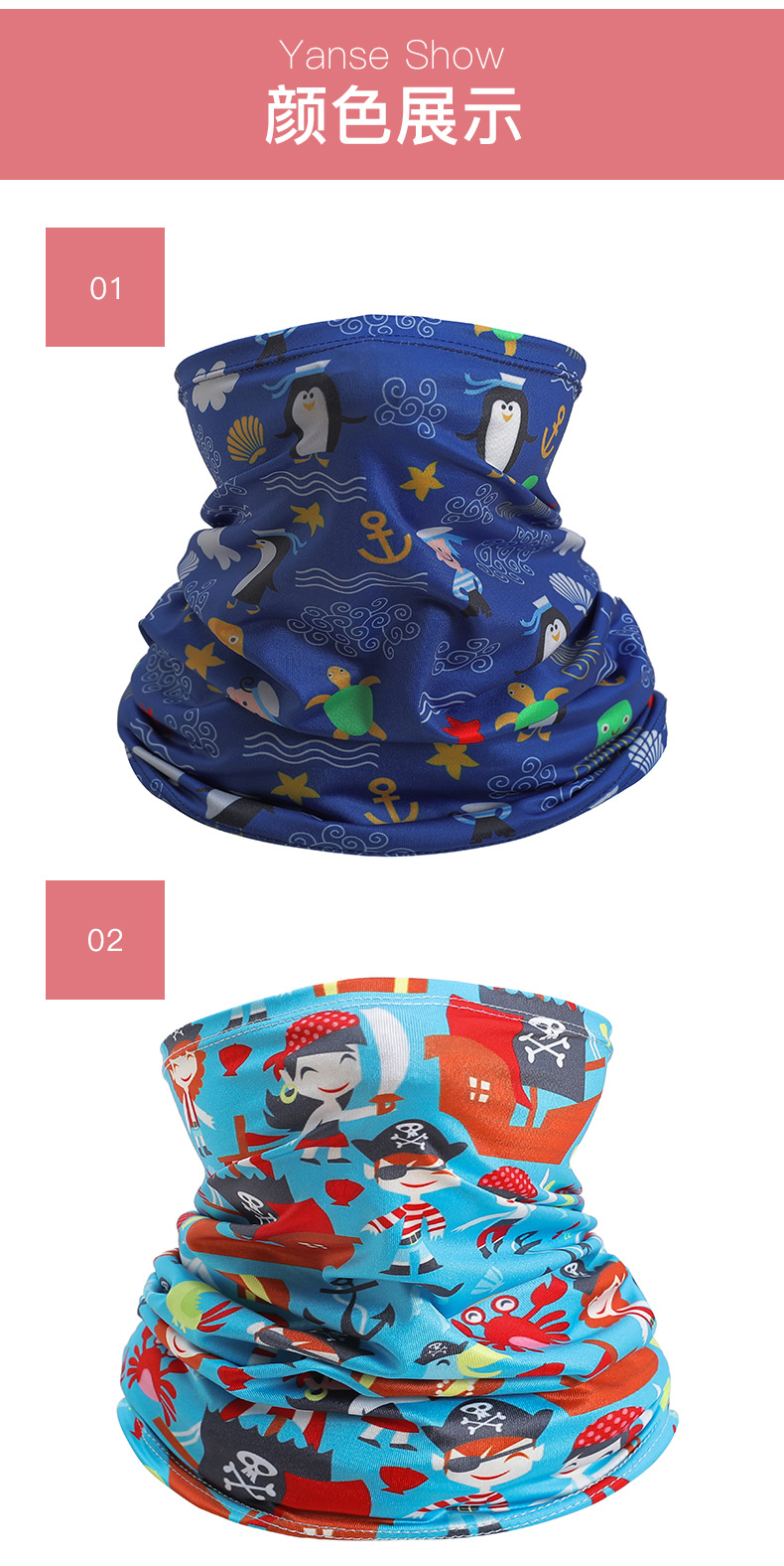 夏冰丝儿童围脖户外运动数码印花卡通魔术头巾多功能骑行防晒面罩