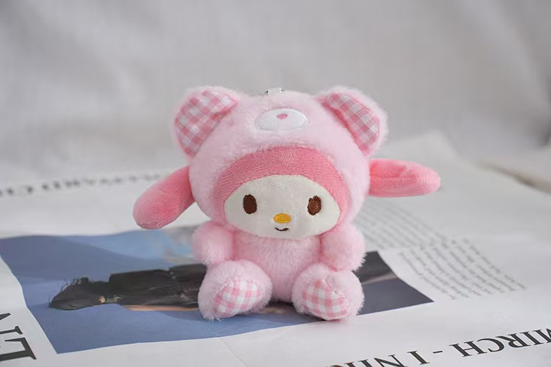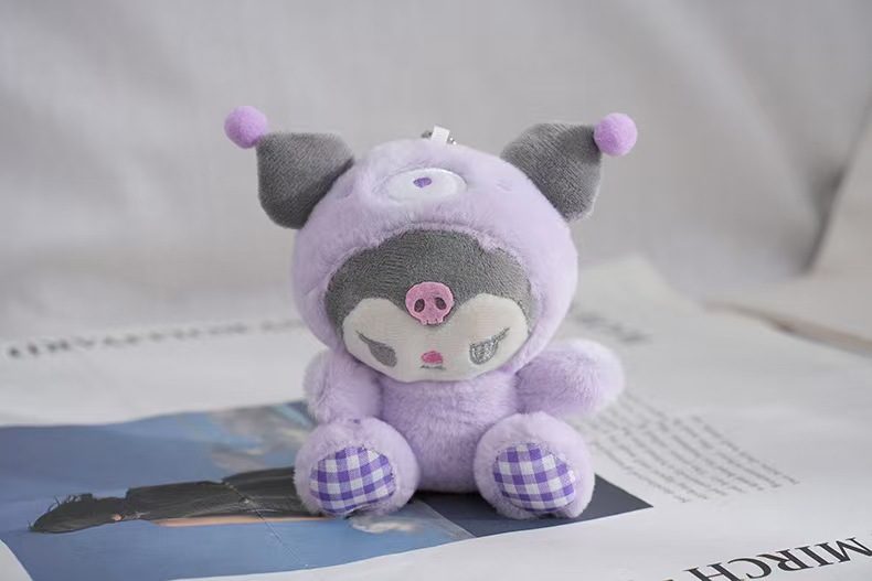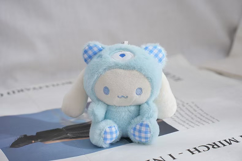 三丽鸥家族创意方格毛绒钥匙扣布丁狗库洛米玩偶摆件玉桂狗挂件