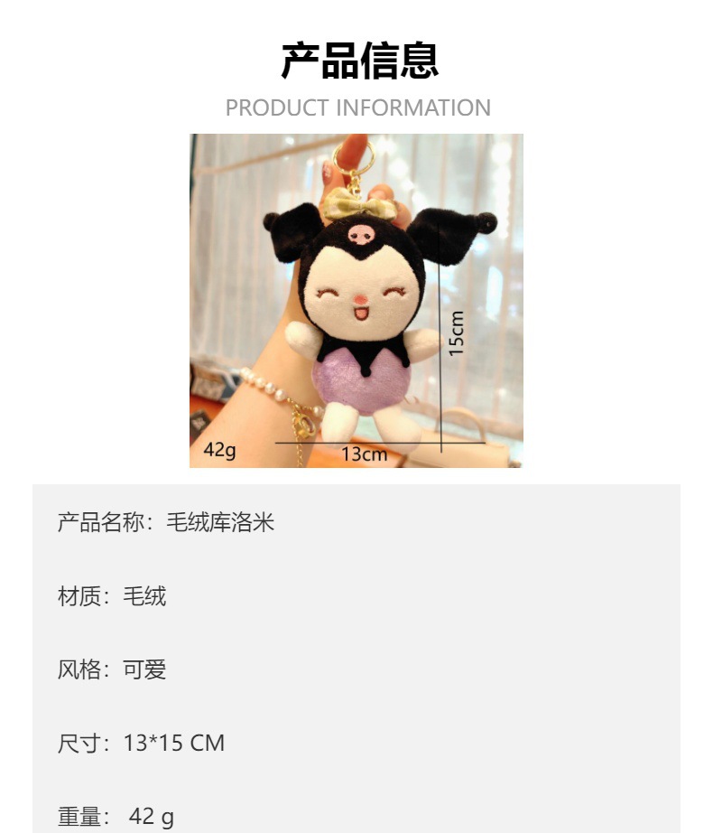 创意可爱毛绒三丽鸥库洛米抓机玩偶钥匙扣毛绒玩具公仔包包小挂件