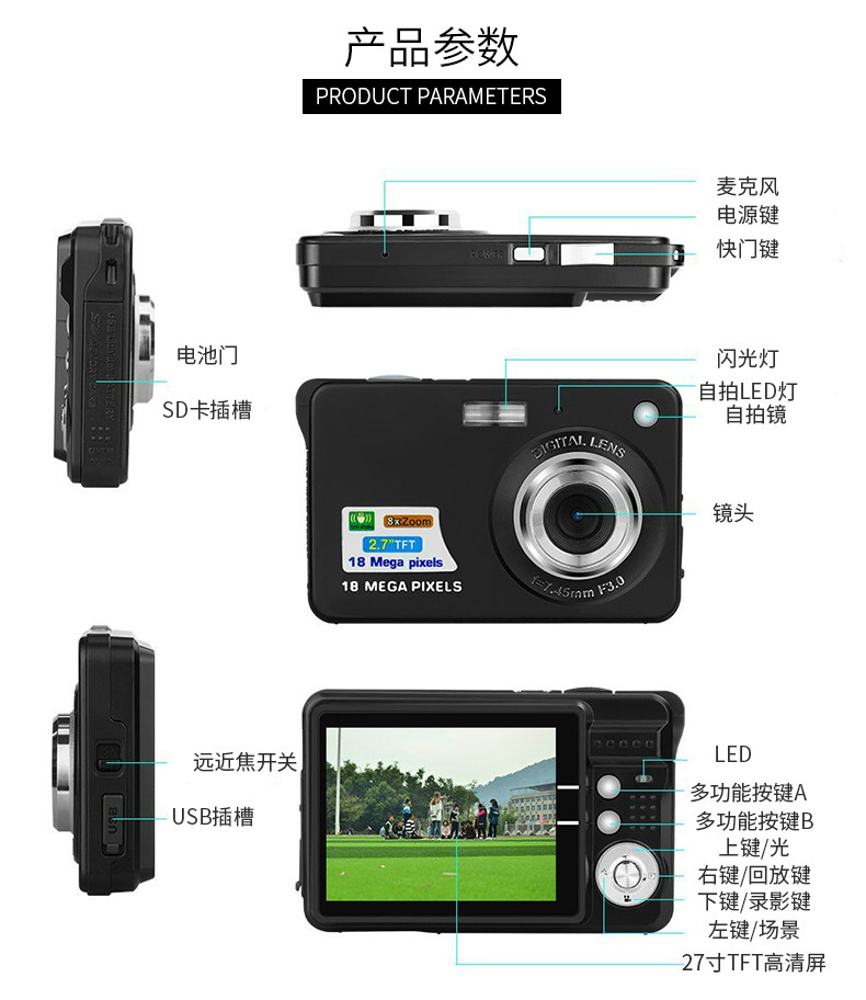 4800万像素高清ccd数码相机 网红学生照相摄像机 卡片机自拍录像