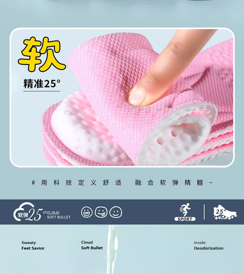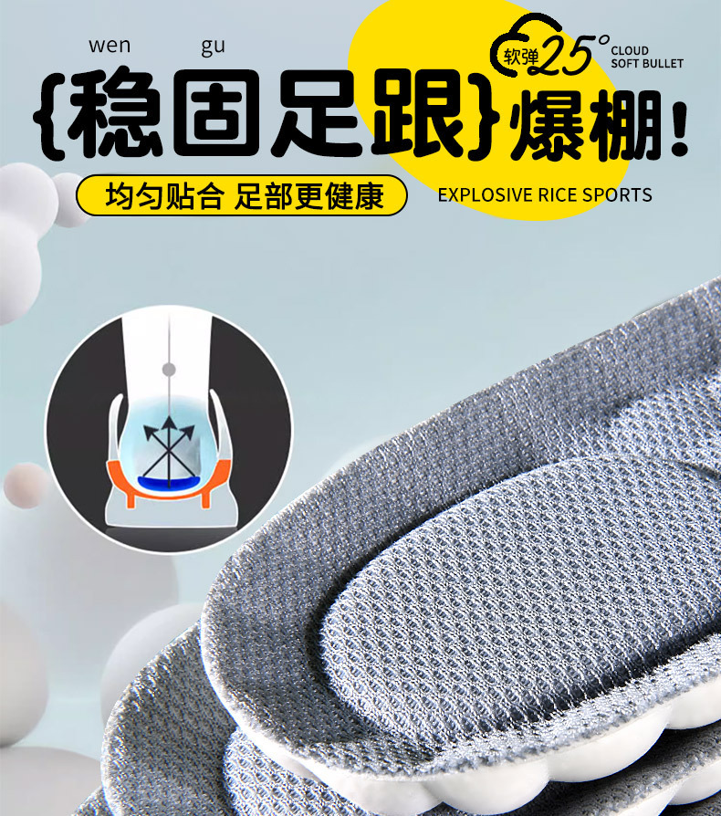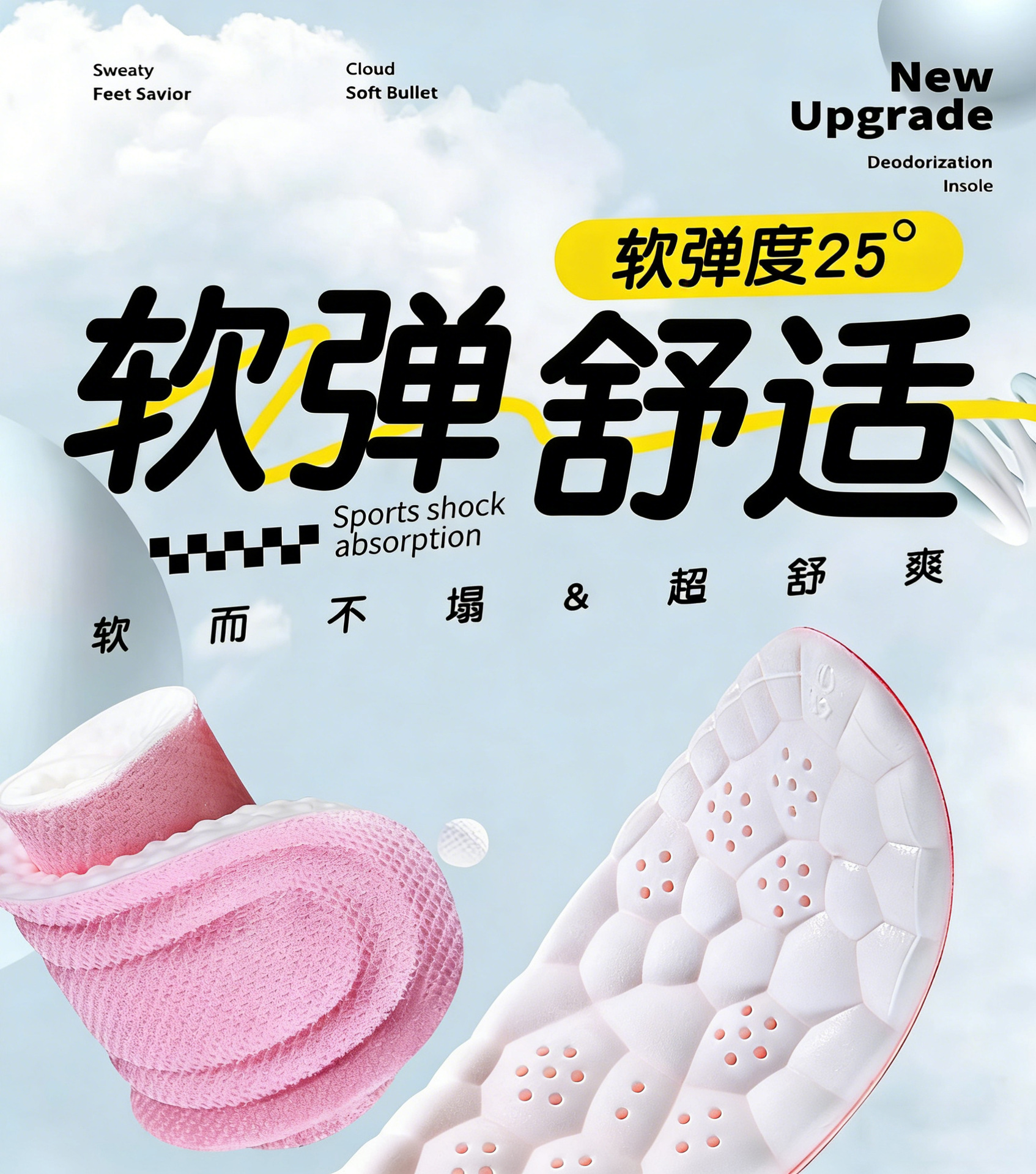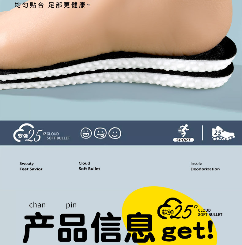 鞋垫软踩屎感运动鞋垫高弹防臭鞋垫男吸汗防臭鞋垫女款内增高鞋垫