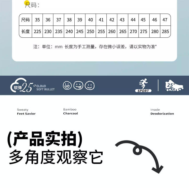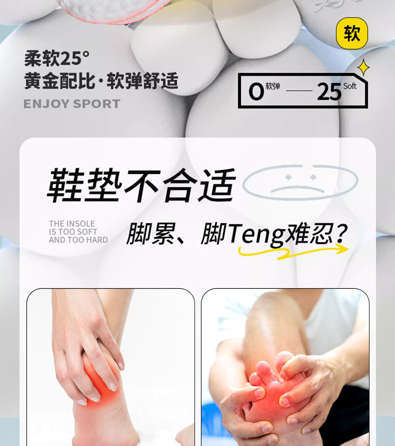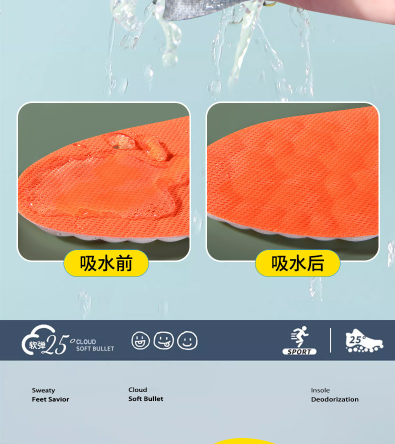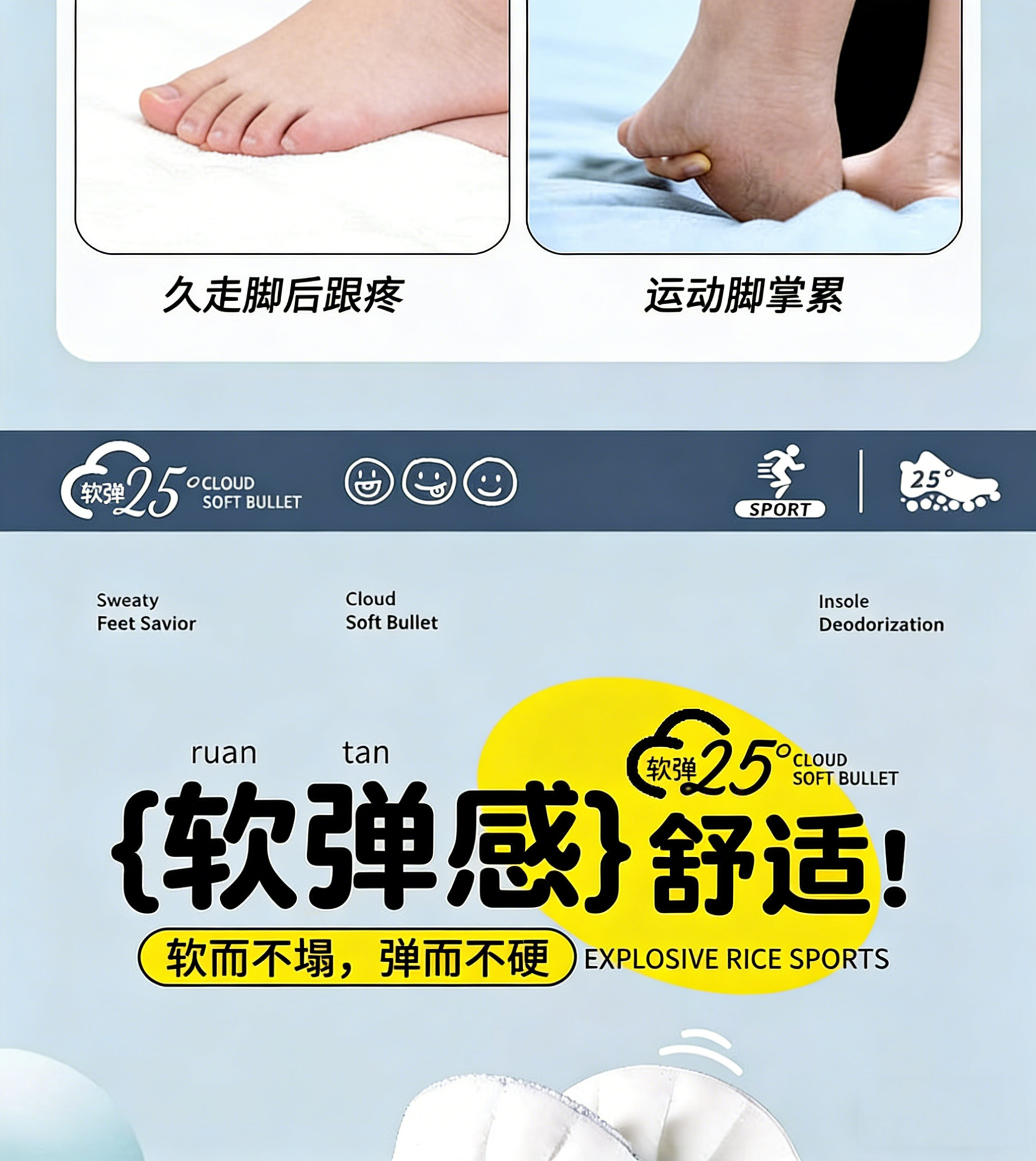 鞋垫软踩屎感运动鞋垫高弹防臭鞋垫男吸汗防臭鞋垫女款内增高鞋垫
