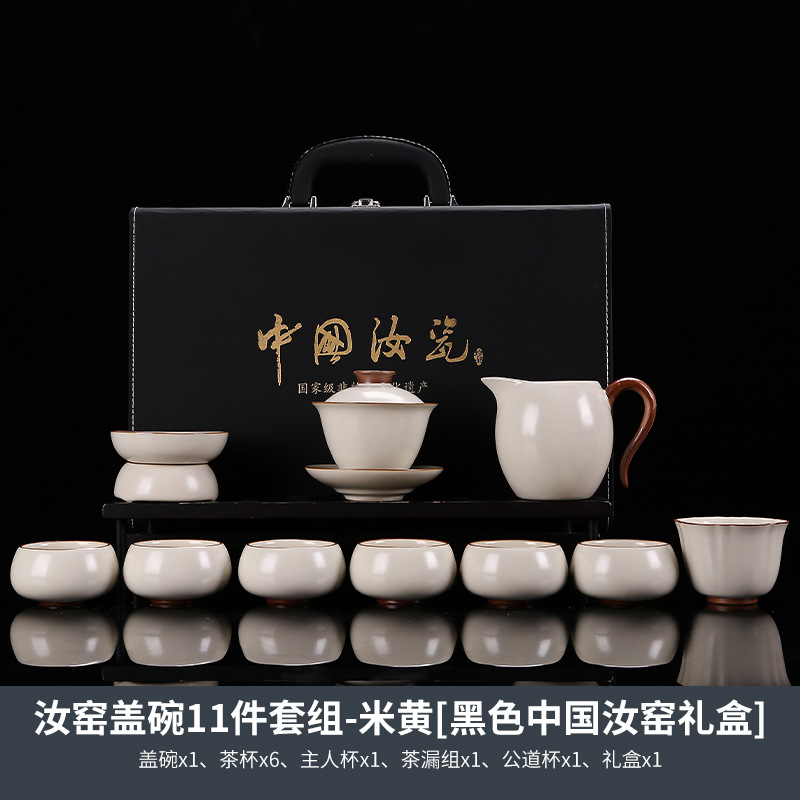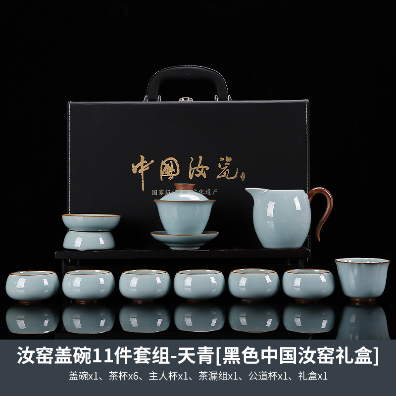 高端汝窑整套茶具家用高档轻奢陶瓷茶套商务送礼客厅办公会客礼品