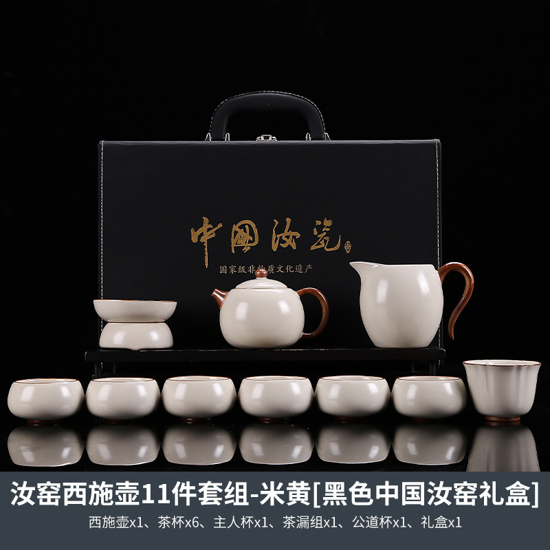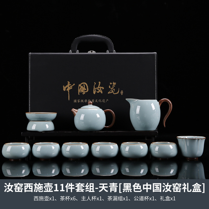 高端汝窑整套茶具家用高档轻奢陶瓷茶套商务送礼客厅办公会客礼品