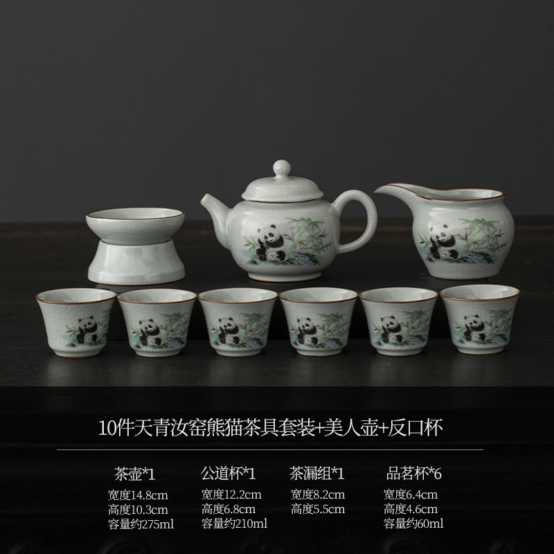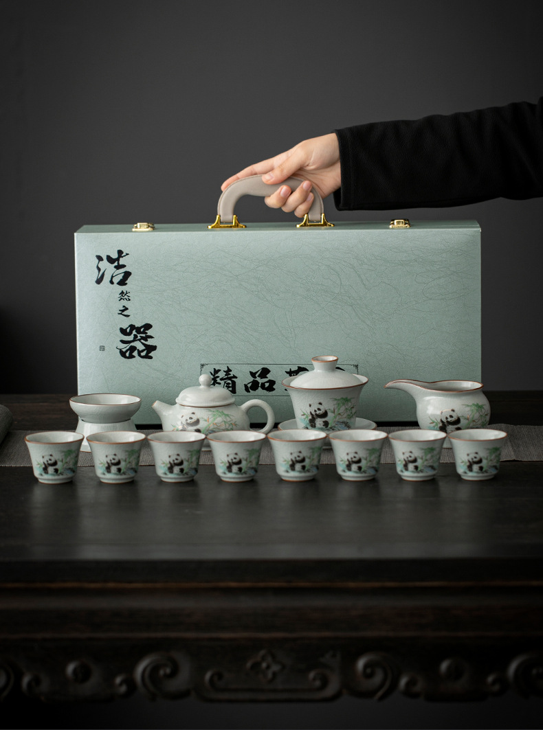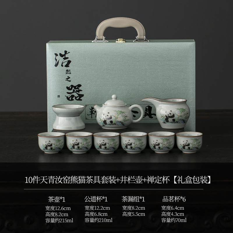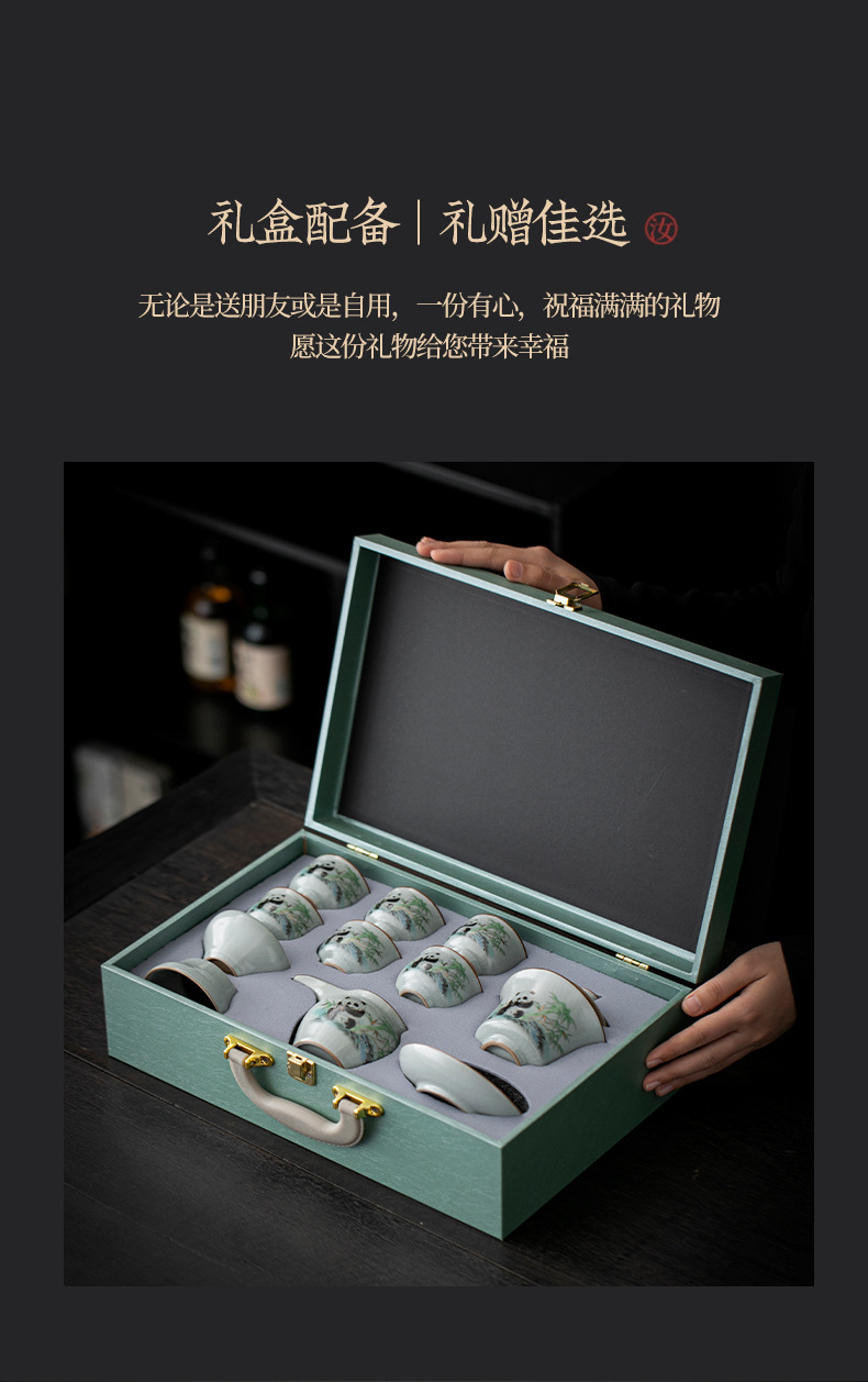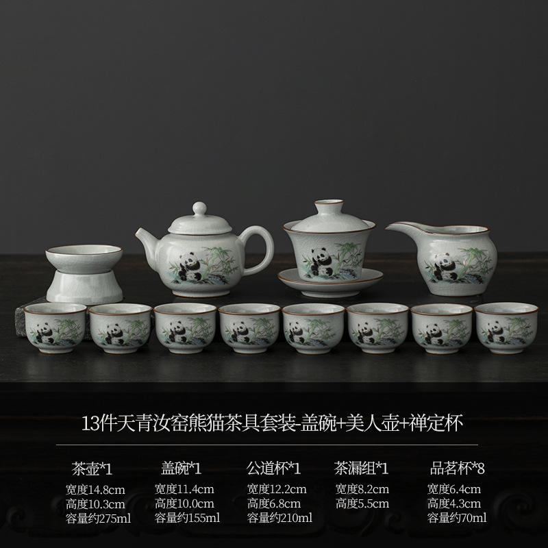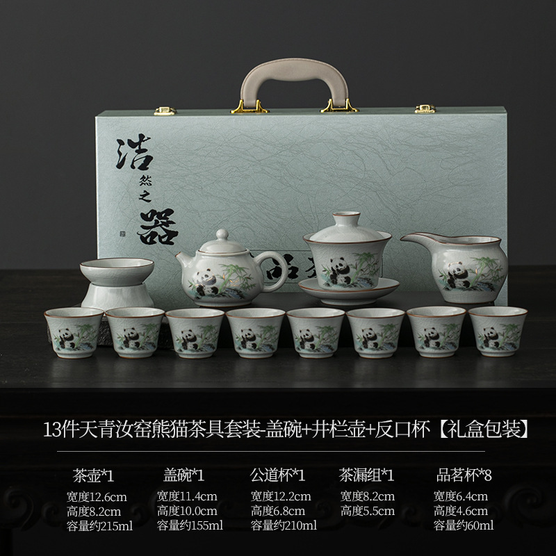 天青汝窑中式复古汝窑功夫茶具国潮新款套装茶盘陶瓷家用商务礼品