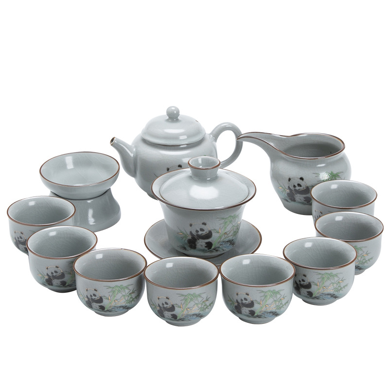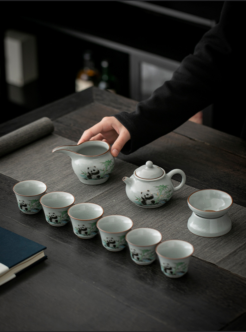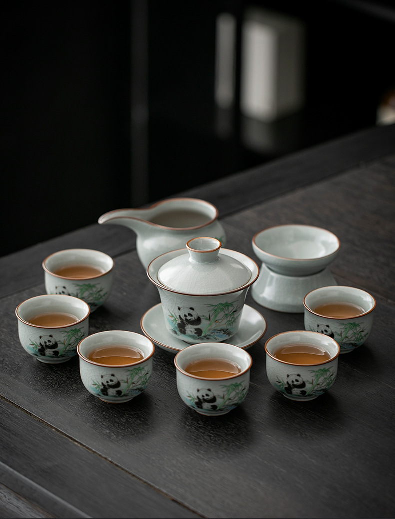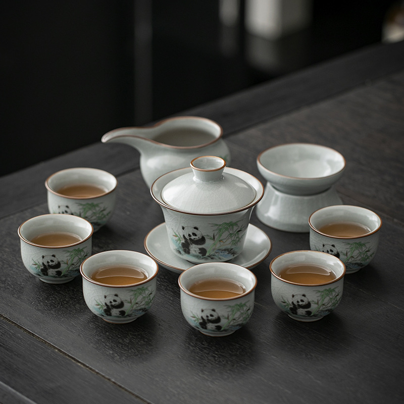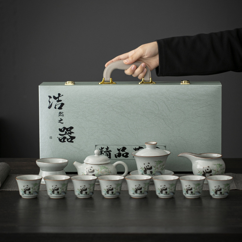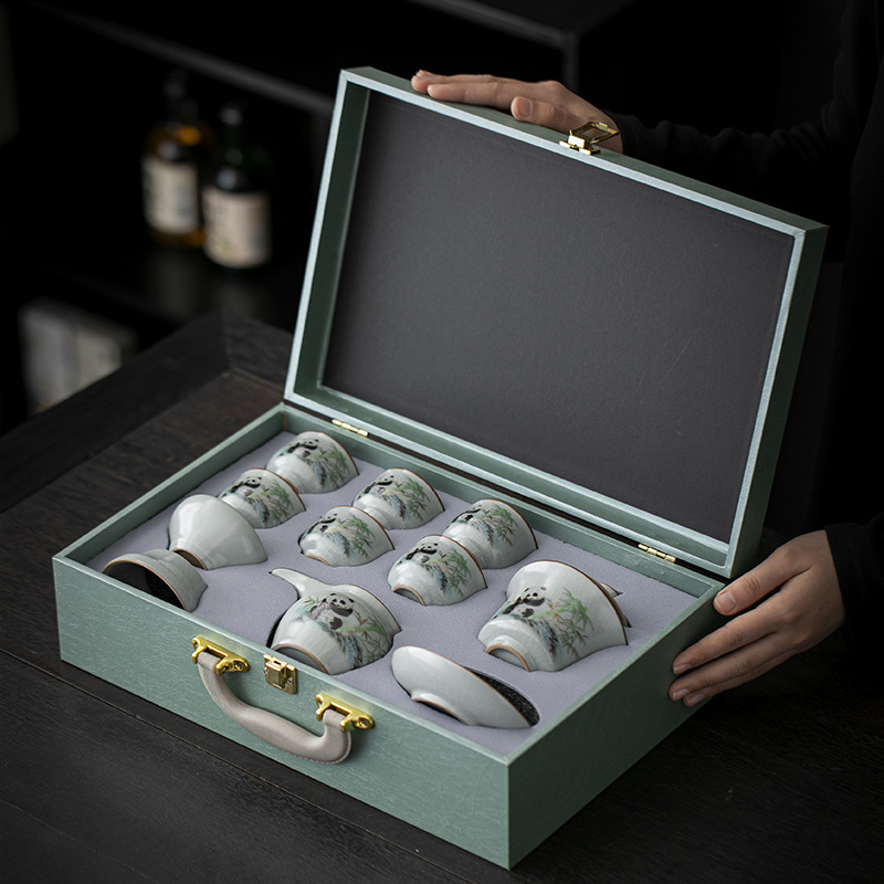 天青汝窑中式复古汝窑功夫茶具国潮新款套装茶盘陶瓷家用商务礼品