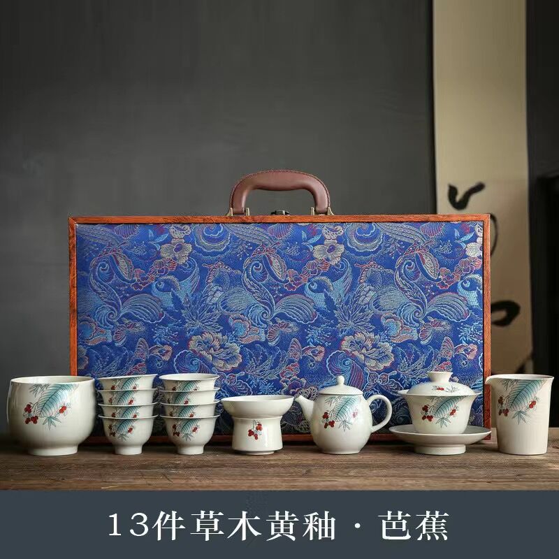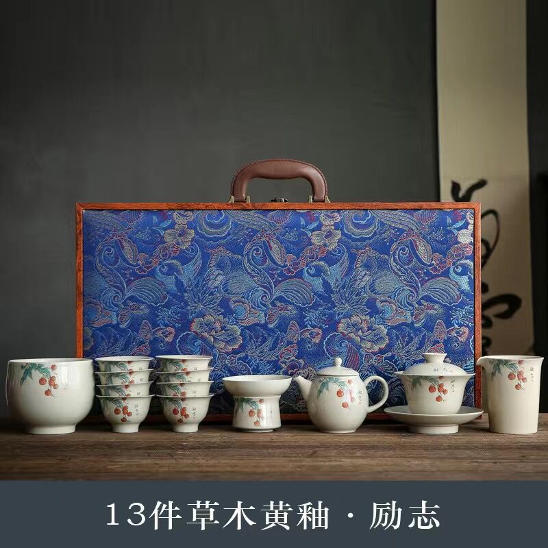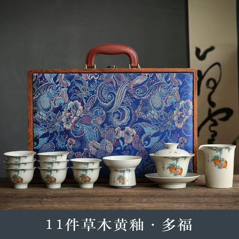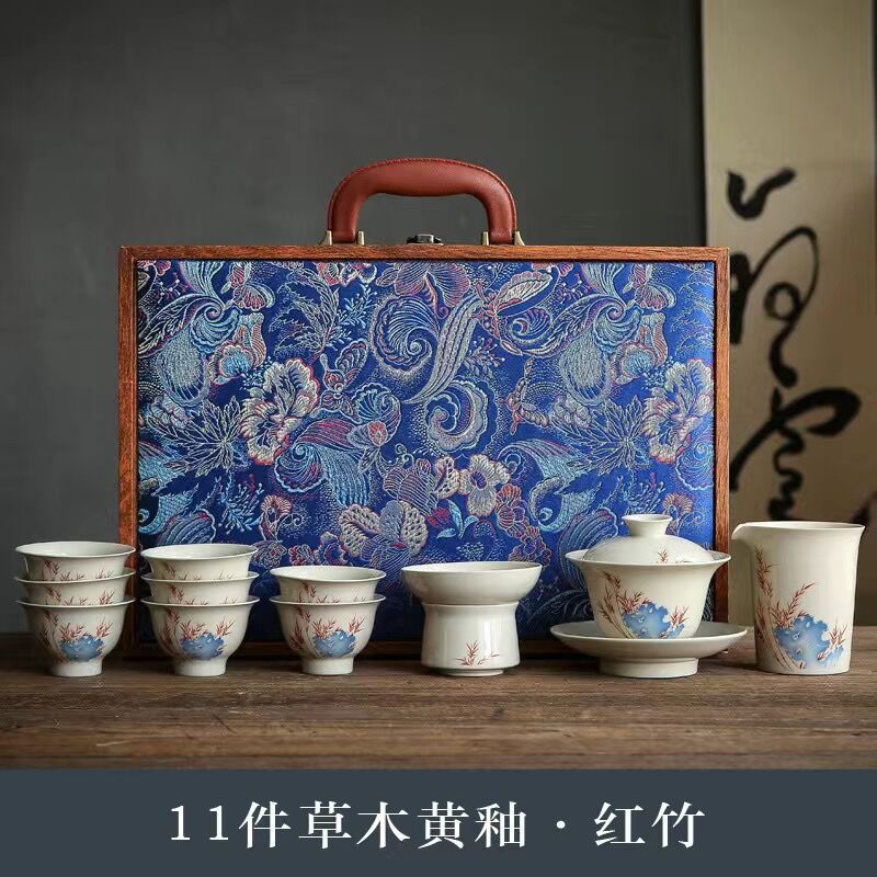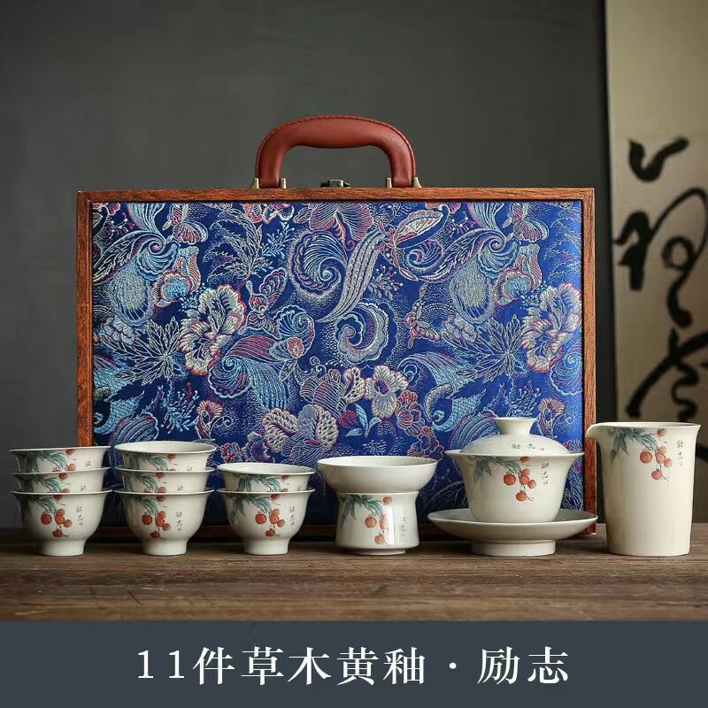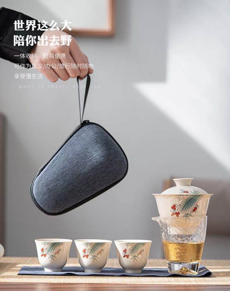 功夫茶具旅行套装陶瓷家用小套组盖碗茶杯茶壶办公室企业定礼盒装