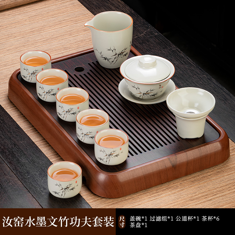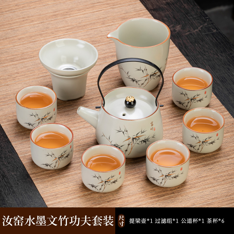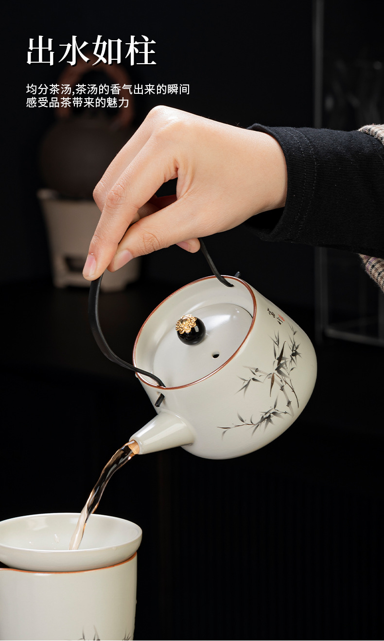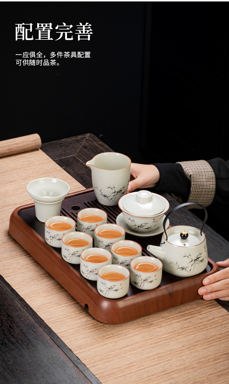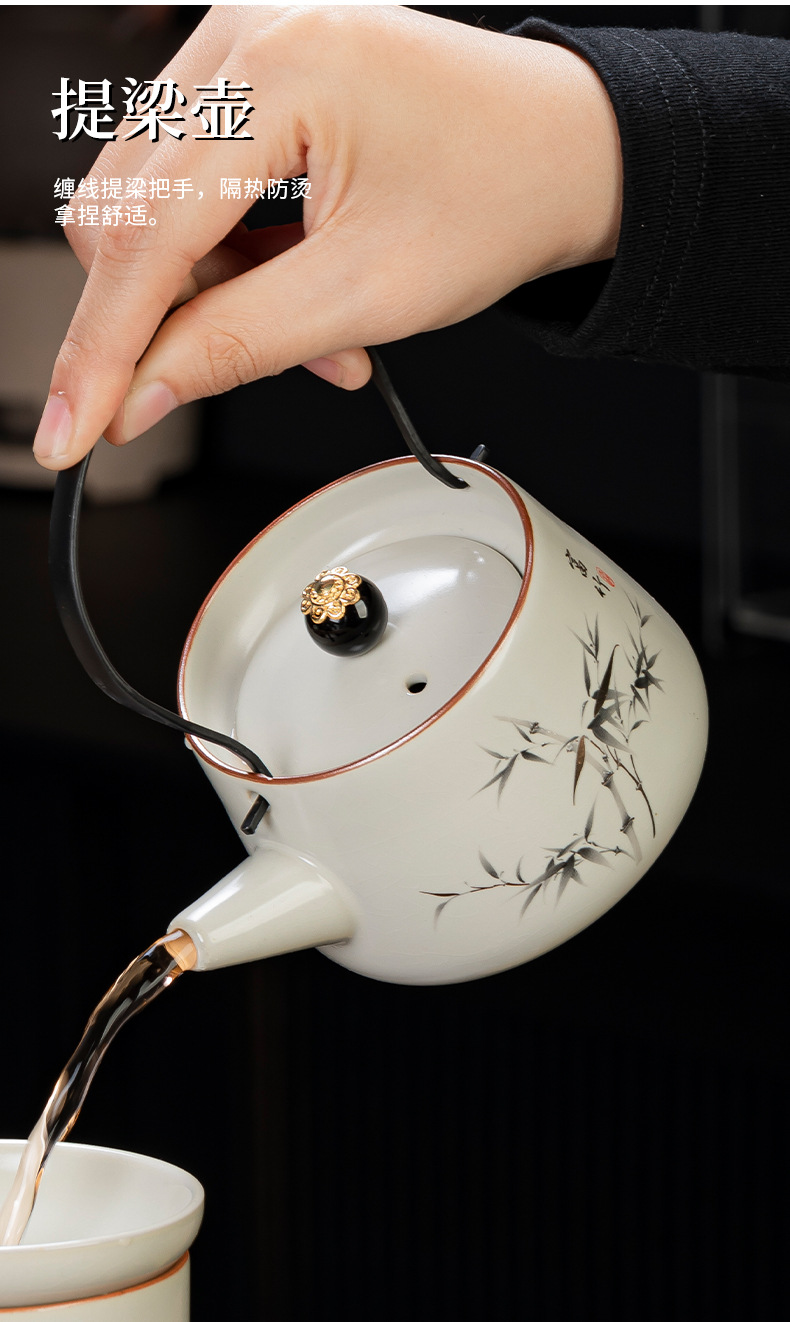 汝窑功夫茶具套装陶瓷中式提梁茶壶盖碗茶杯茶盘轻奢高档家用喝茶