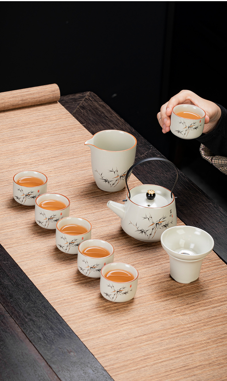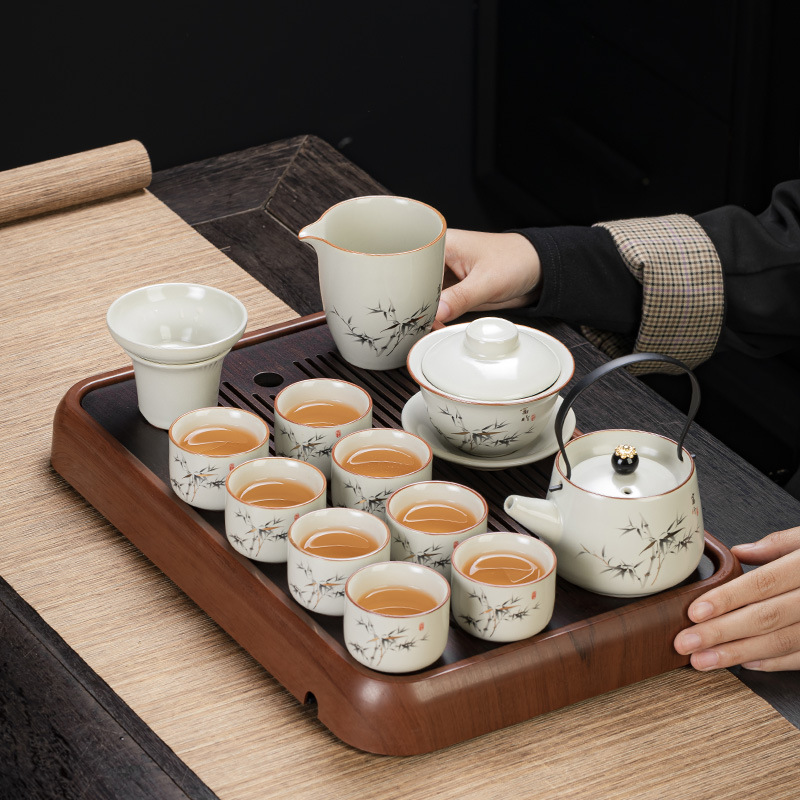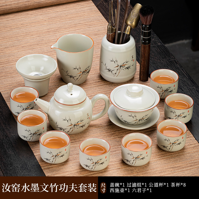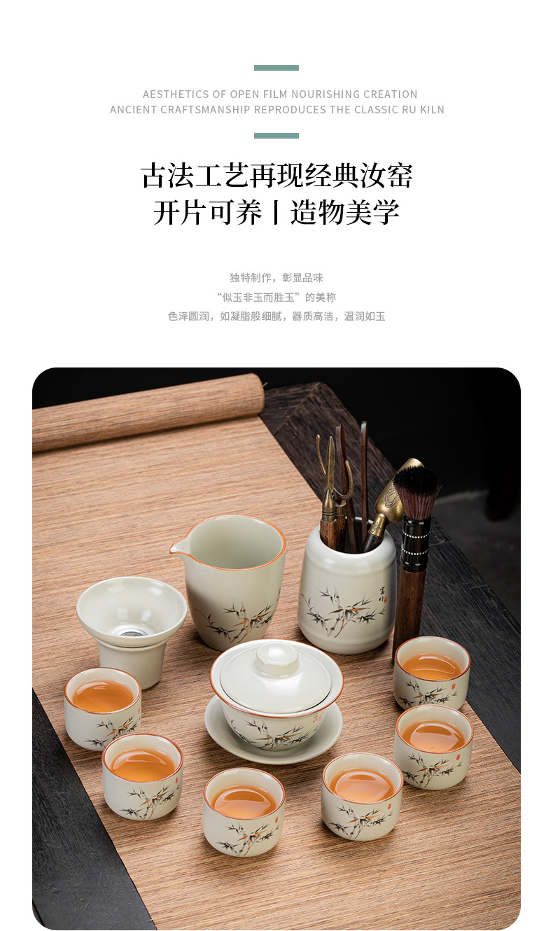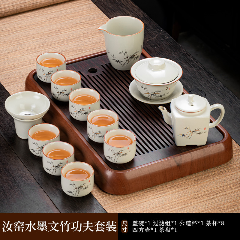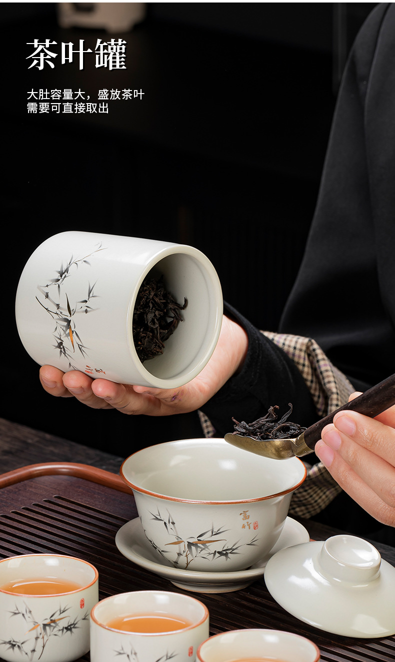 汝窑功夫茶具套装陶瓷中式提梁茶壶盖碗茶杯茶盘轻奢高档家用喝茶