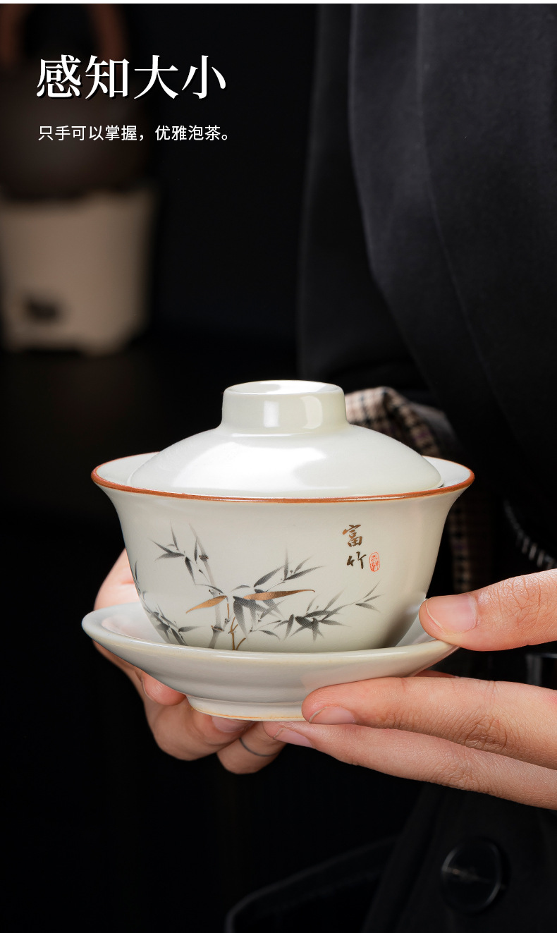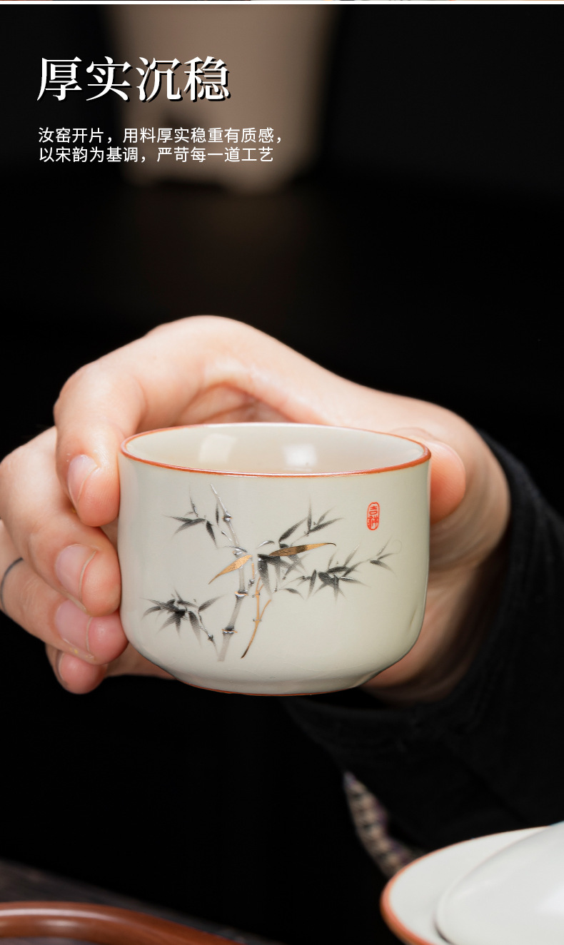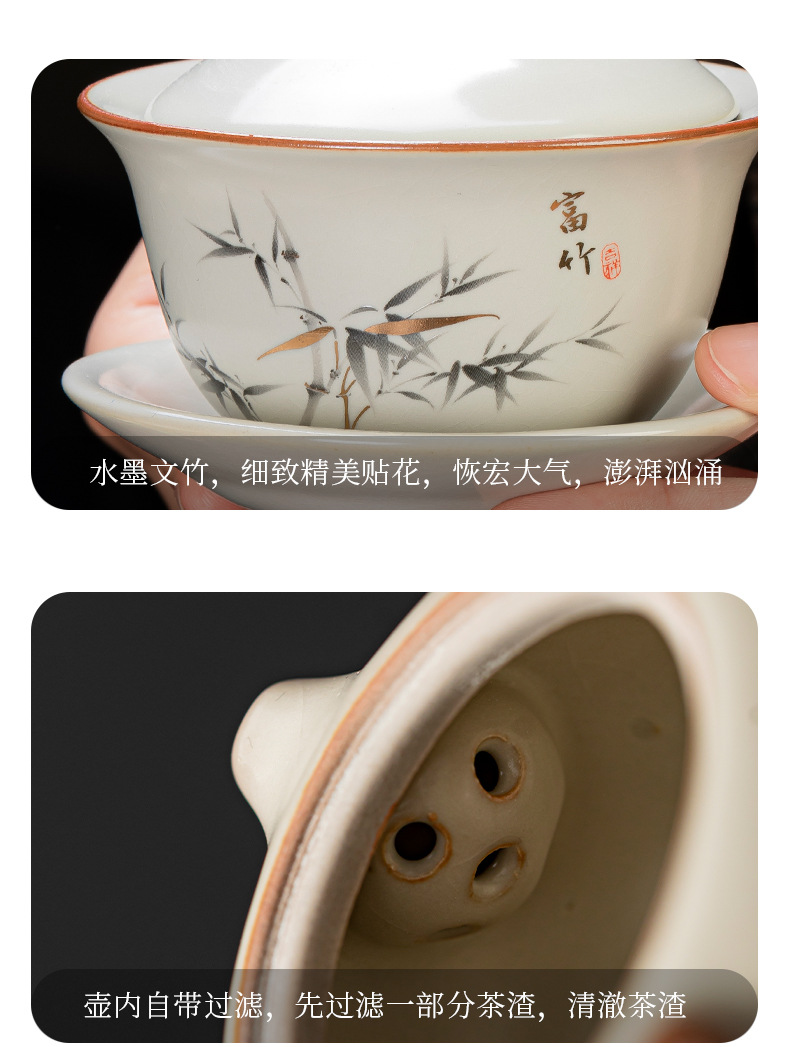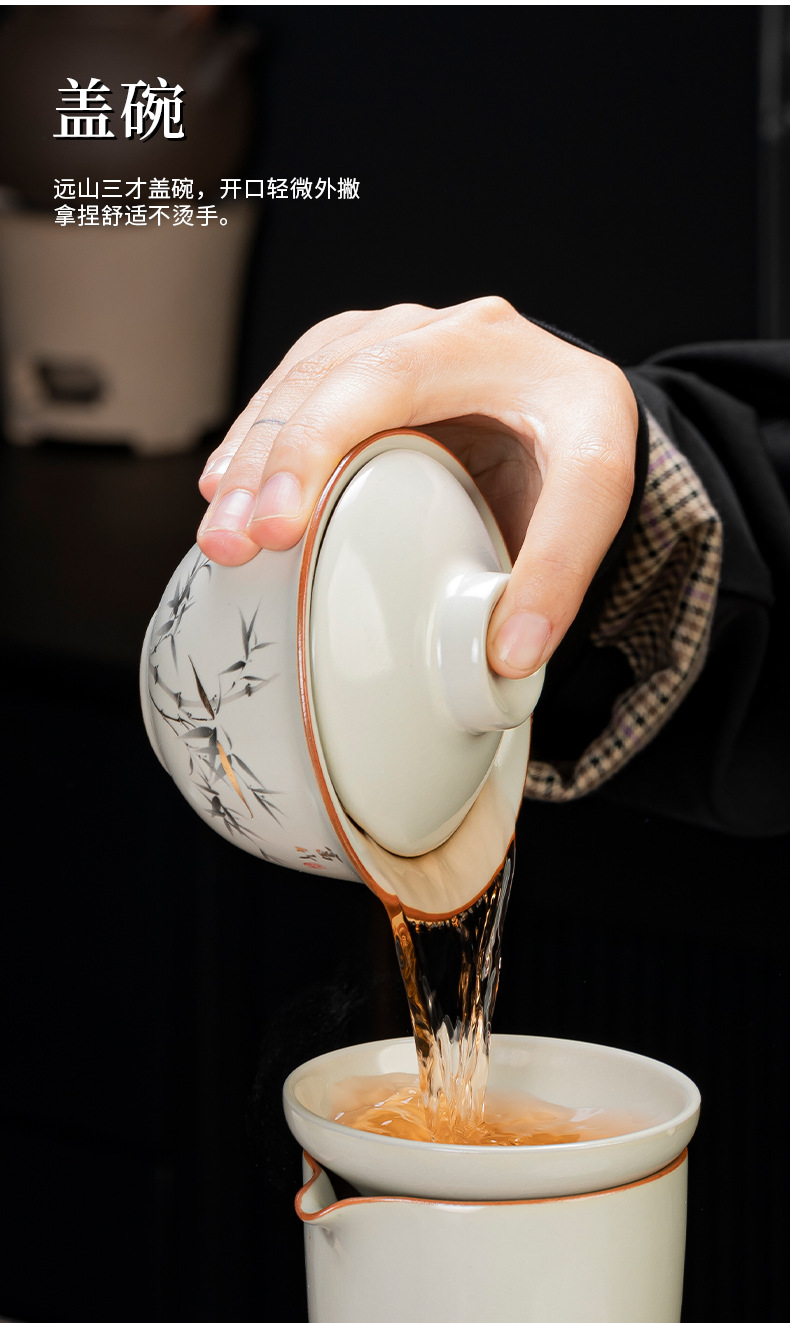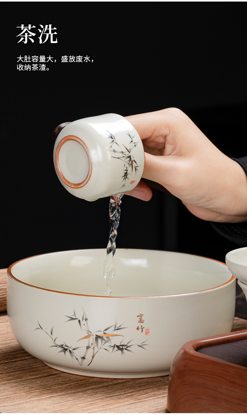 汝窑功夫茶具套装陶瓷中式提梁茶壶盖碗茶杯茶盘轻奢高档家用喝茶