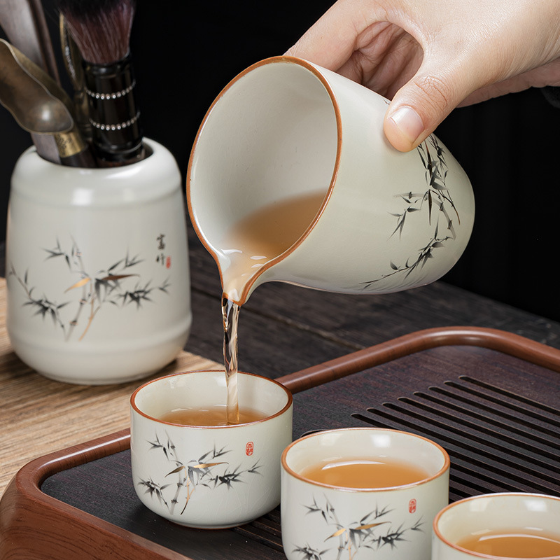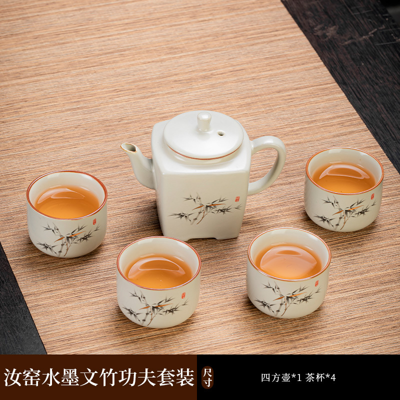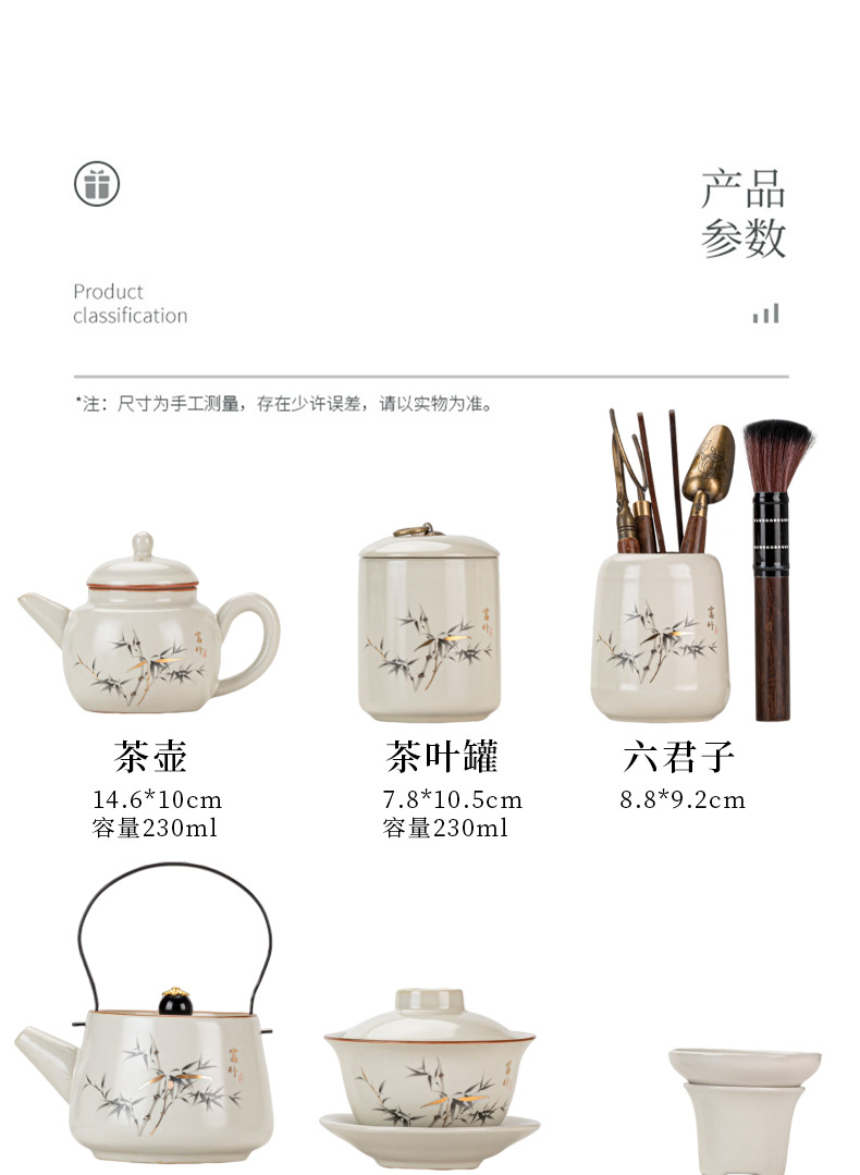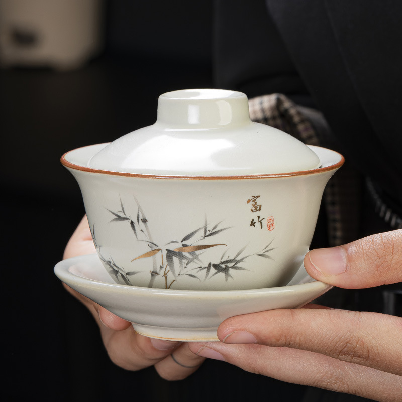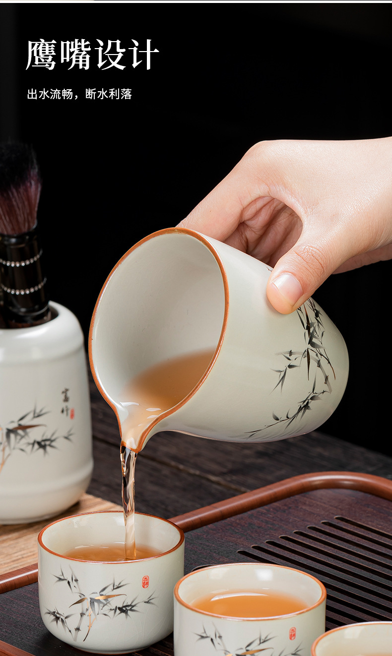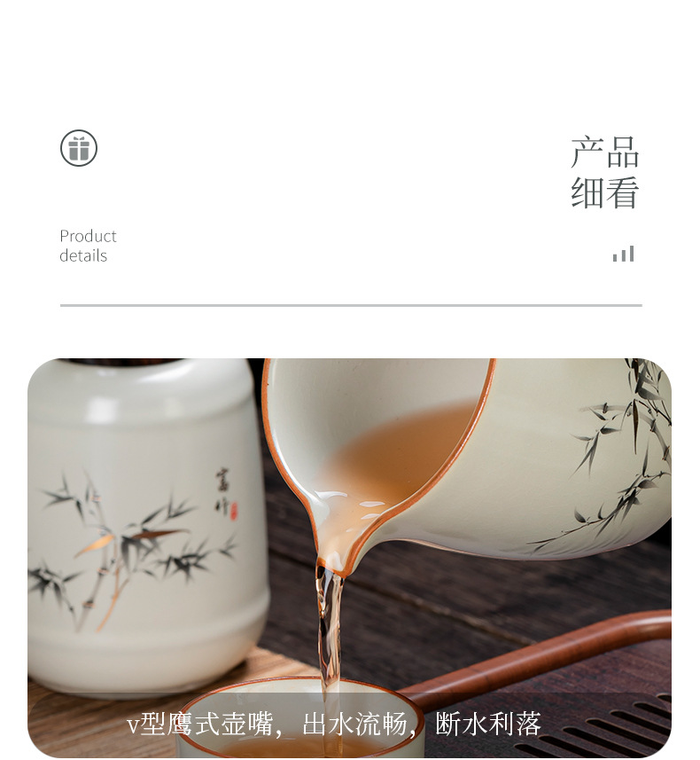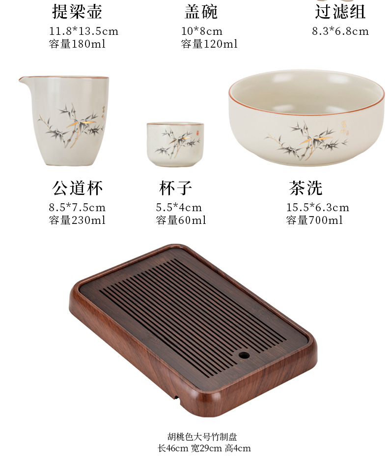 汝窑功夫茶具套装陶瓷中式提梁茶壶盖碗茶杯茶盘轻奢高档家用喝茶