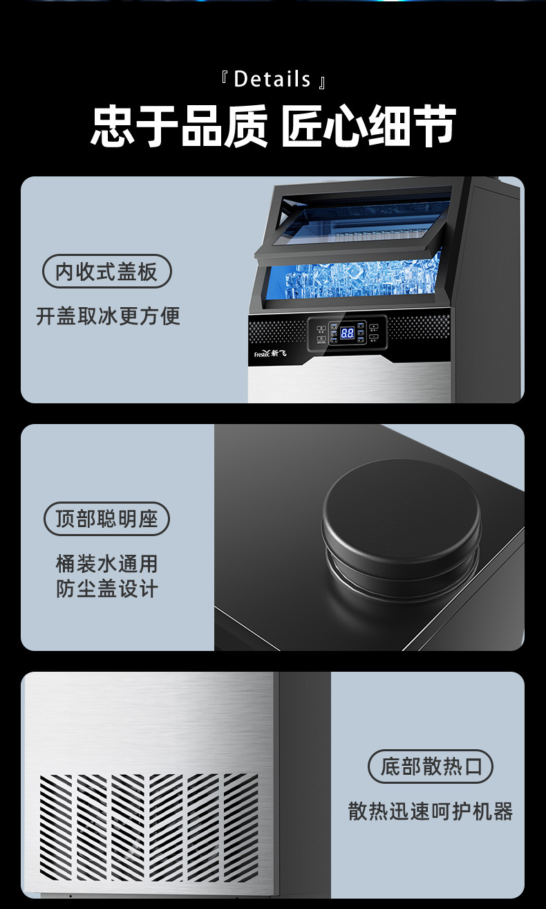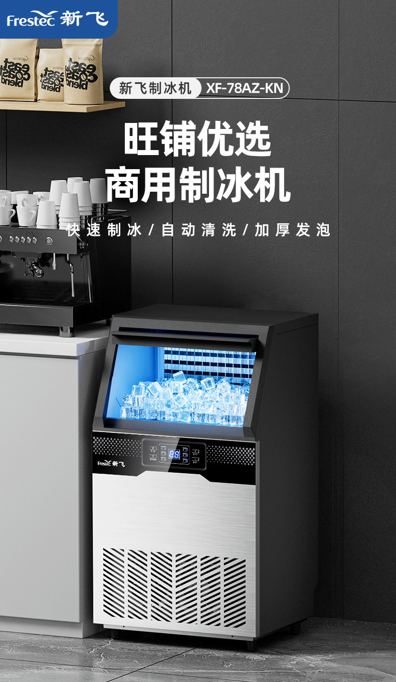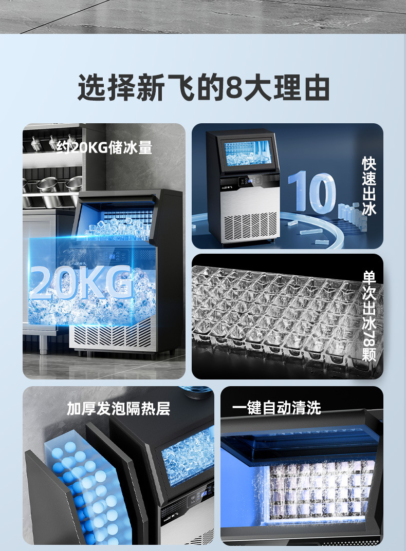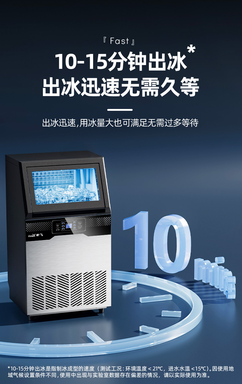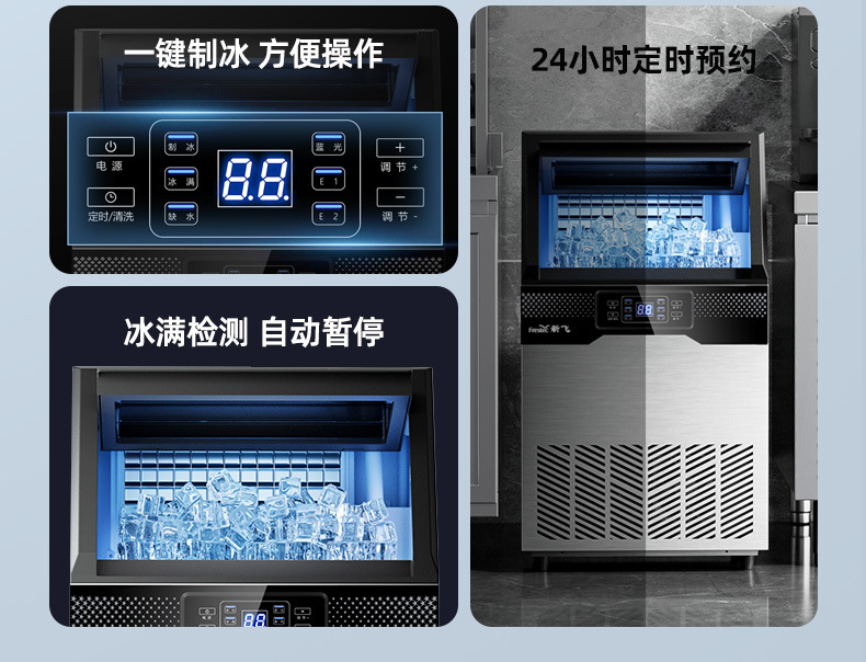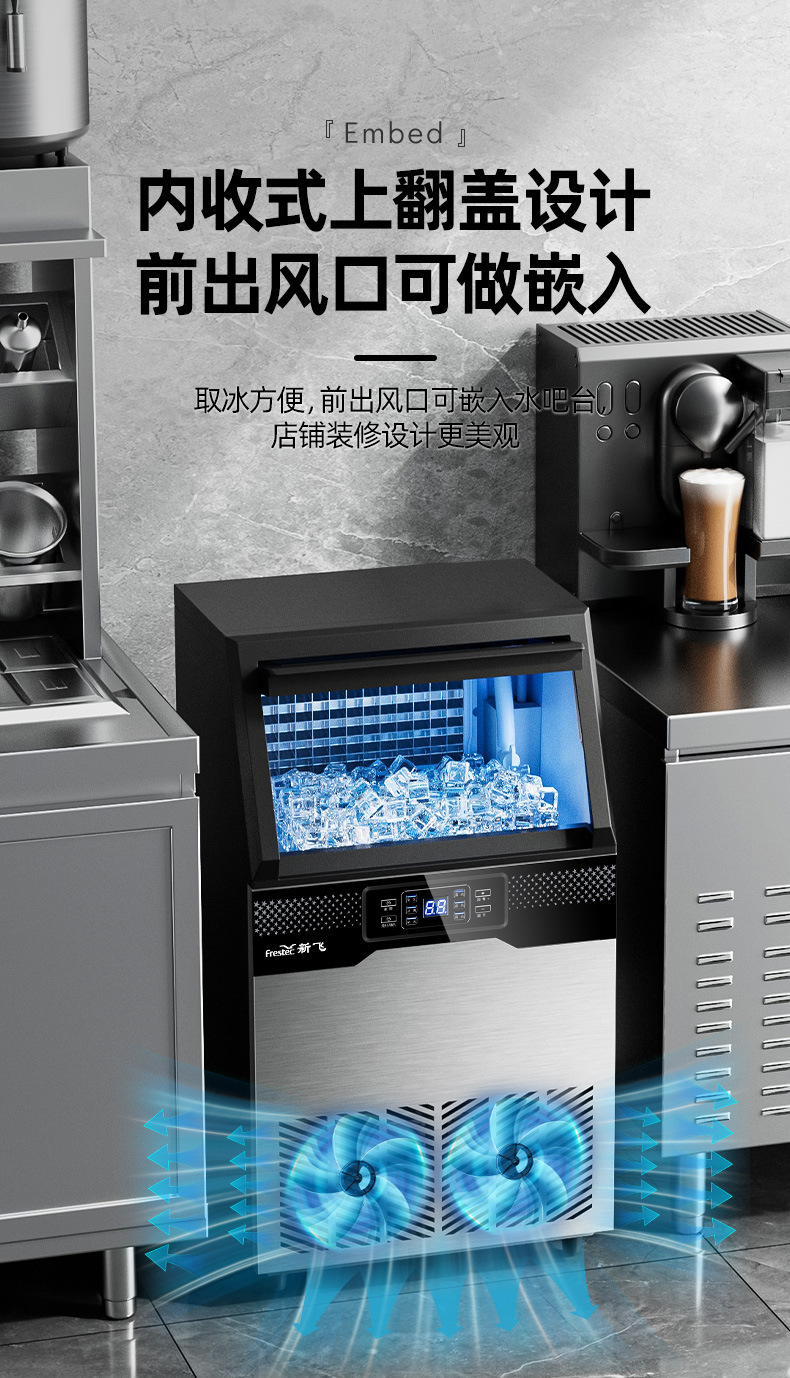 新飞制冰机商用大型奶茶店全自动实心冰块一体机跨境OEM代工定制