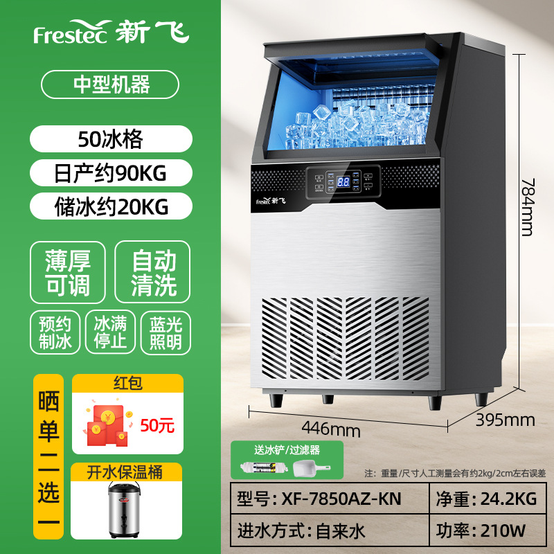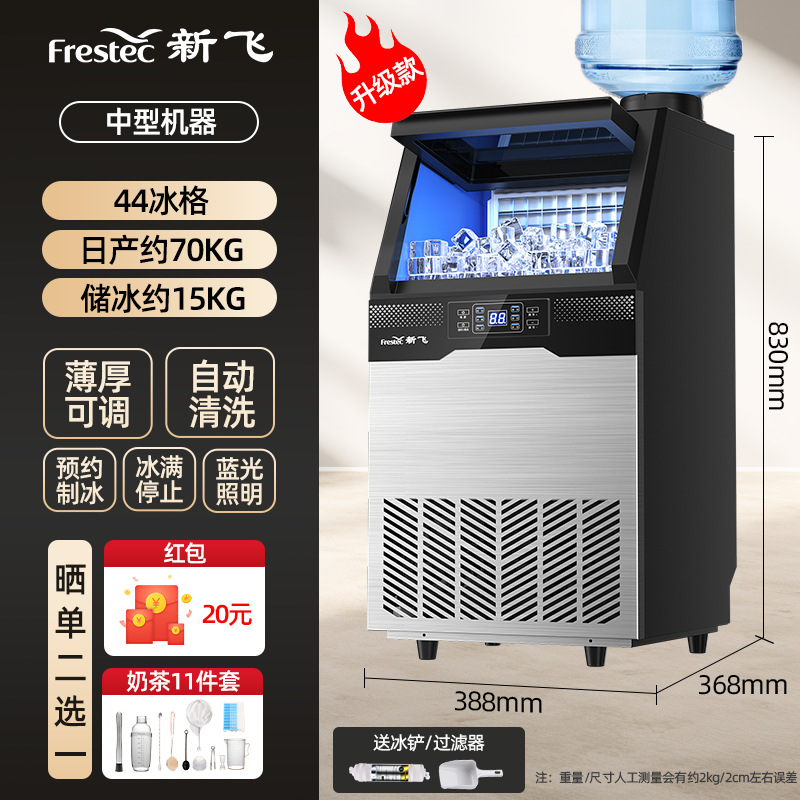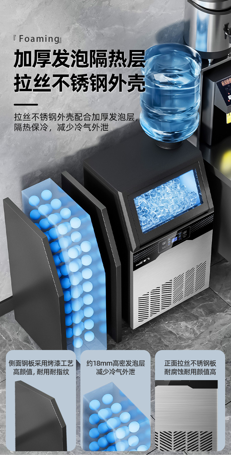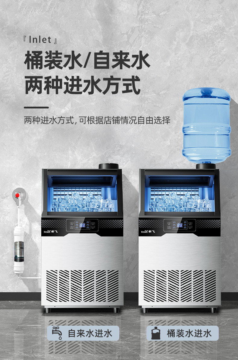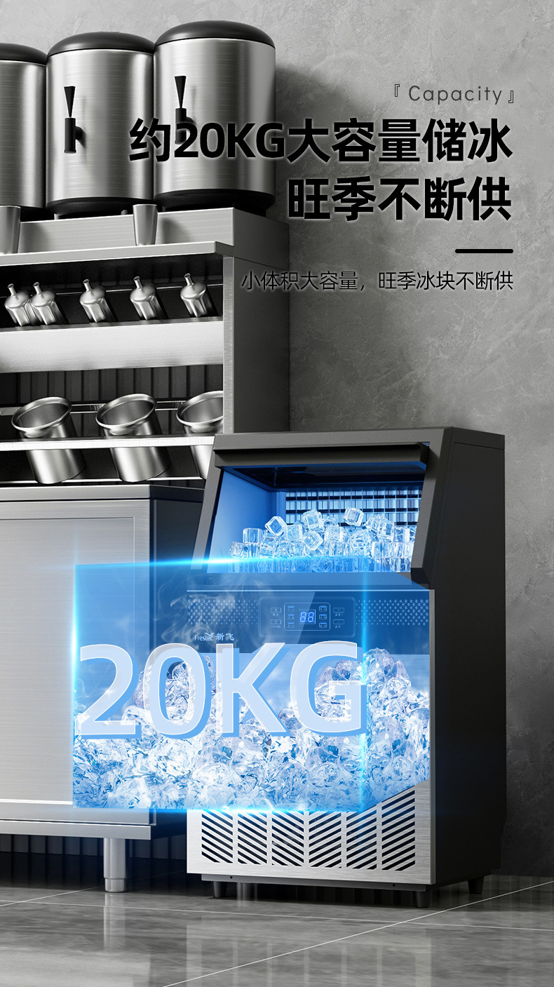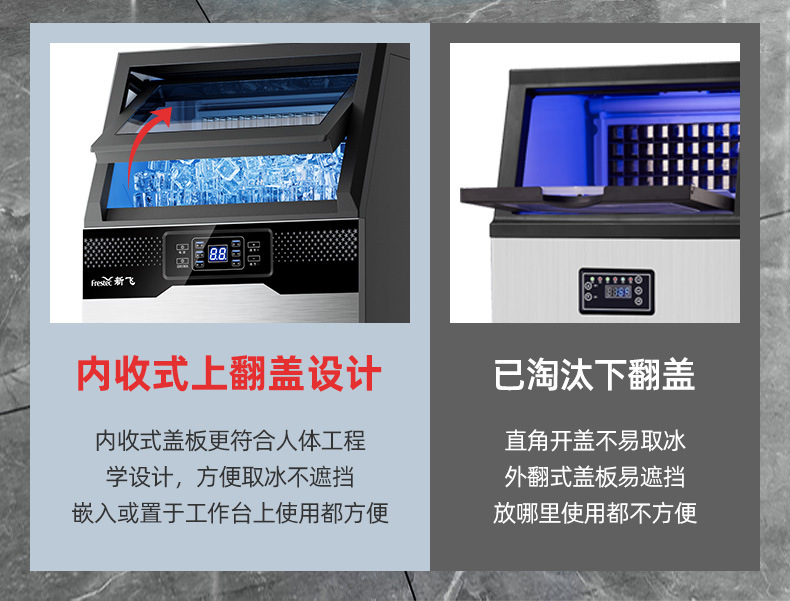 新飞制冰机商用大型奶茶店全自动实心冰块一体机跨境OEM代工定制