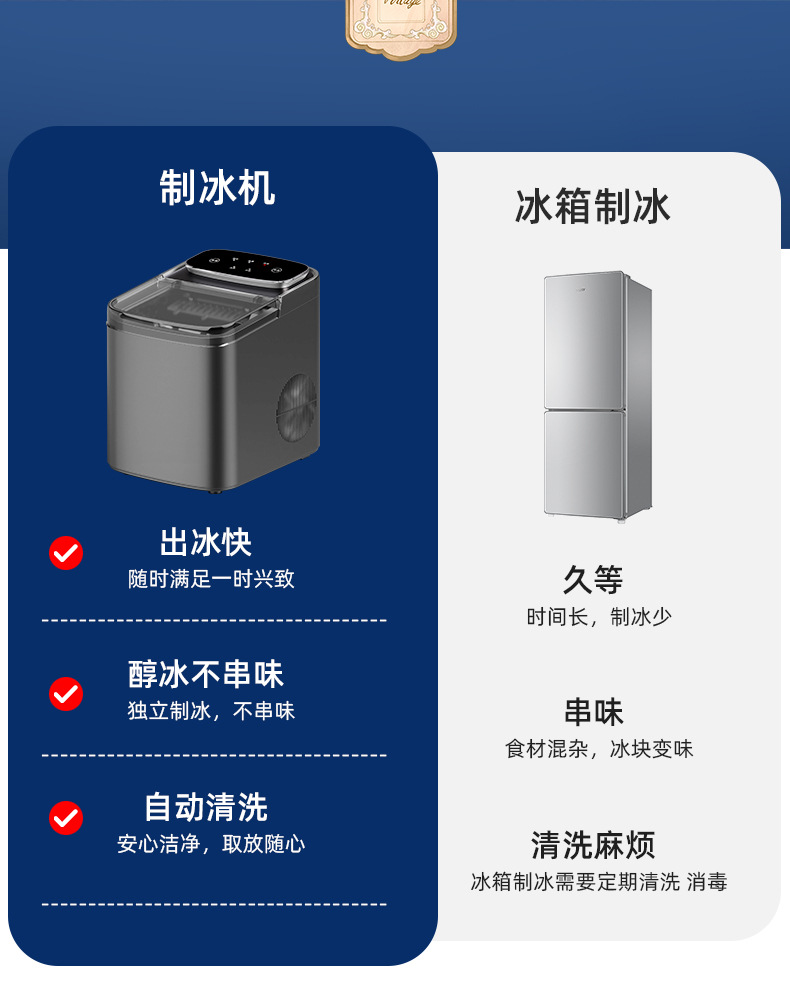 跨境新款制冰机全自动家用小型制冰机便携式迷你宿舍圆冰块制造机