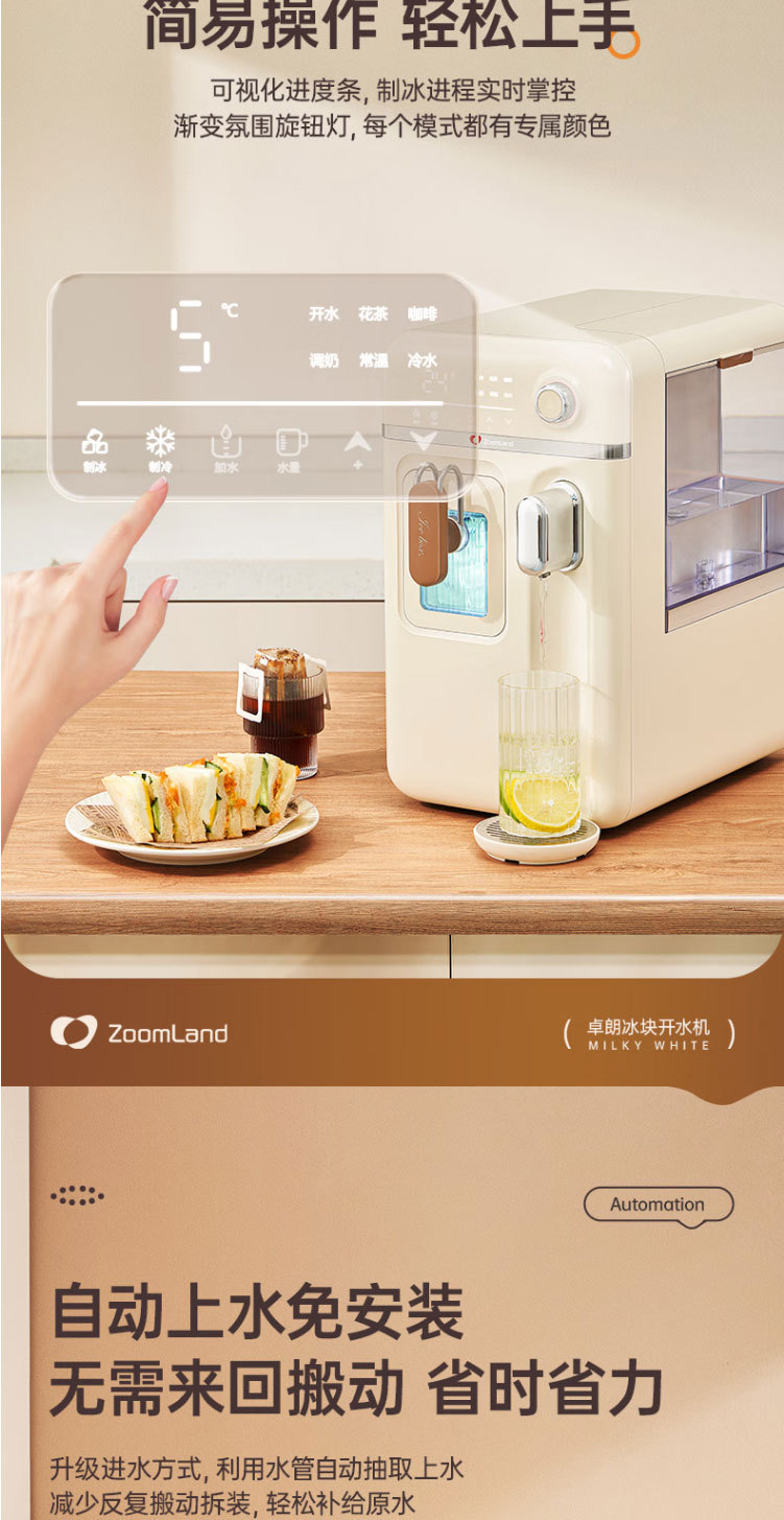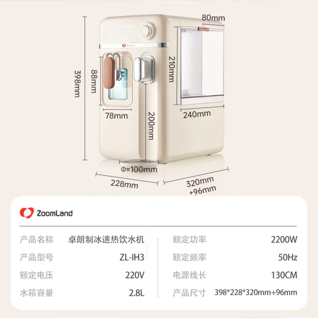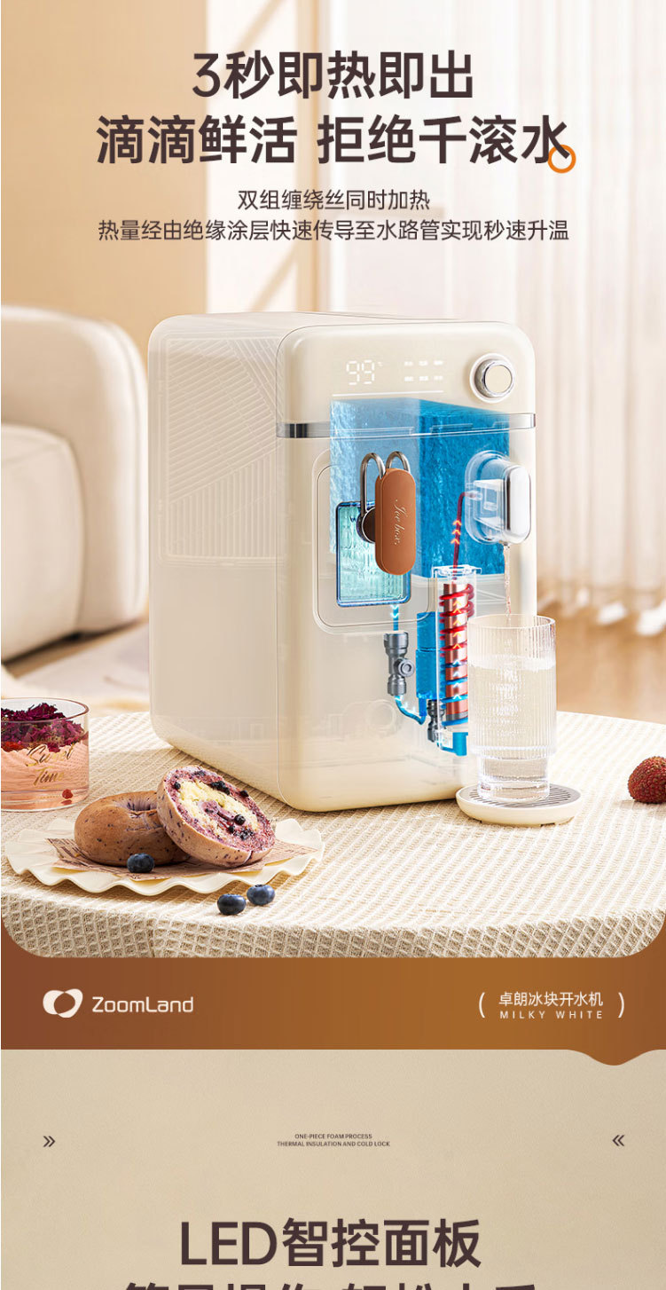 卓朗ZL-IH3制冰机小型即热式制冰饮水机制冷+制热+制冰器三合一