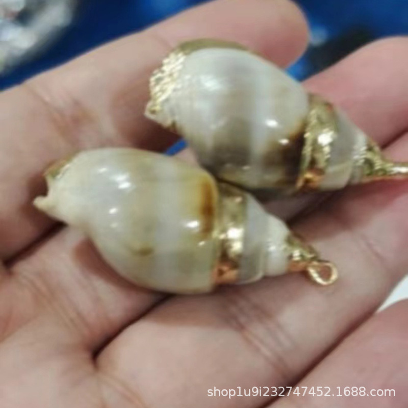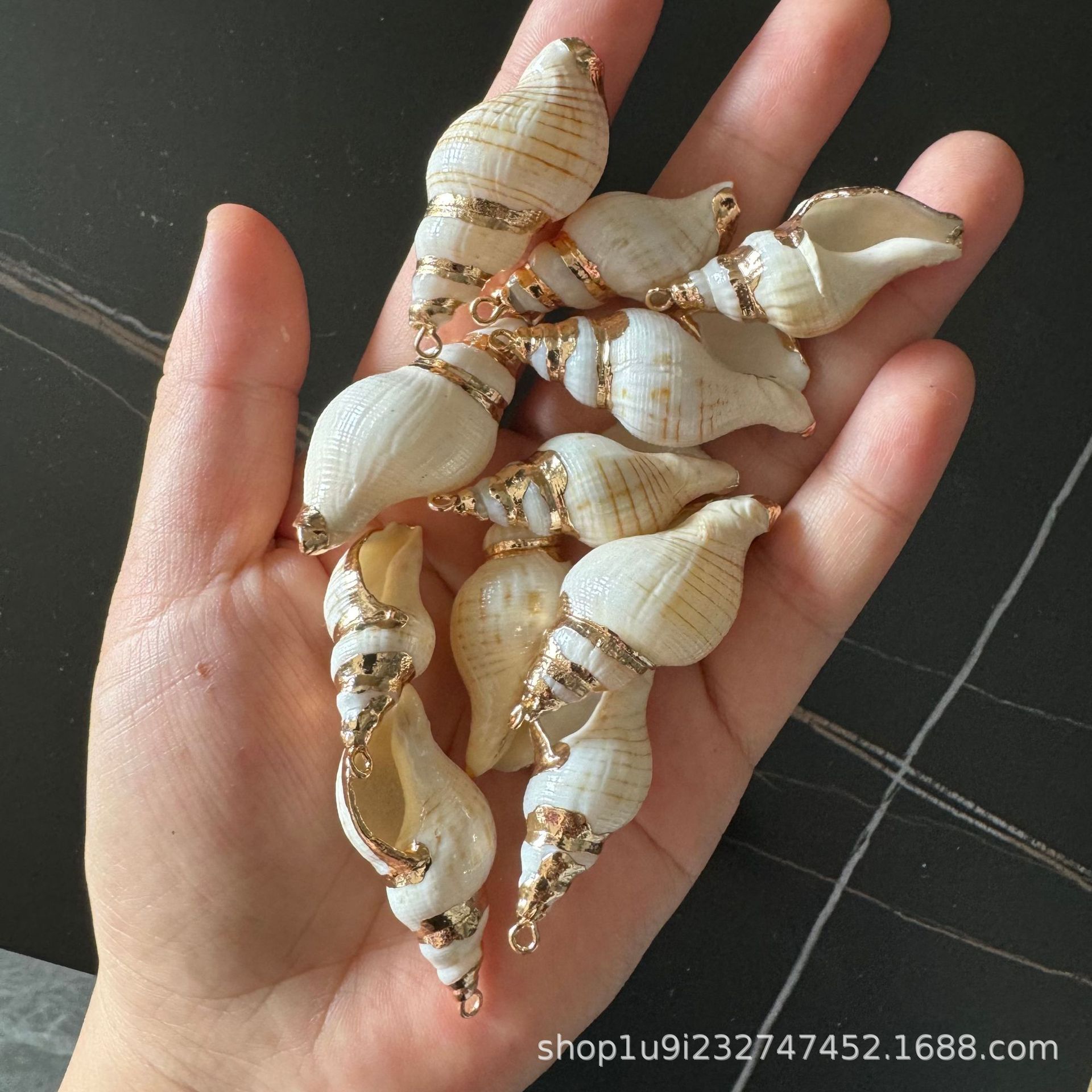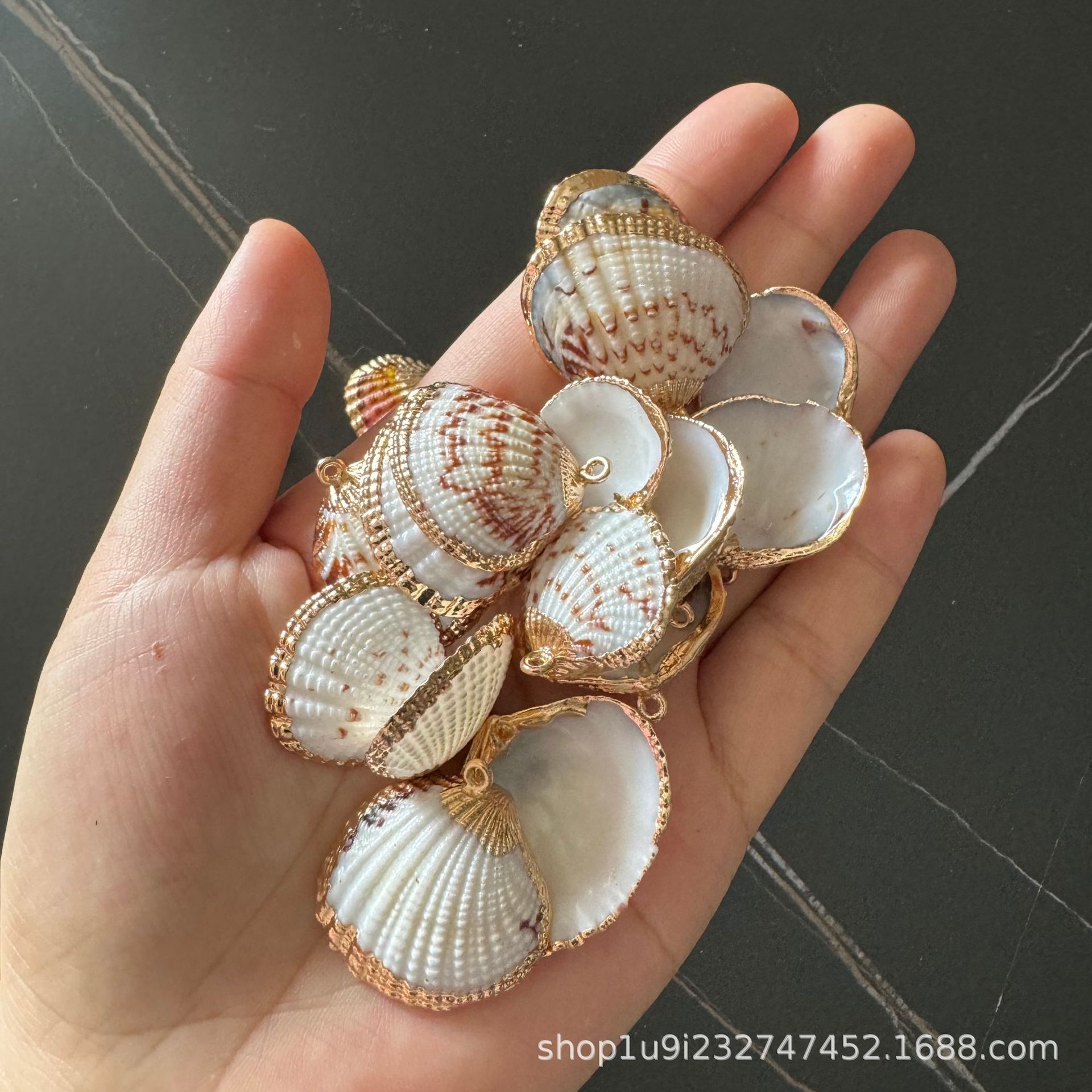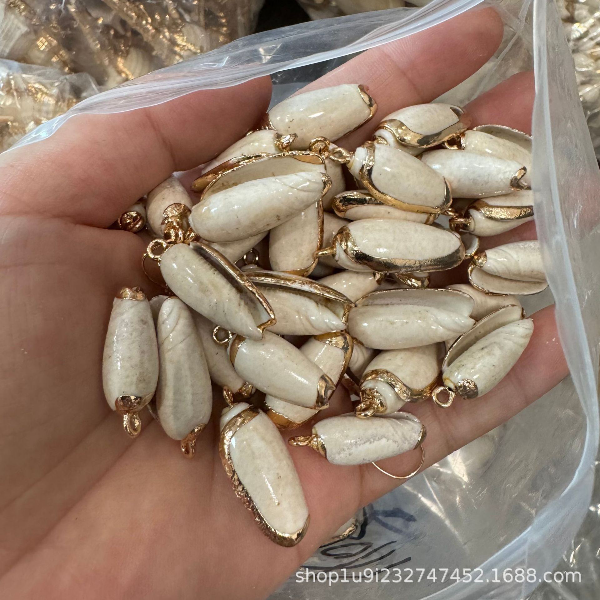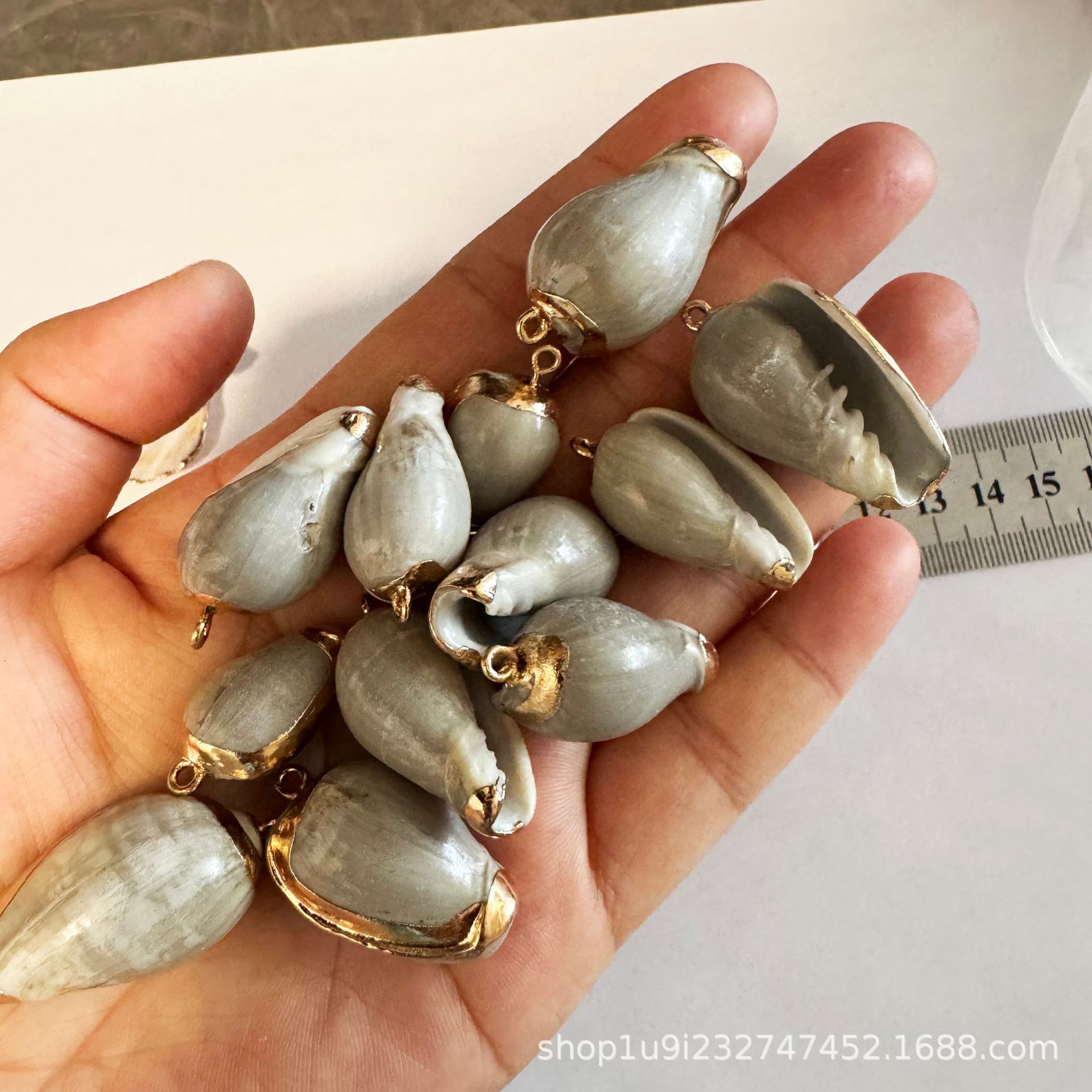 爱贝来海螺吊坠配件 包金边贝壳耳环项链挂件 贝壳材料亚马逊货源