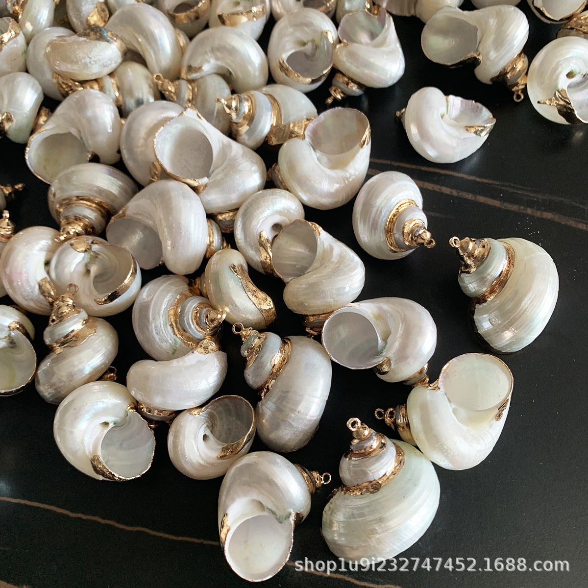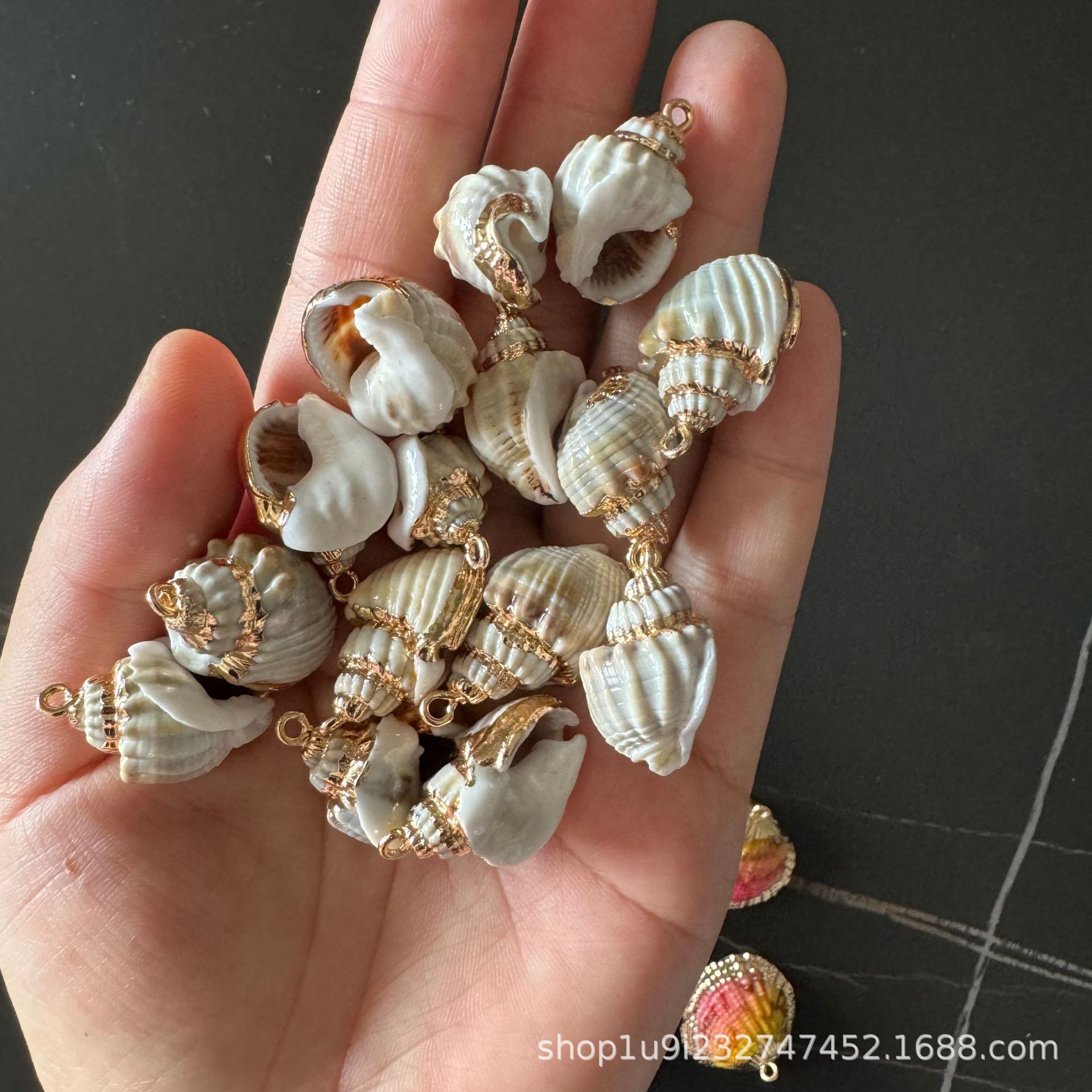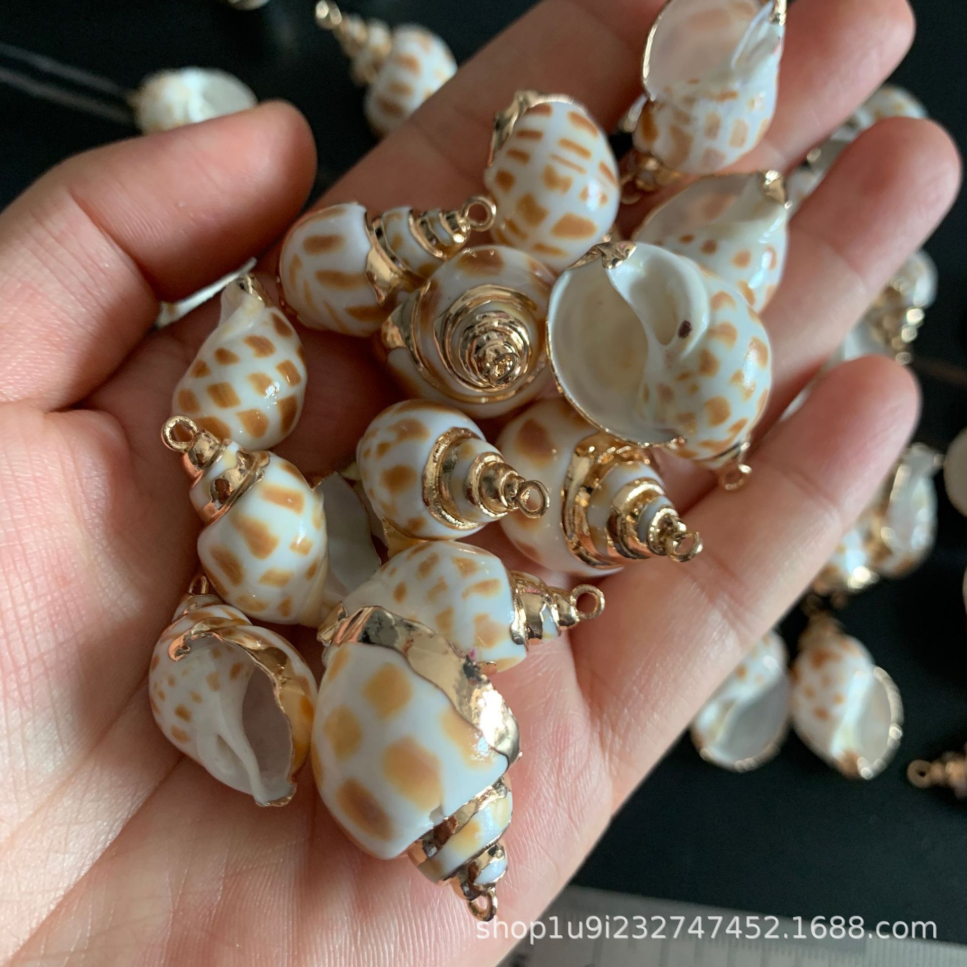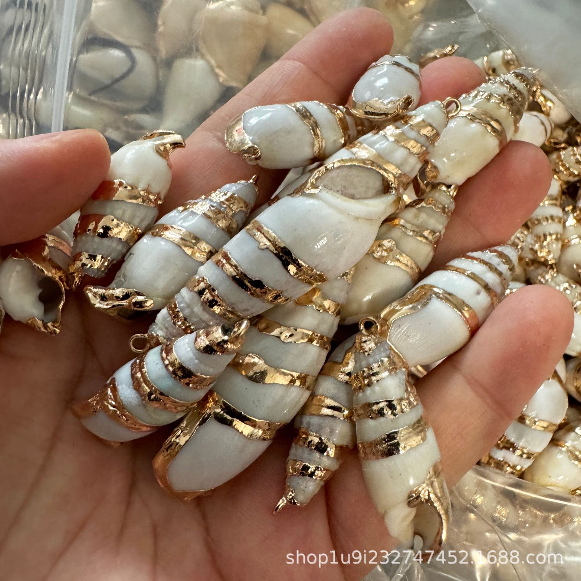 爱贝来海螺吊坠配件 包金边贝壳耳环项链挂件 贝壳材料亚马逊货源