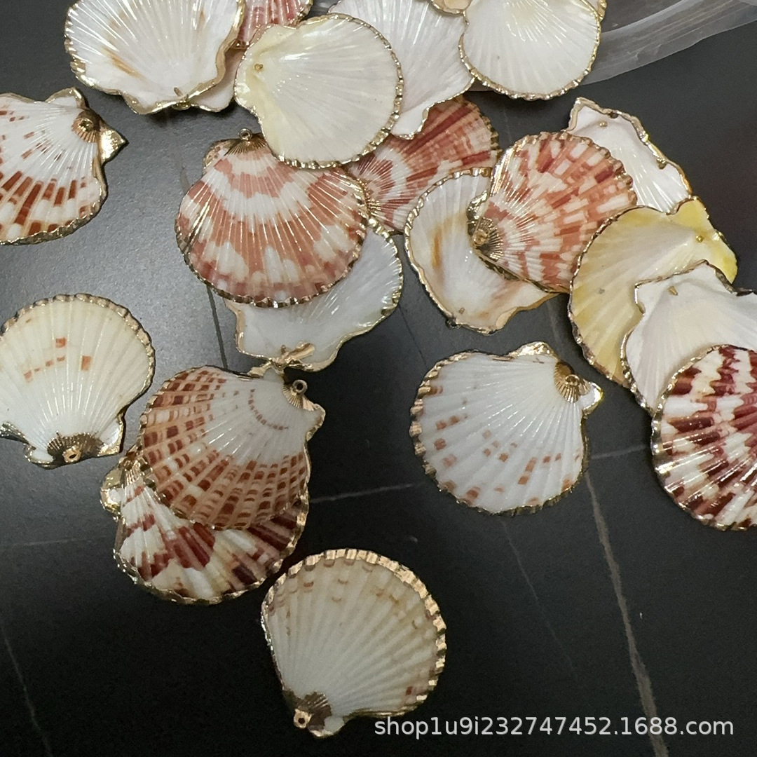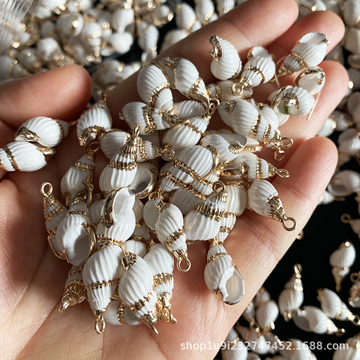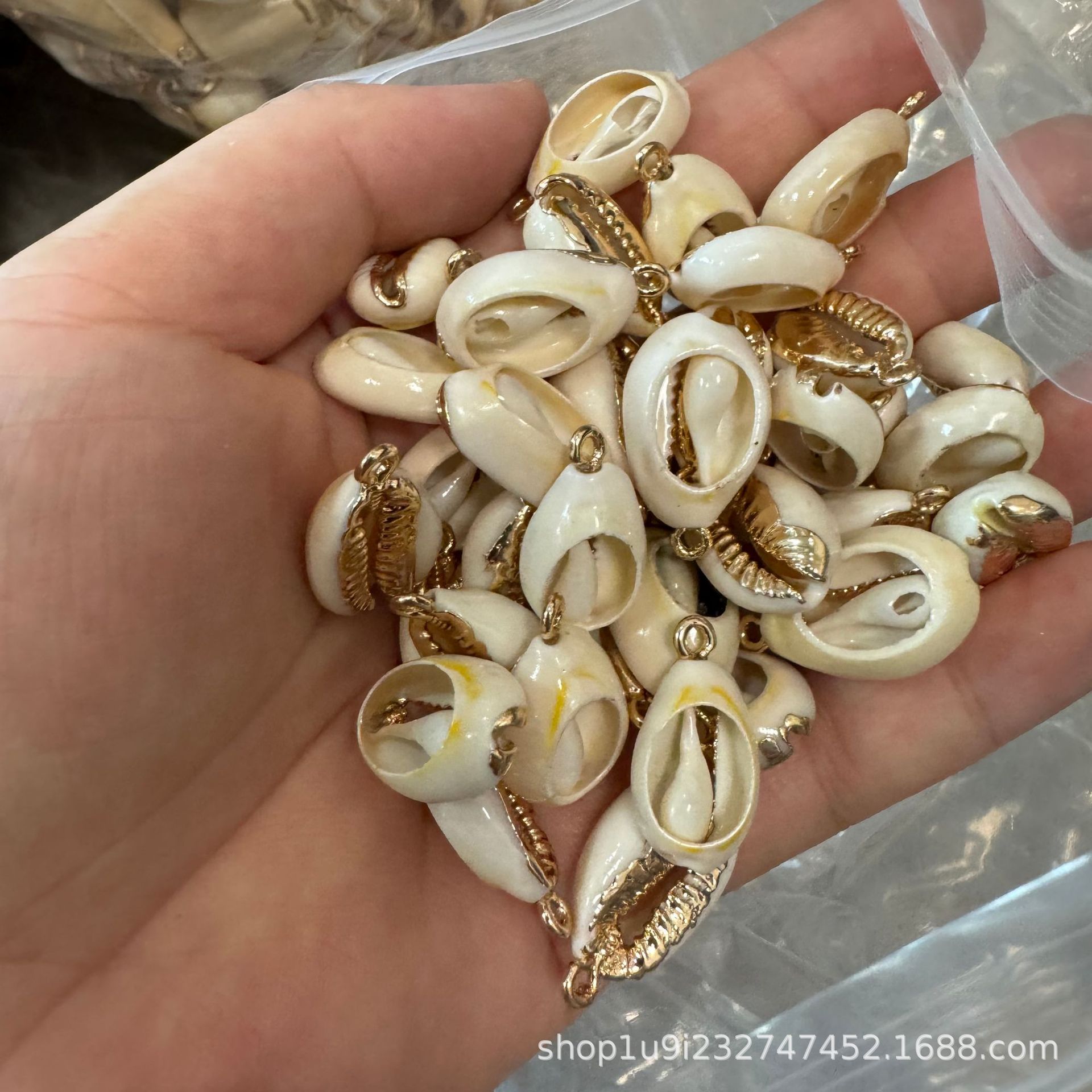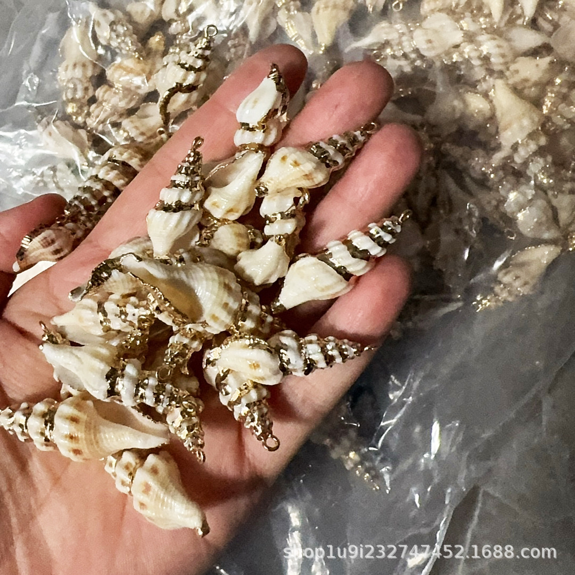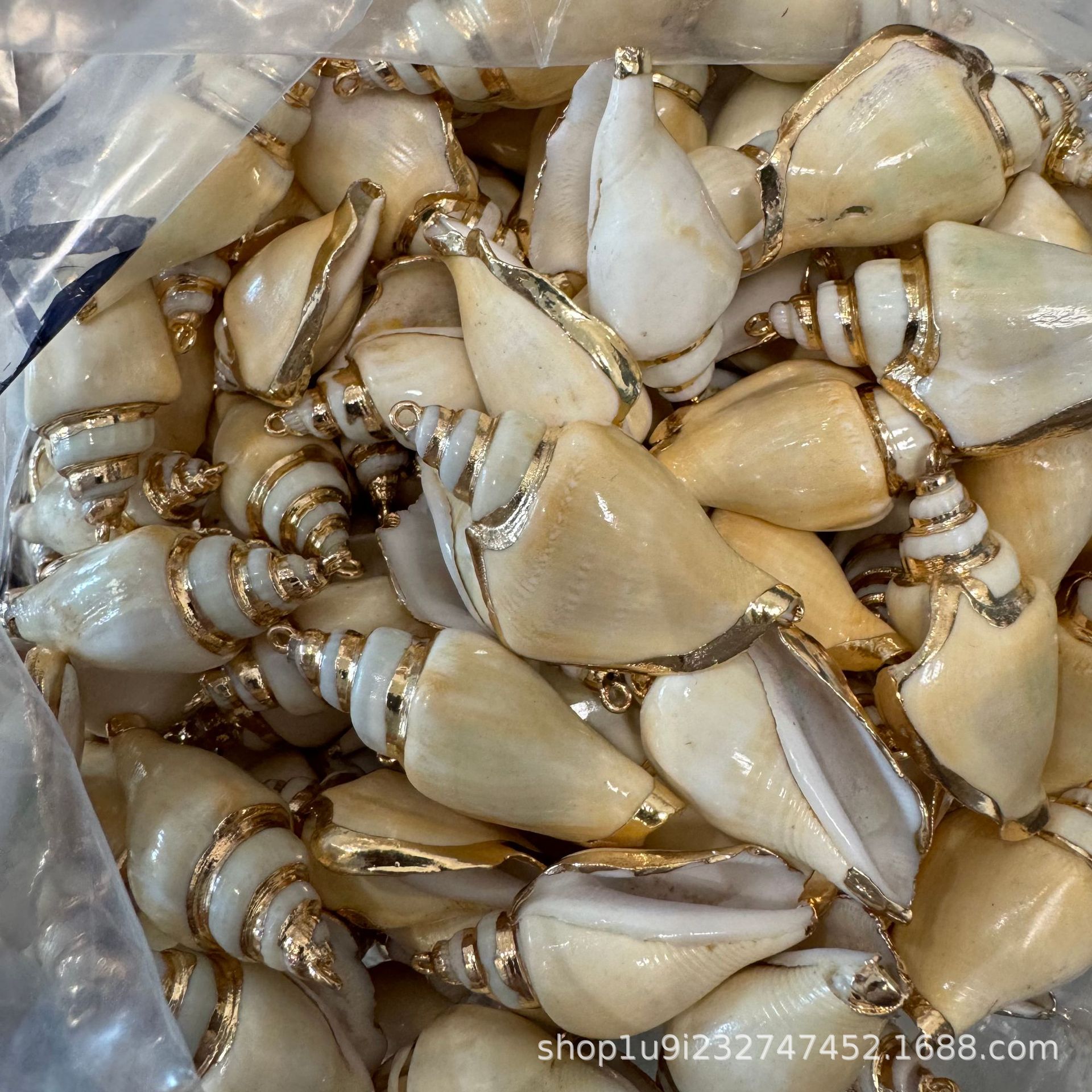 爱贝来海螺吊坠配件 包金边贝壳耳环项链挂件 贝壳材料亚马逊货源