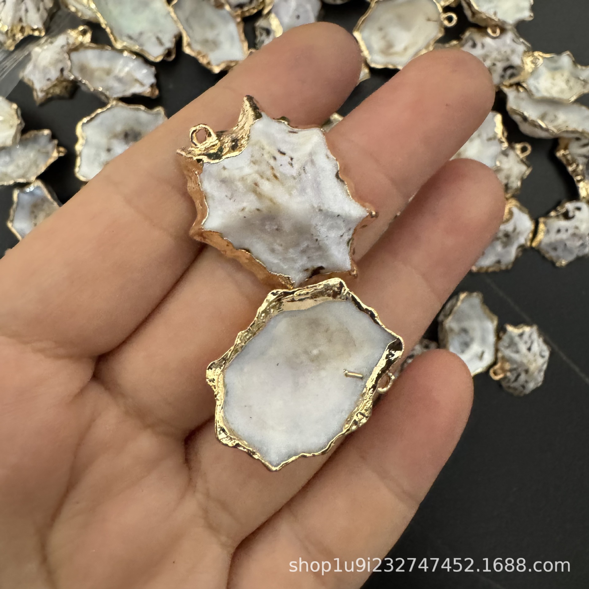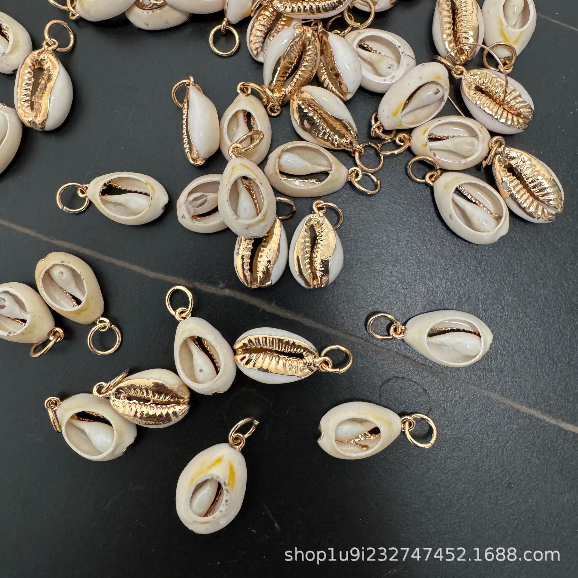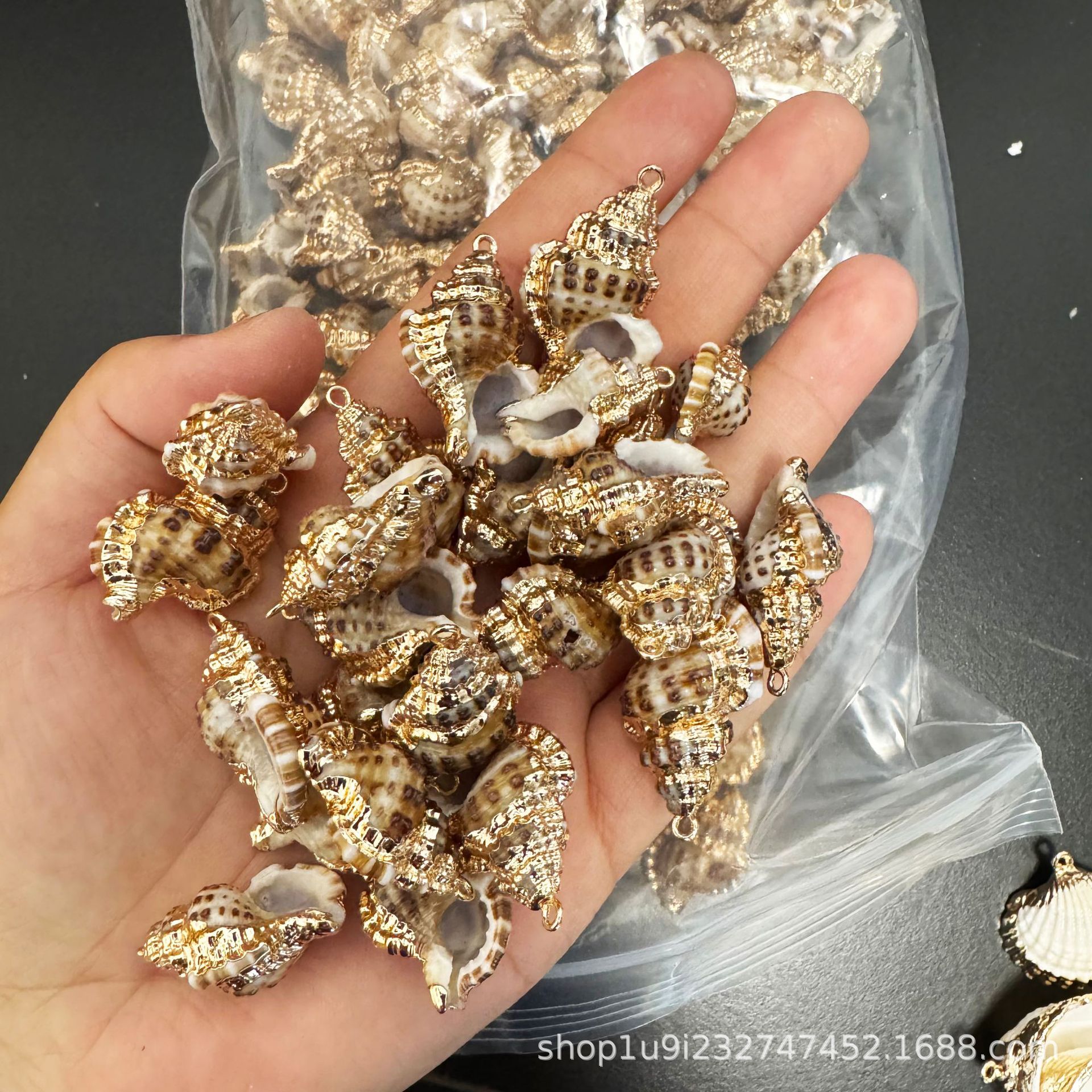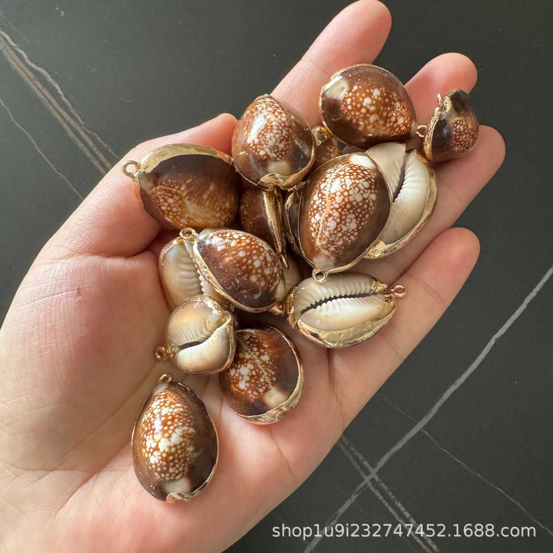 爱贝来海螺吊坠配件 包金边贝壳耳环项链挂件 贝壳材料亚马逊货源