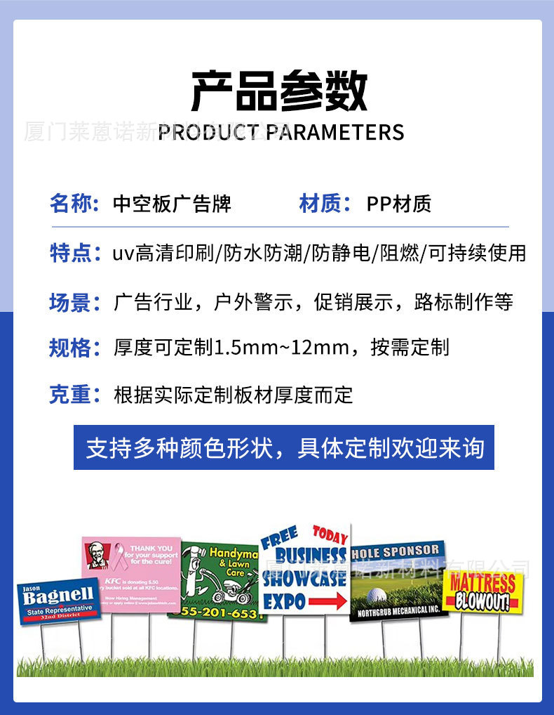 定制pp中空板广告牌防水防晒万通广告板户外庭院宣传塑料标识牌
