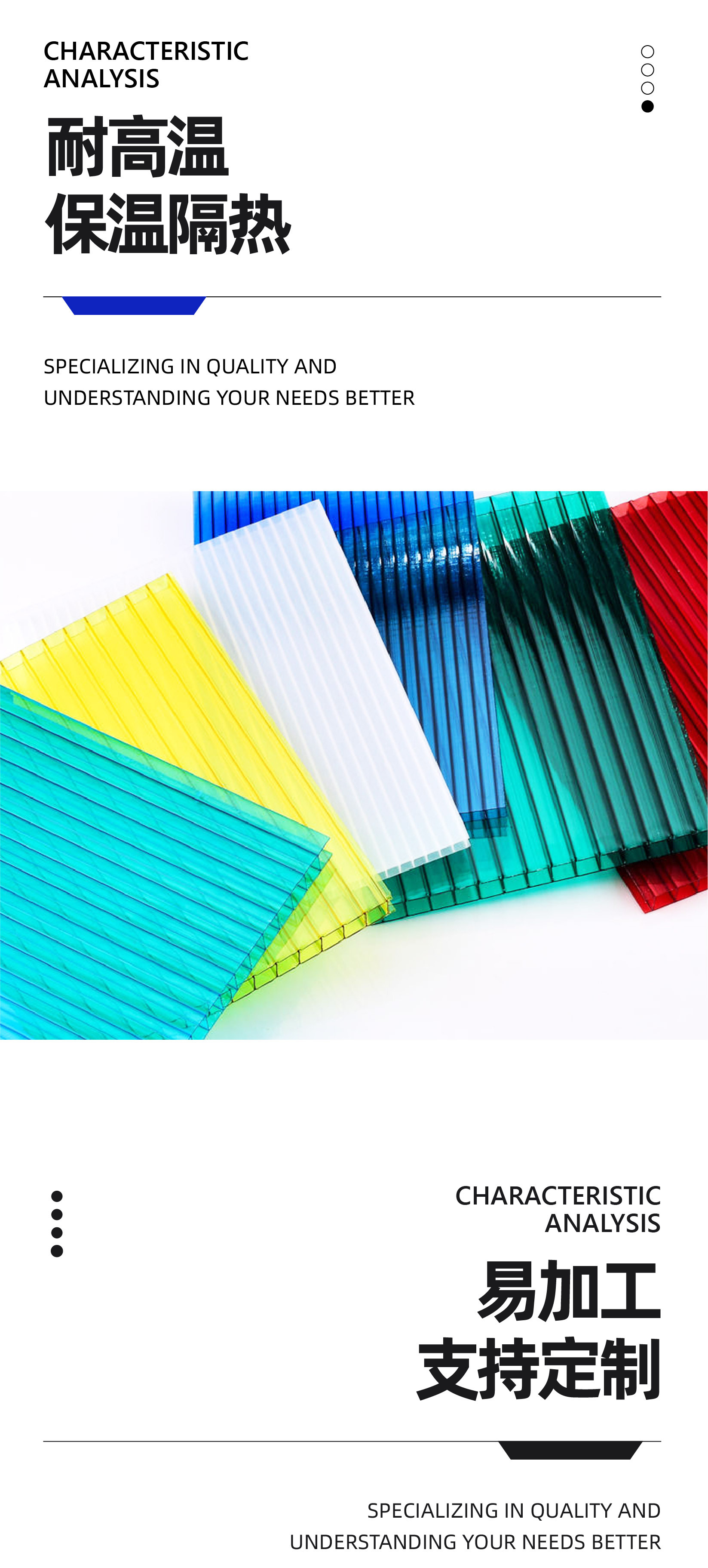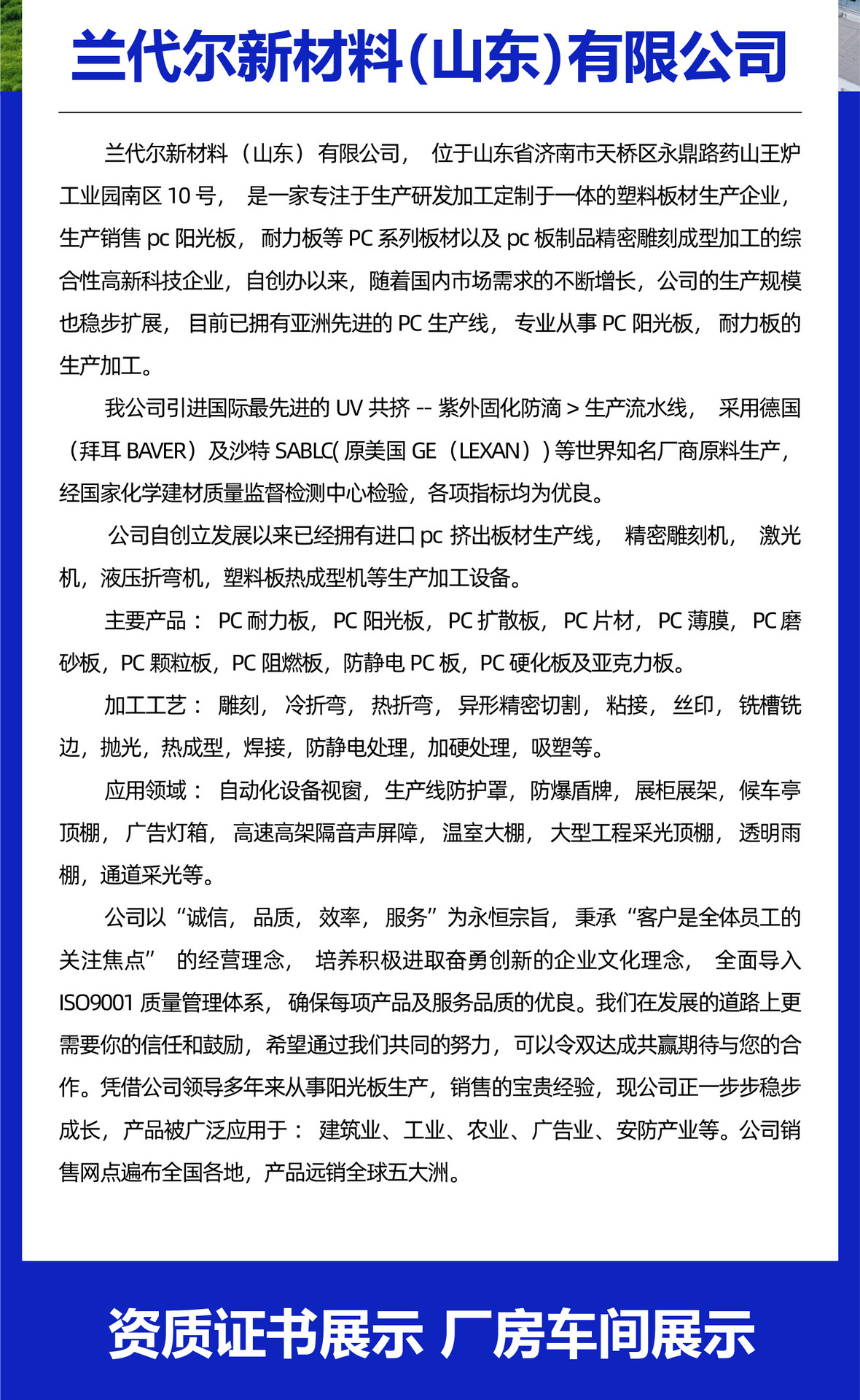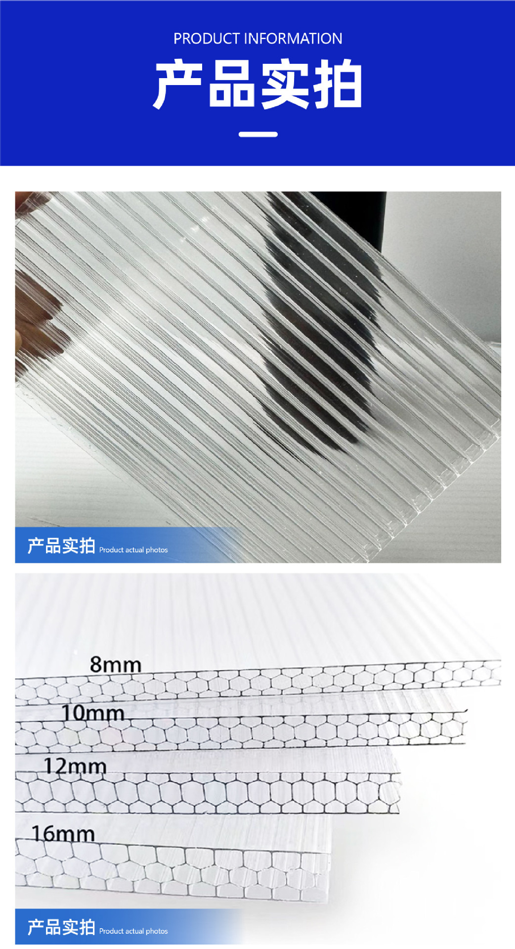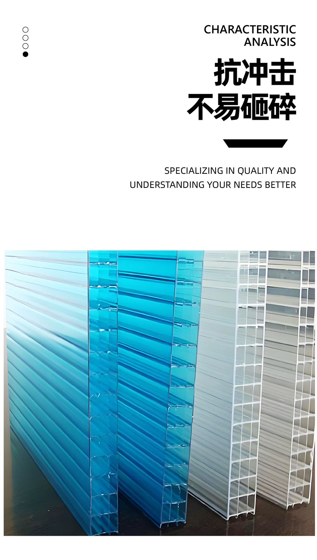 济宁双层阳光板 湖蓝色聚碳酸酯板 批发大棚顶车库出入口中空板