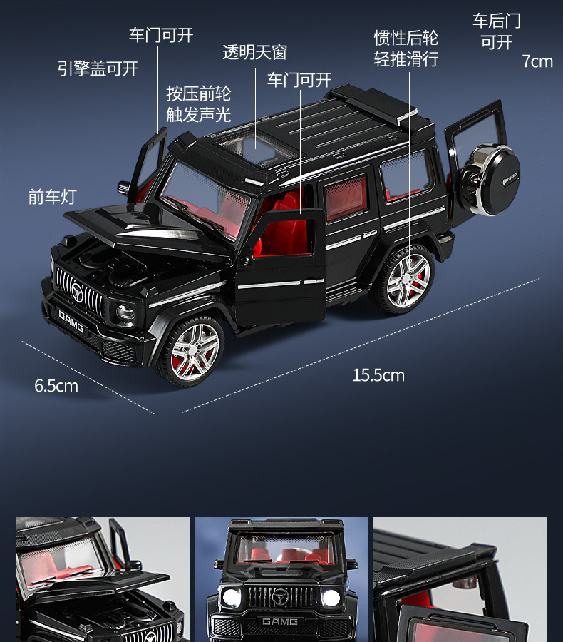 钢力威1:32儿童声光玩具汽车惯性音乐灯光可开门仿真大G汽车模型