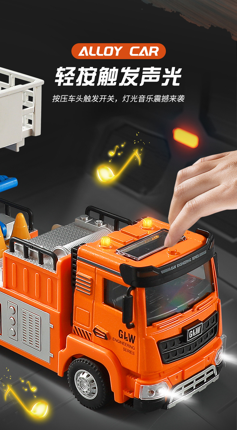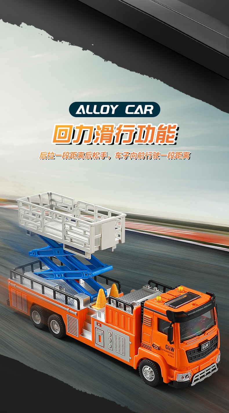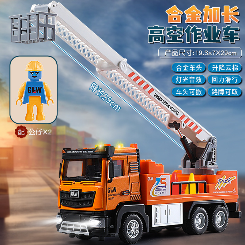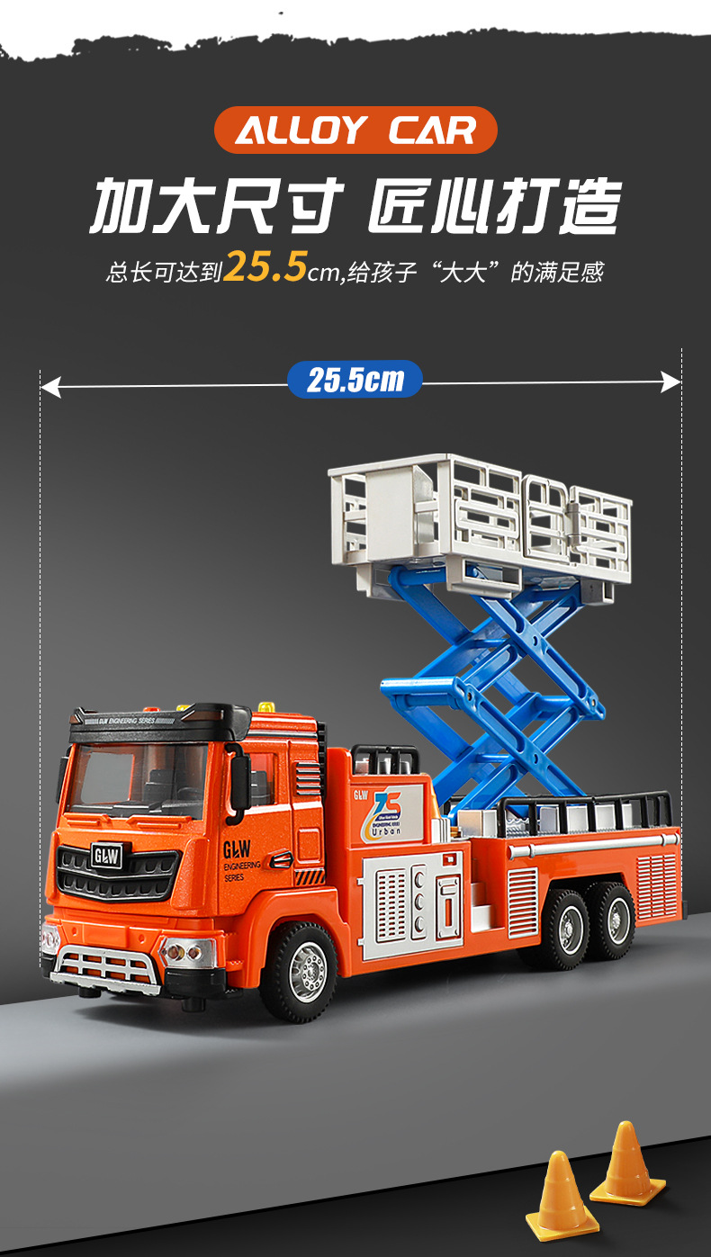 钢力威1:40合金声光登高工程车玩具升降车玩具城市救援车高空作业