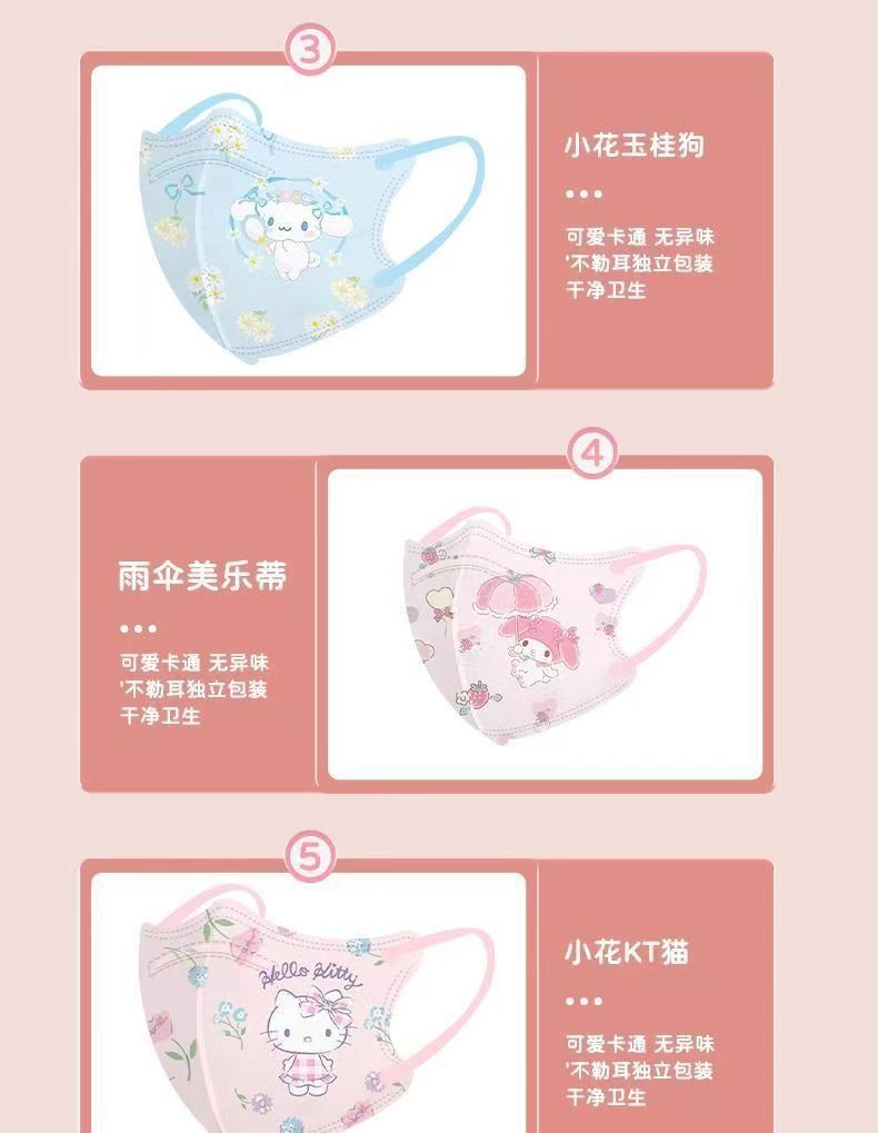 库洛米美乐蒂玉桂狗一次性儿童口罩新国标独立包装男孩女孩3d口罩
