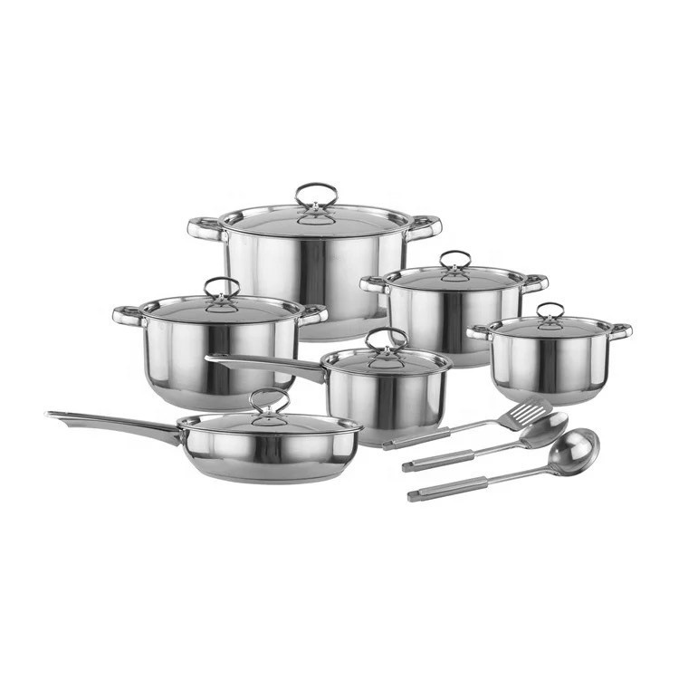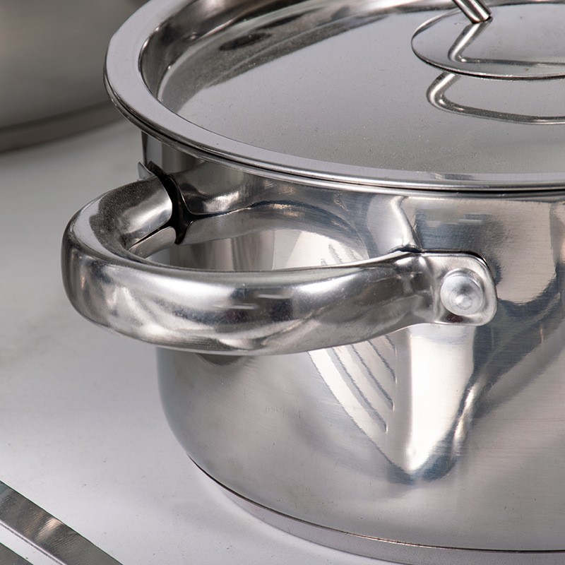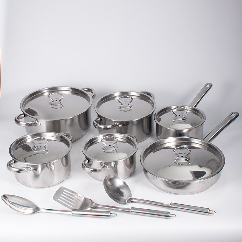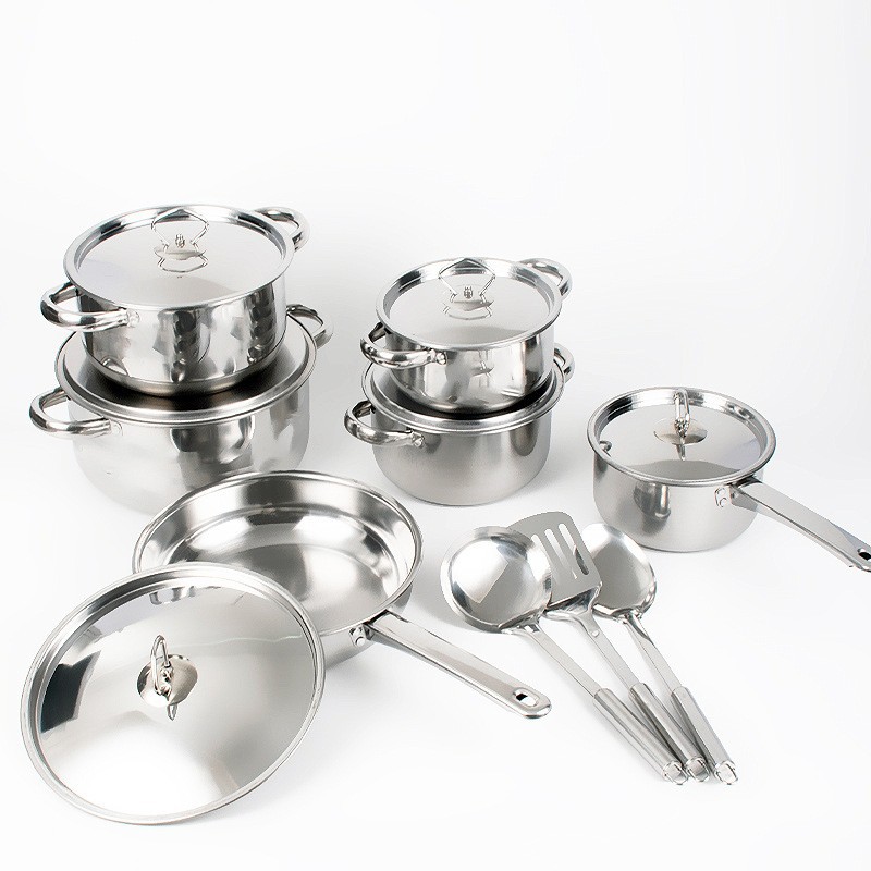 外贸批发不锈钢锅具套装跨境15PCS钢柄汤锅厨房烹饪复合底套锅
