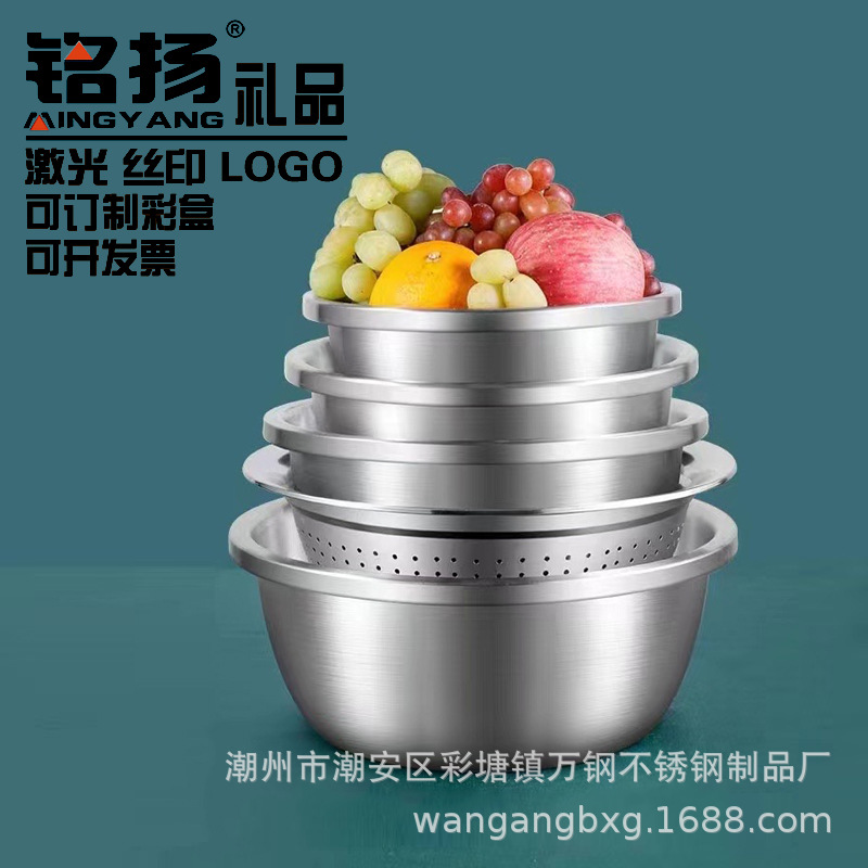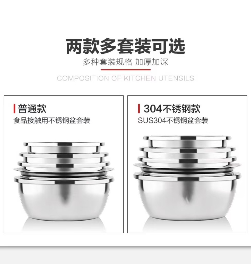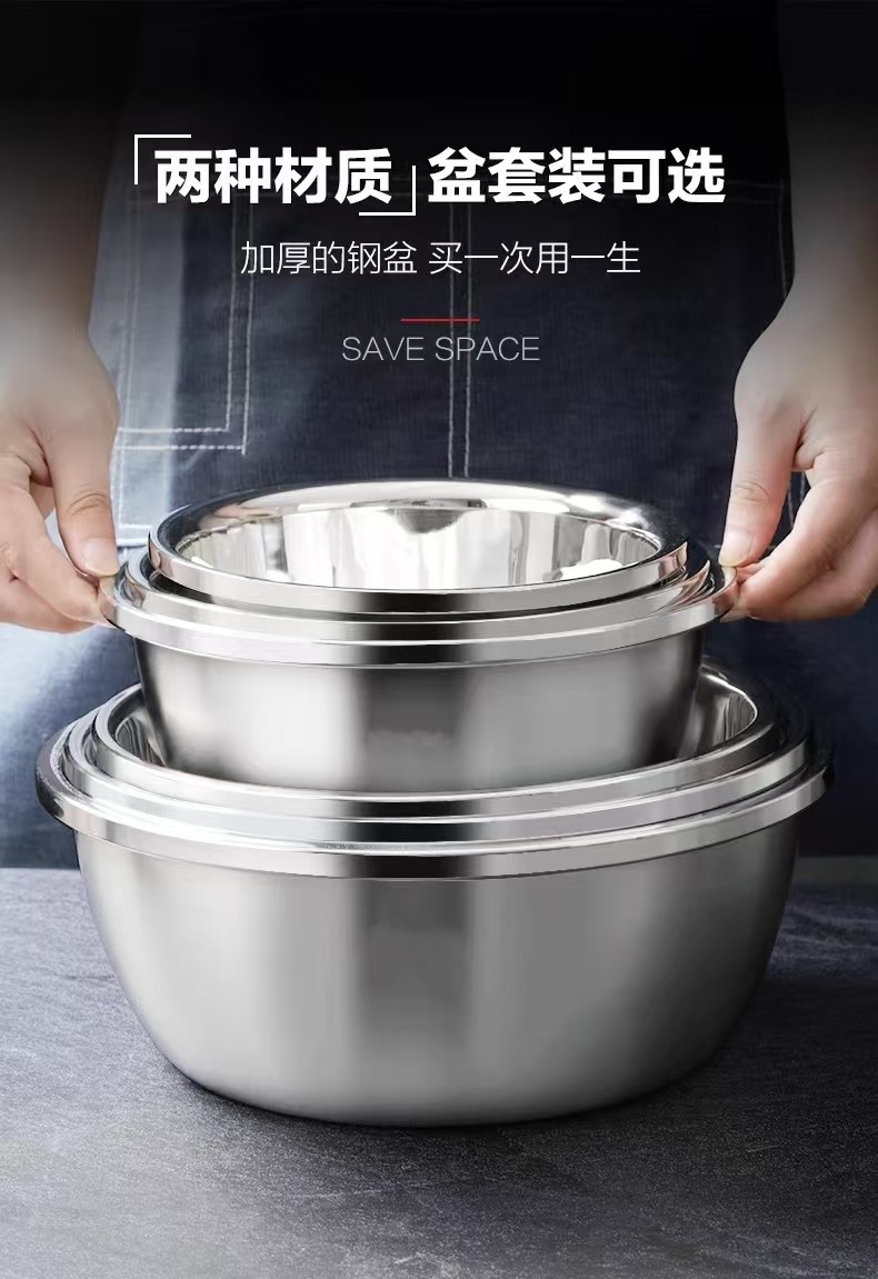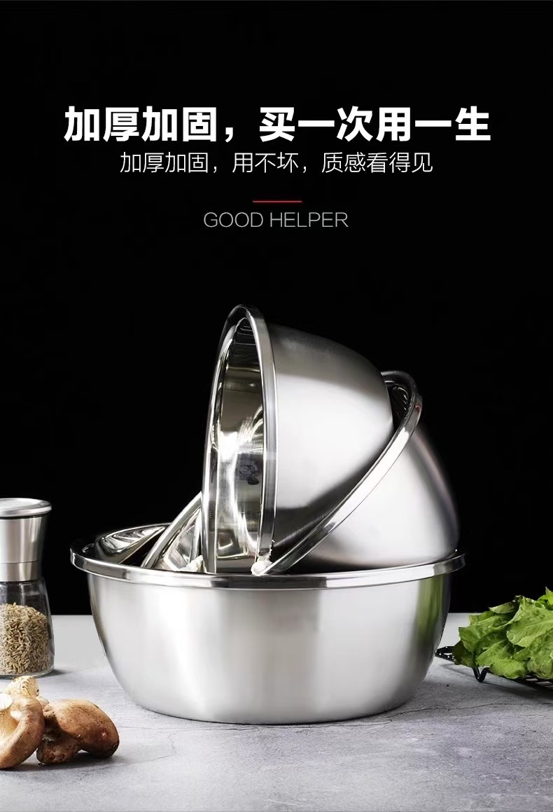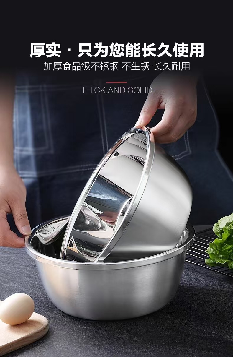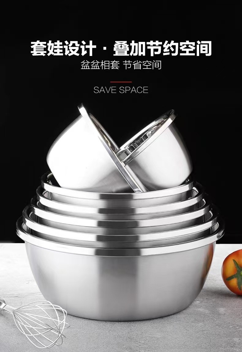 食品级304不锈钢盆子套装加厚家用 厨房打蛋和面洗菜沥水篮漏汤盆