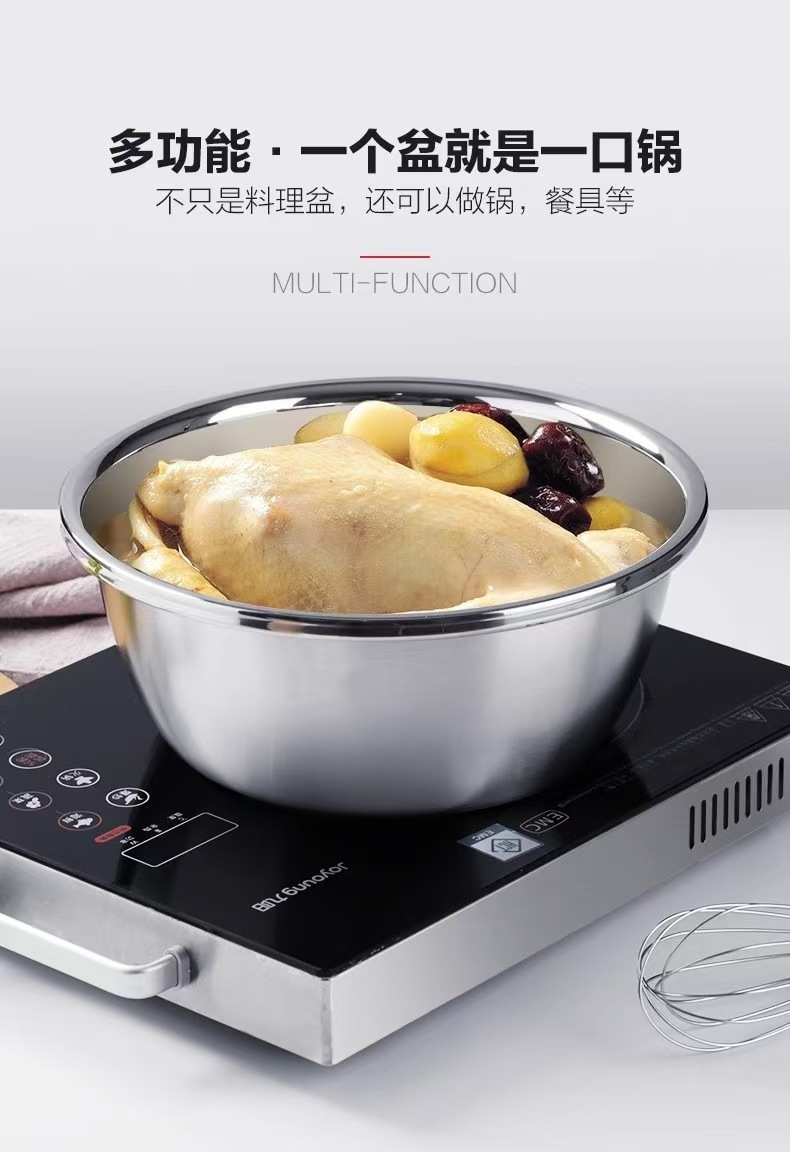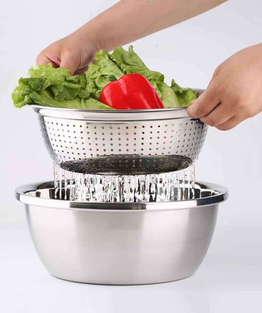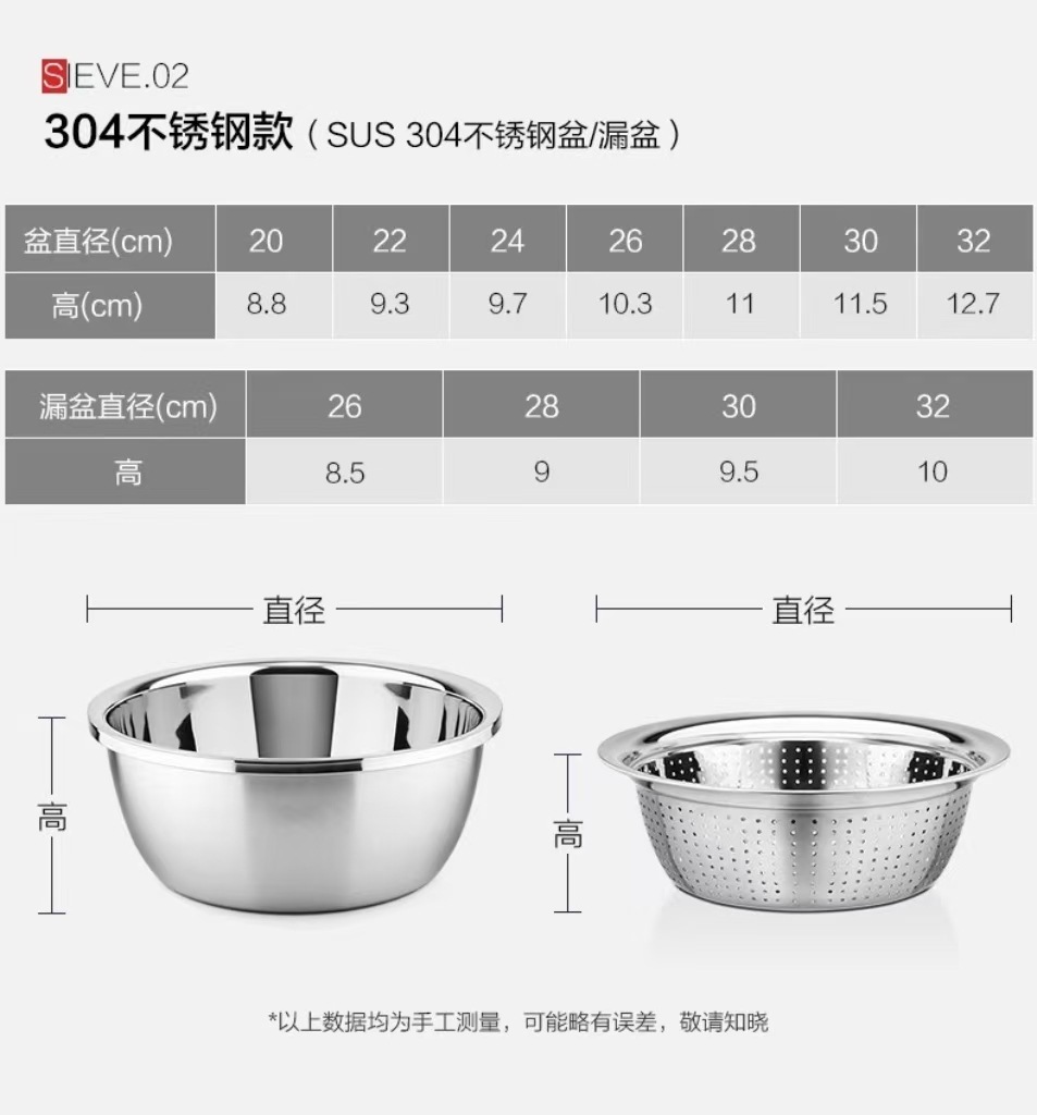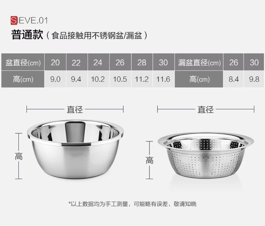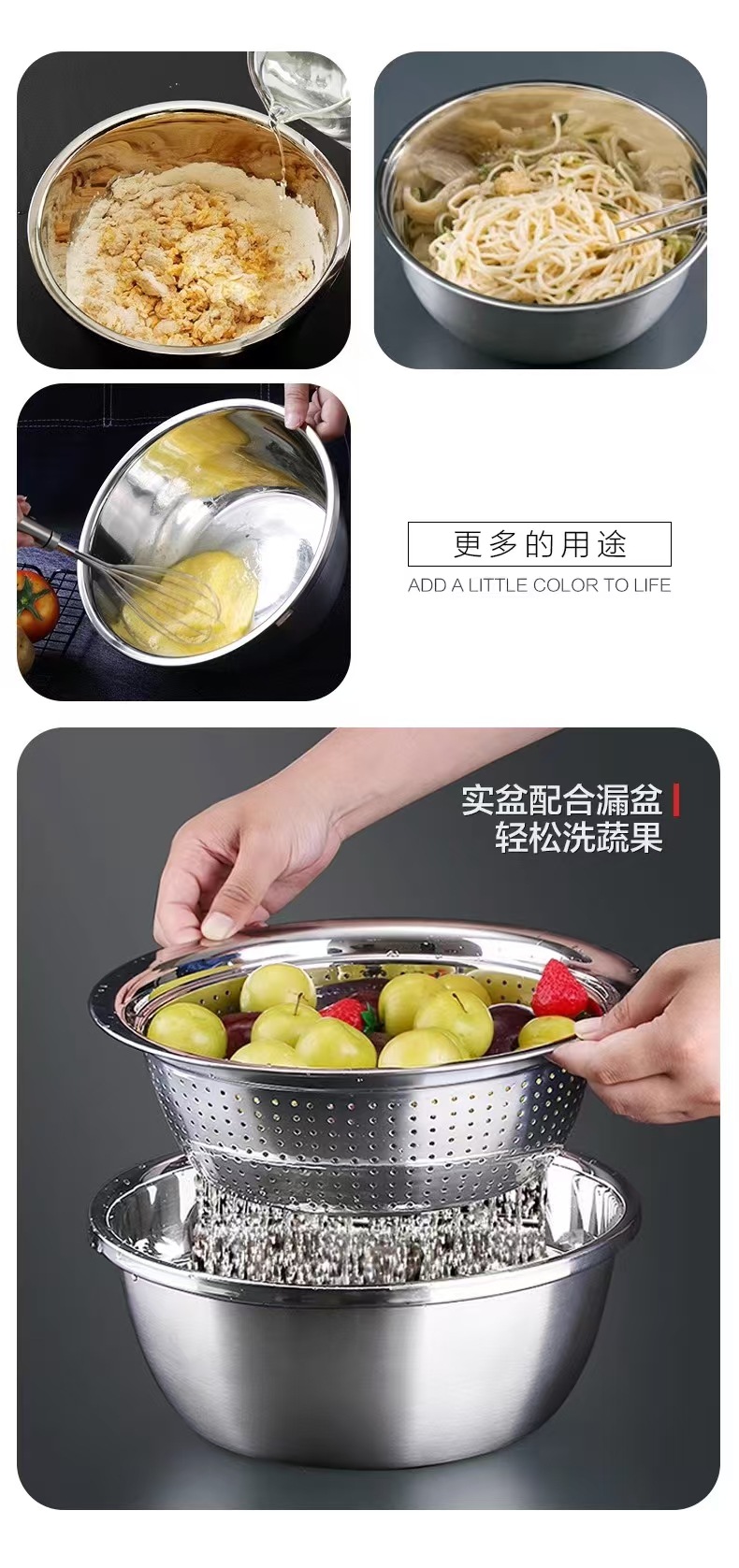 食品级304不锈钢盆子套装加厚家用 厨房打蛋和面洗菜沥水篮漏汤盆