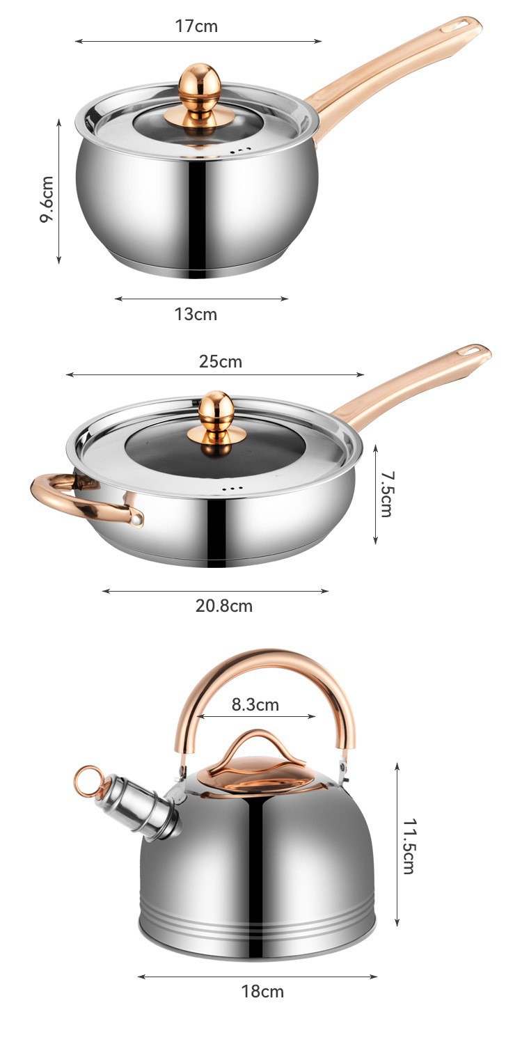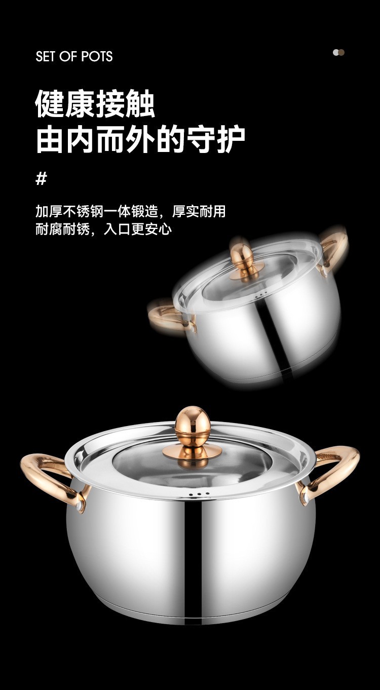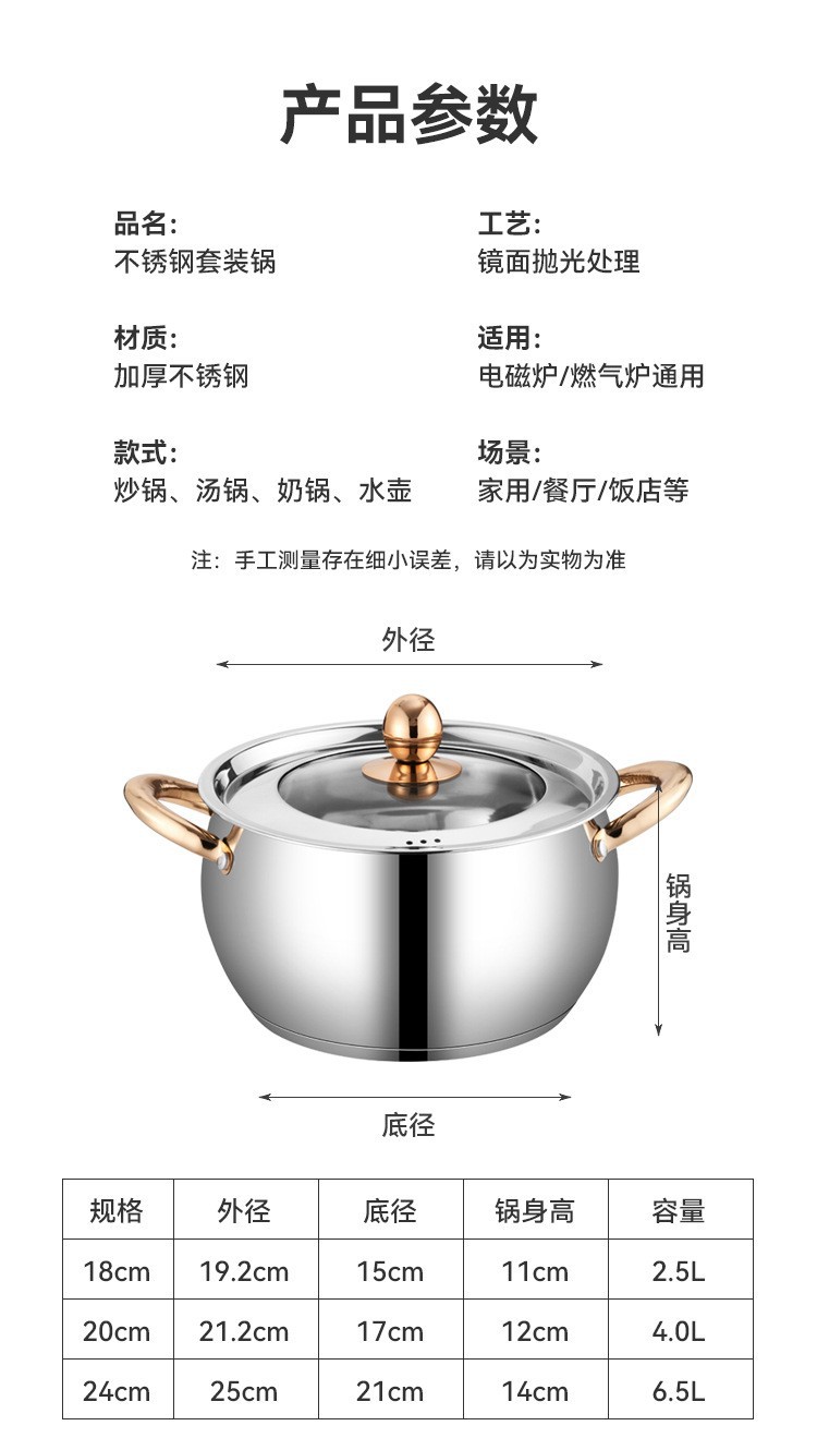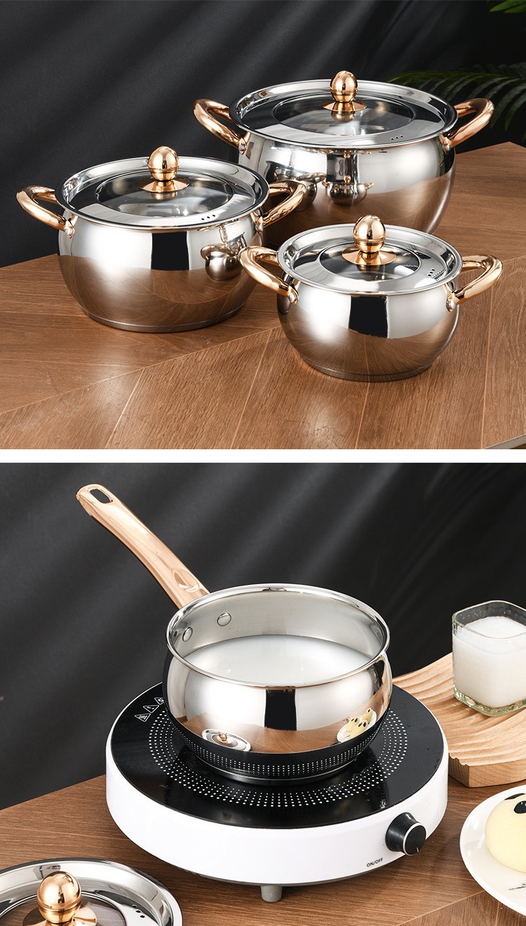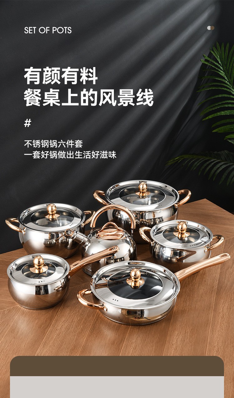 不锈钢12件套锅厨房锅具套装礼品汤锅奶锅煎锅外贸跨境六件套锅