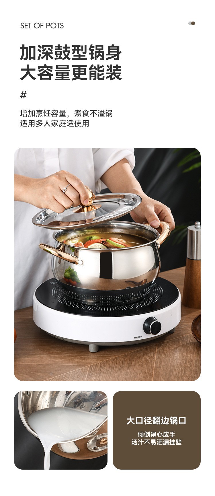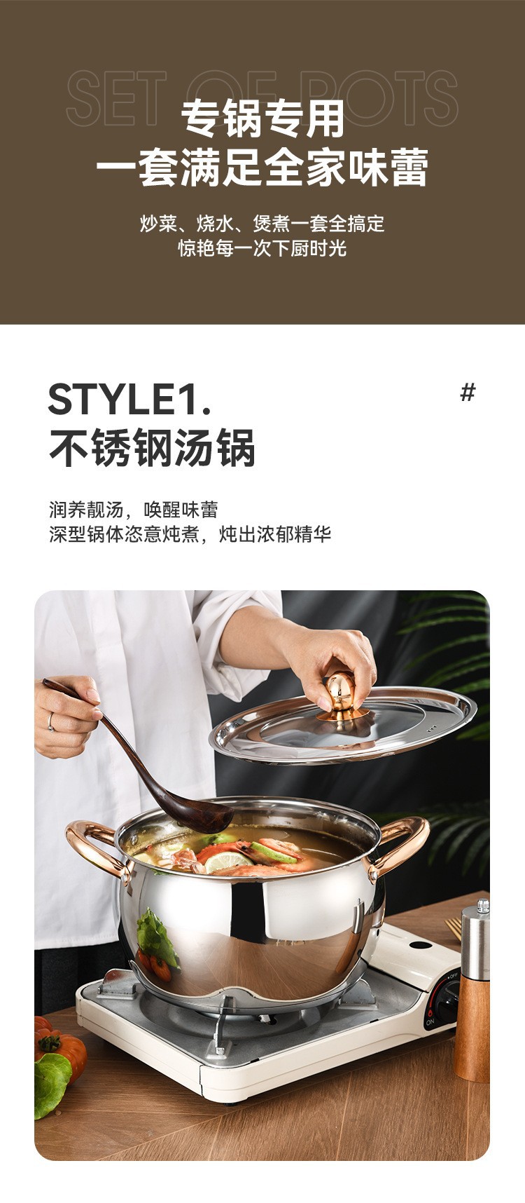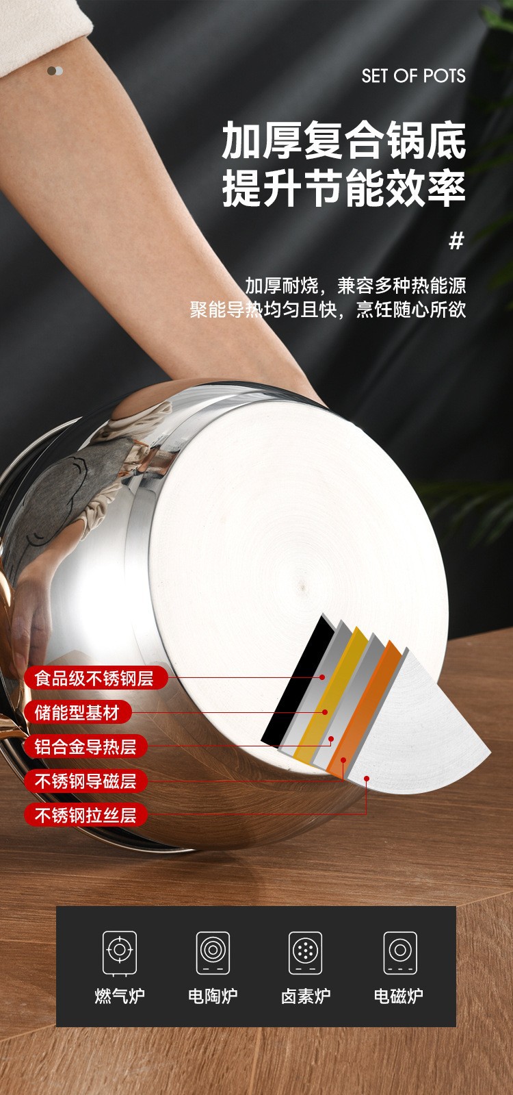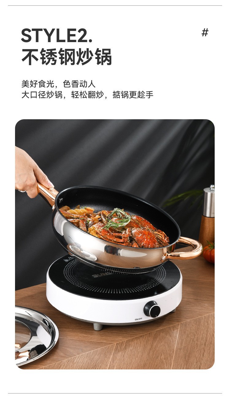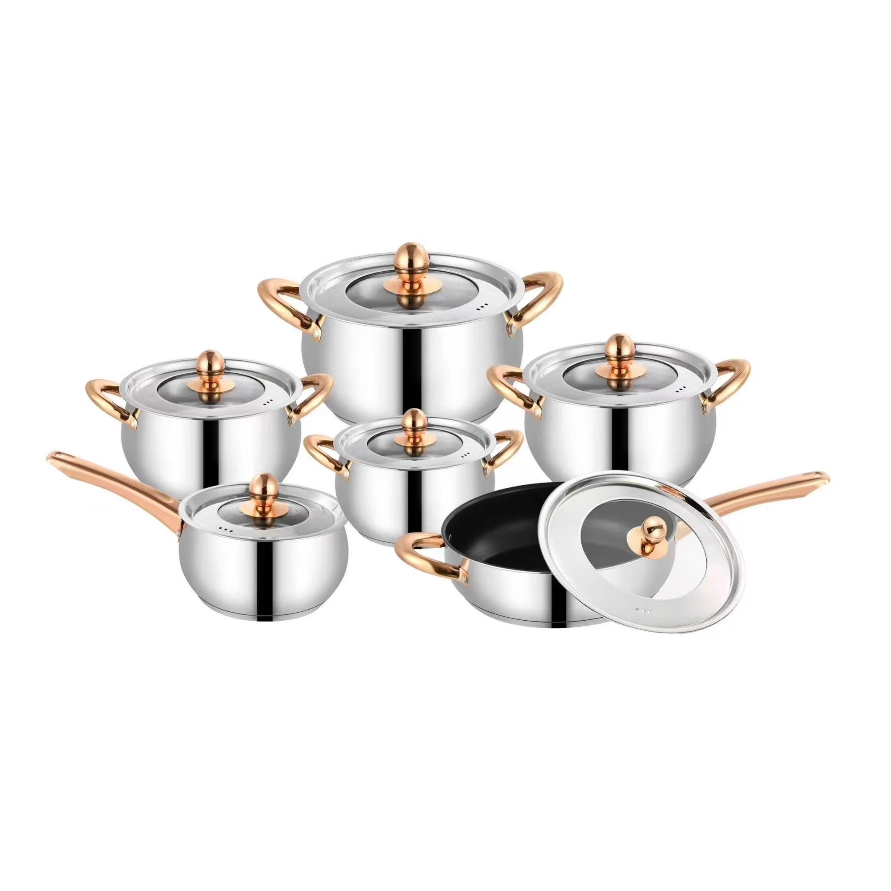 不锈钢12件套锅厨房锅具套装礼品汤锅奶锅煎锅外贸跨境六件套锅