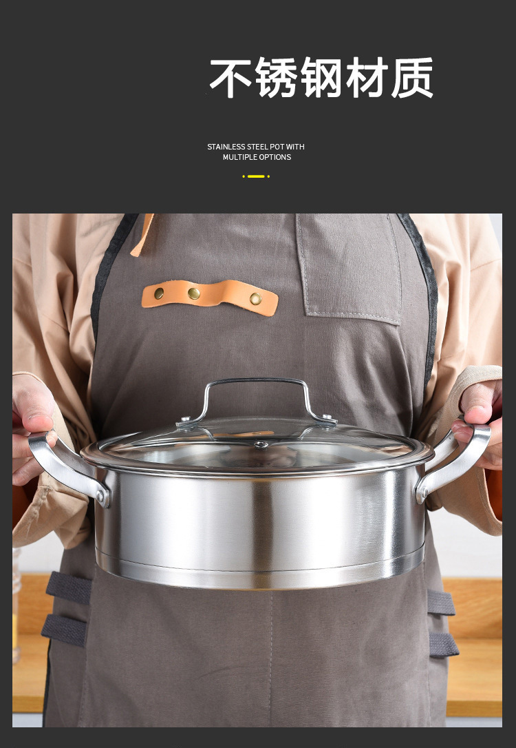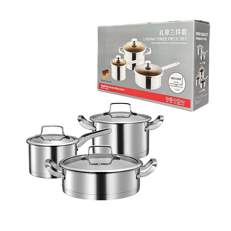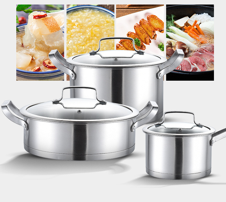 加厚复底带盖不锈钢锅具三件套多功能厨房煎炒直角汤锅炊具锅套装