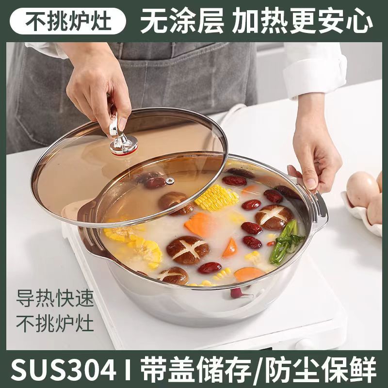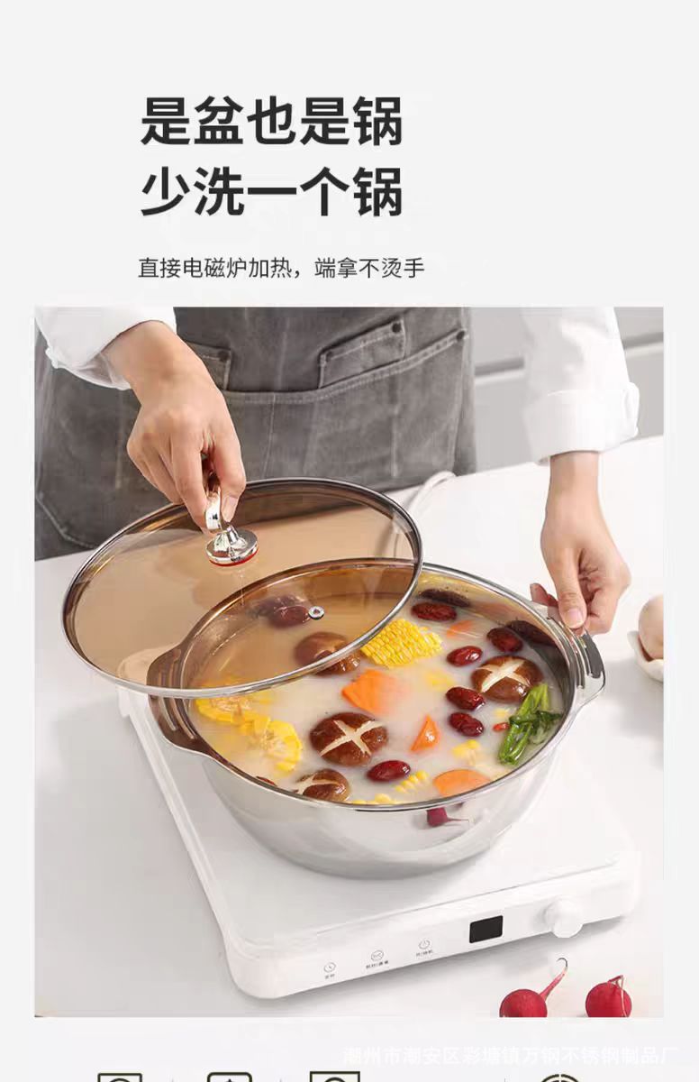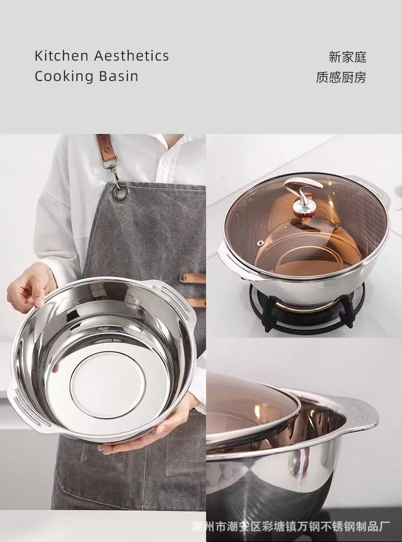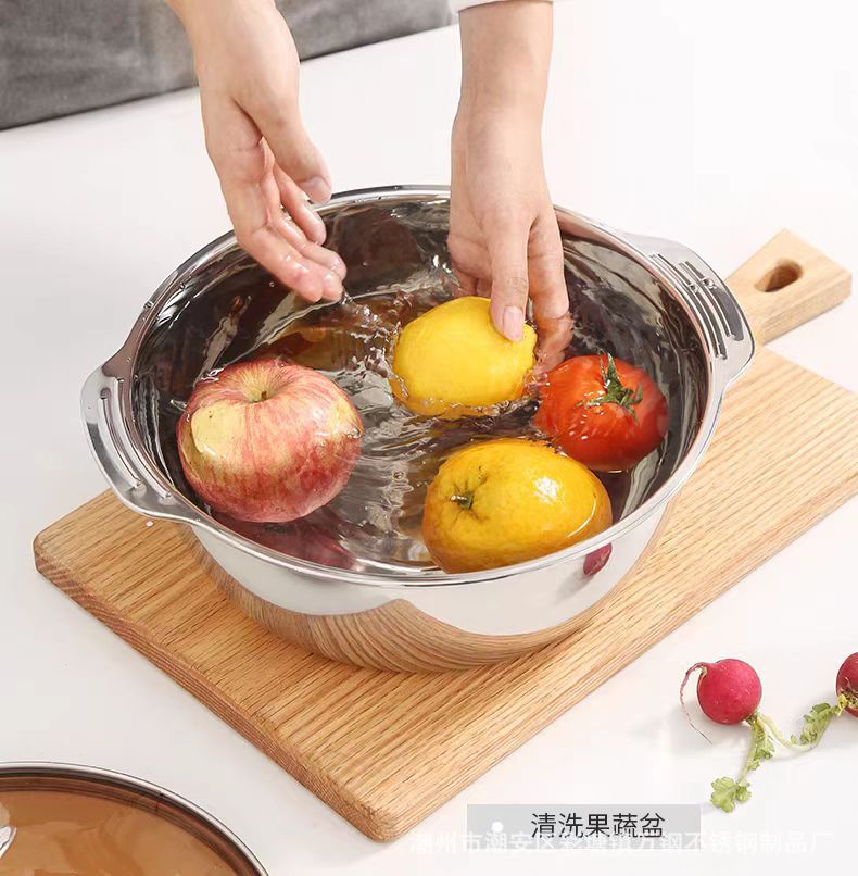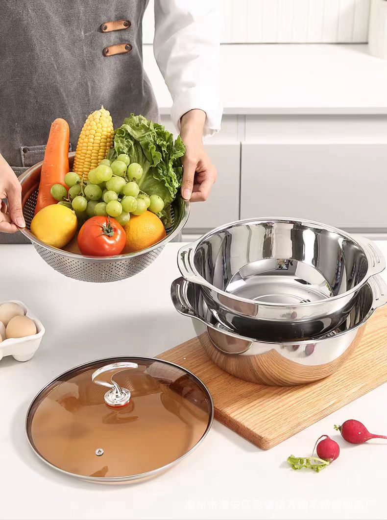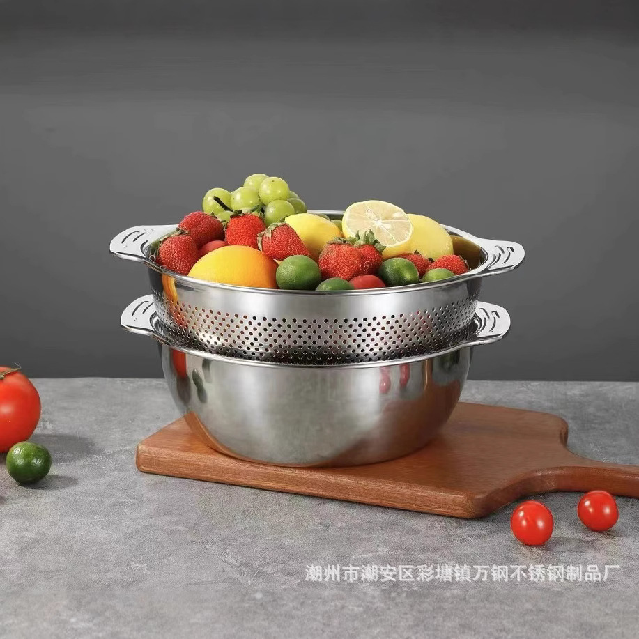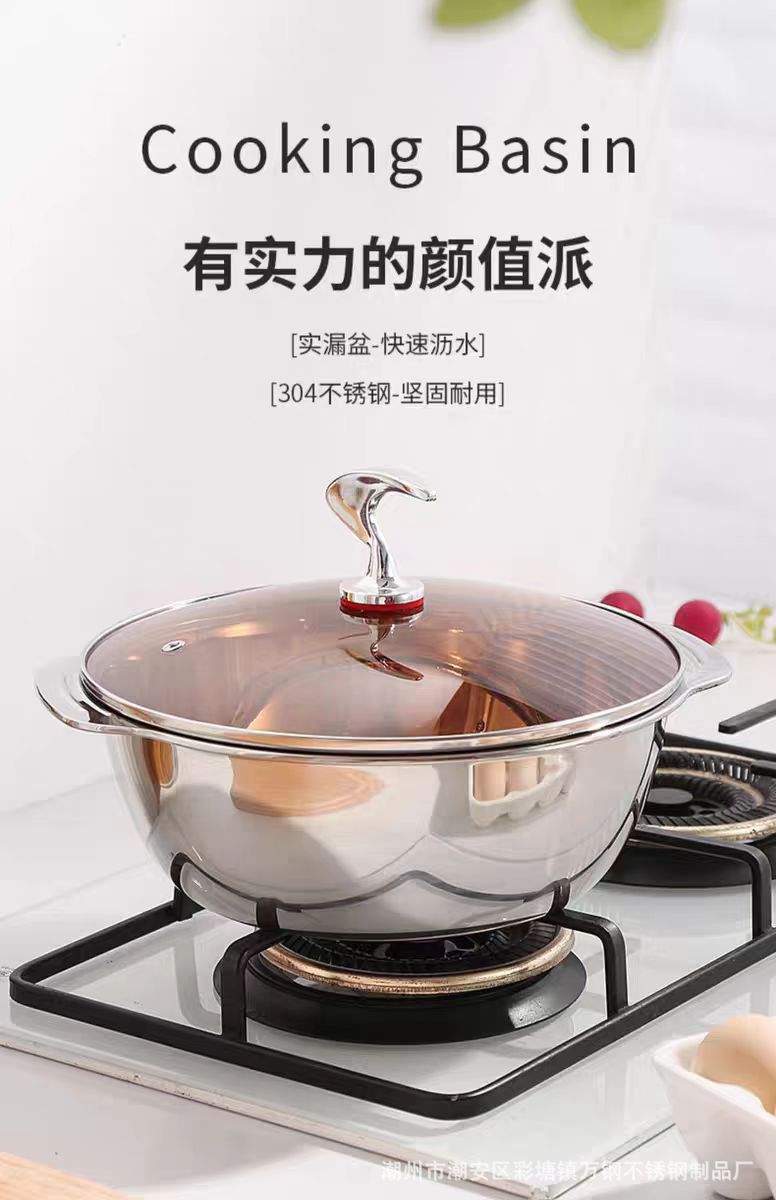 厂家批发304不锈钢加厚双耳多用多功能火锅盆洗菜淘米沥水米筛