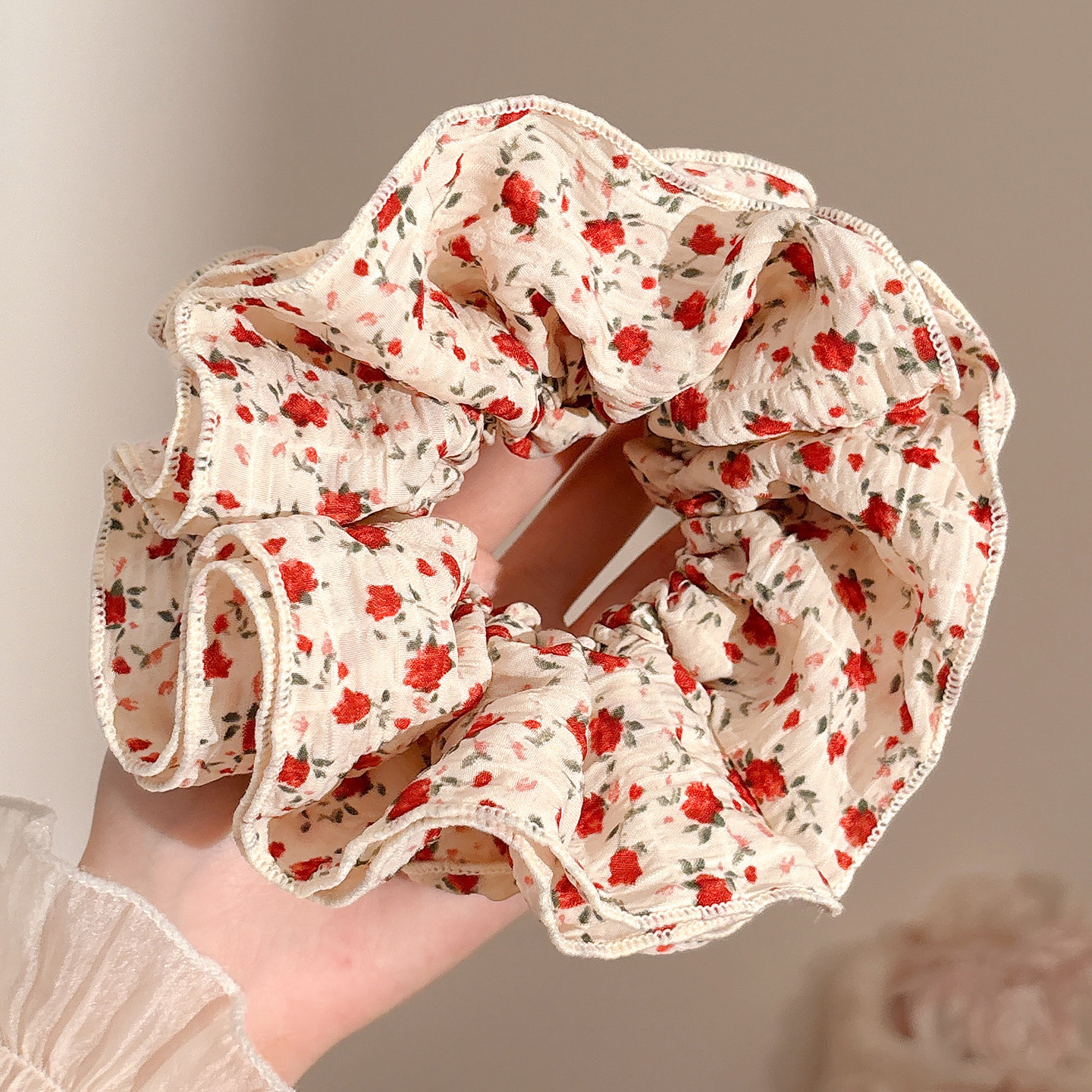 大肠发圈后脑勺布艺盘发头花女韩系高弹力可爱蕾丝发绳氛围感发饰