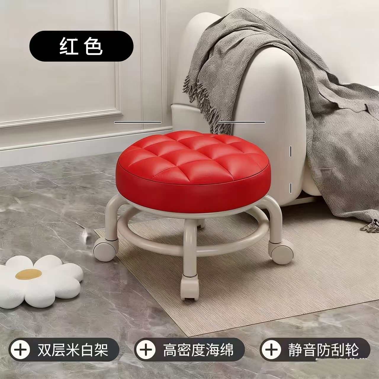 万向轮矮凳小凳子带轮家用带娃圆凳美缝凳儿童学步板凳滑轮小凳子