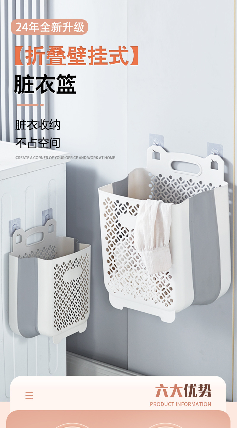 脏衣篓家用洗衣篮壁挂可折叠卫生间洗澡放脏衣服收纳筐壁挂式防水