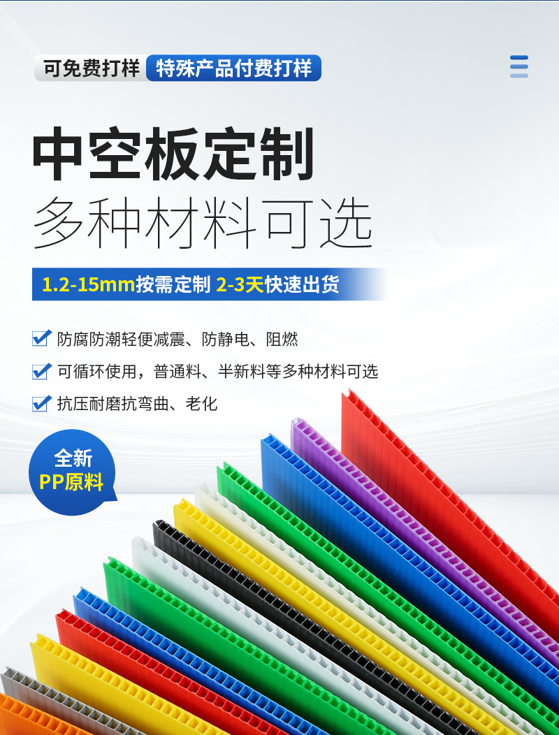 温州彩色pp中空板厂家加厚空心周转万通板箱包内层隔板中空板垫板