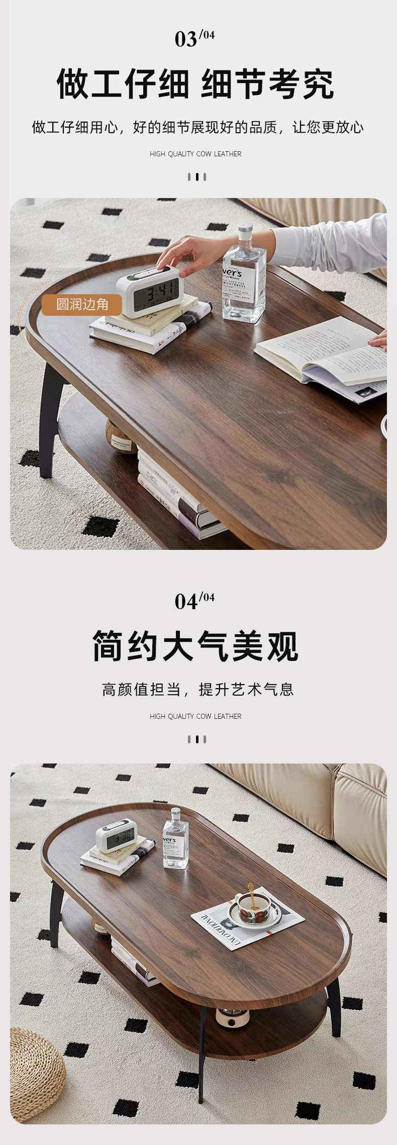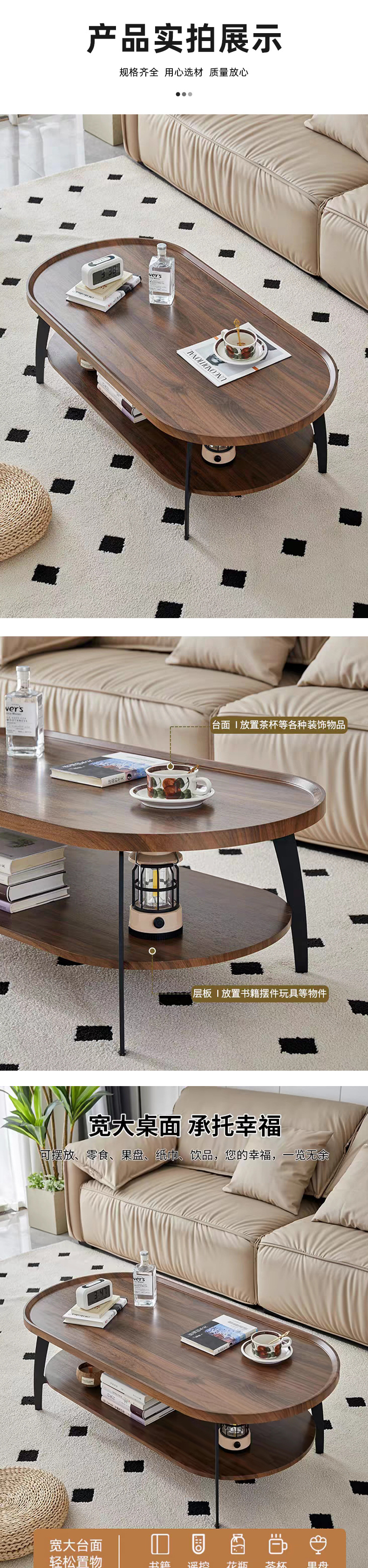 北欧风格双层茶几简约小户型客厅阳台边几木质小会客茶桌轻奢