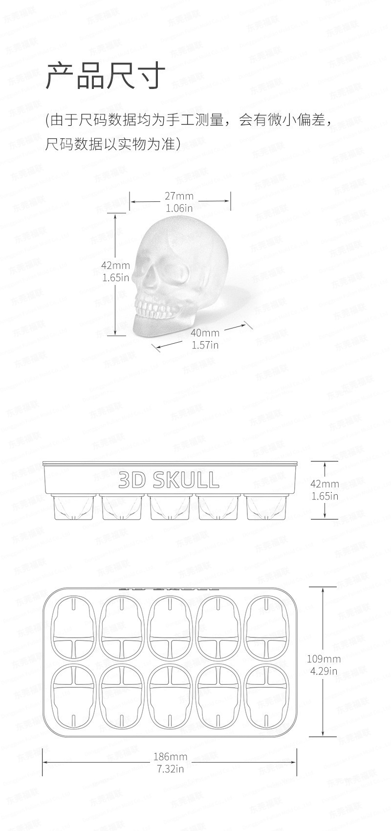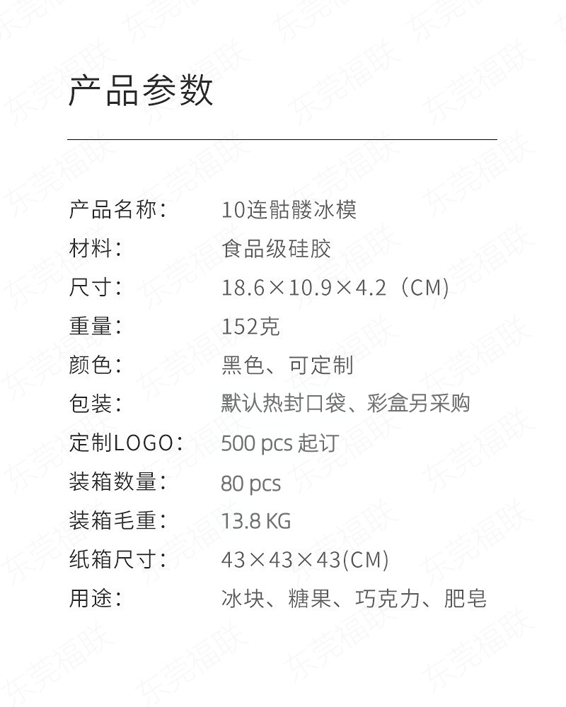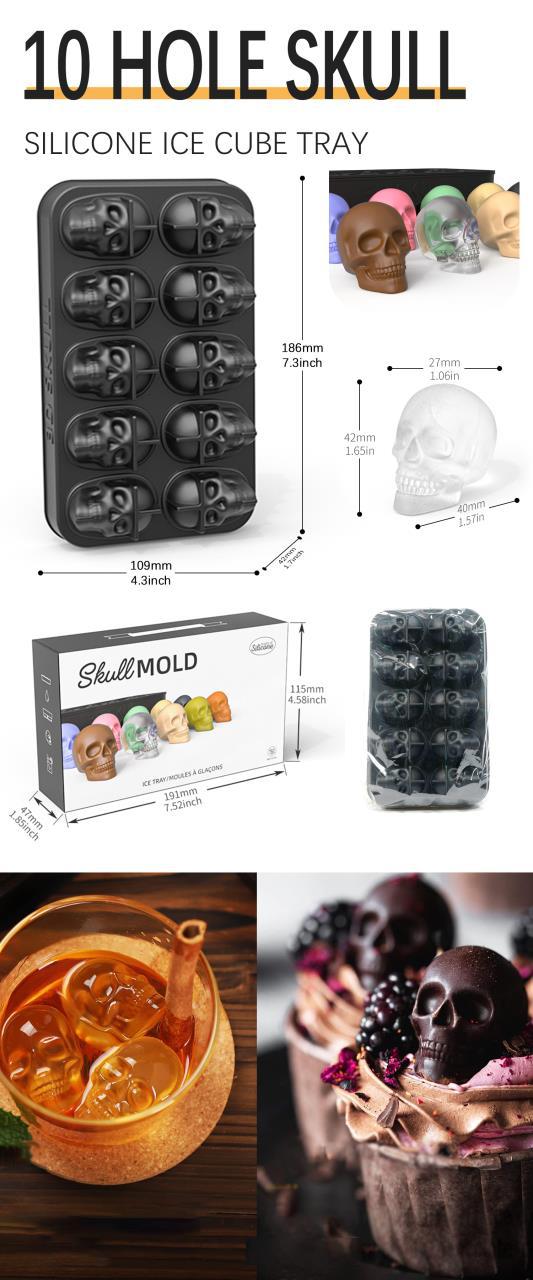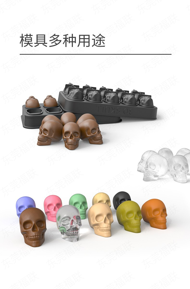 跨境热销10连骷髅头冰格万圣节骷髅冰模10连巧克力模dly蜡烛模具
